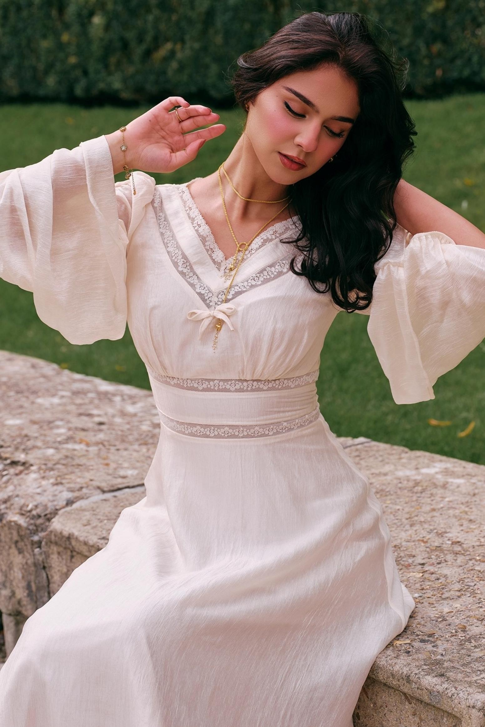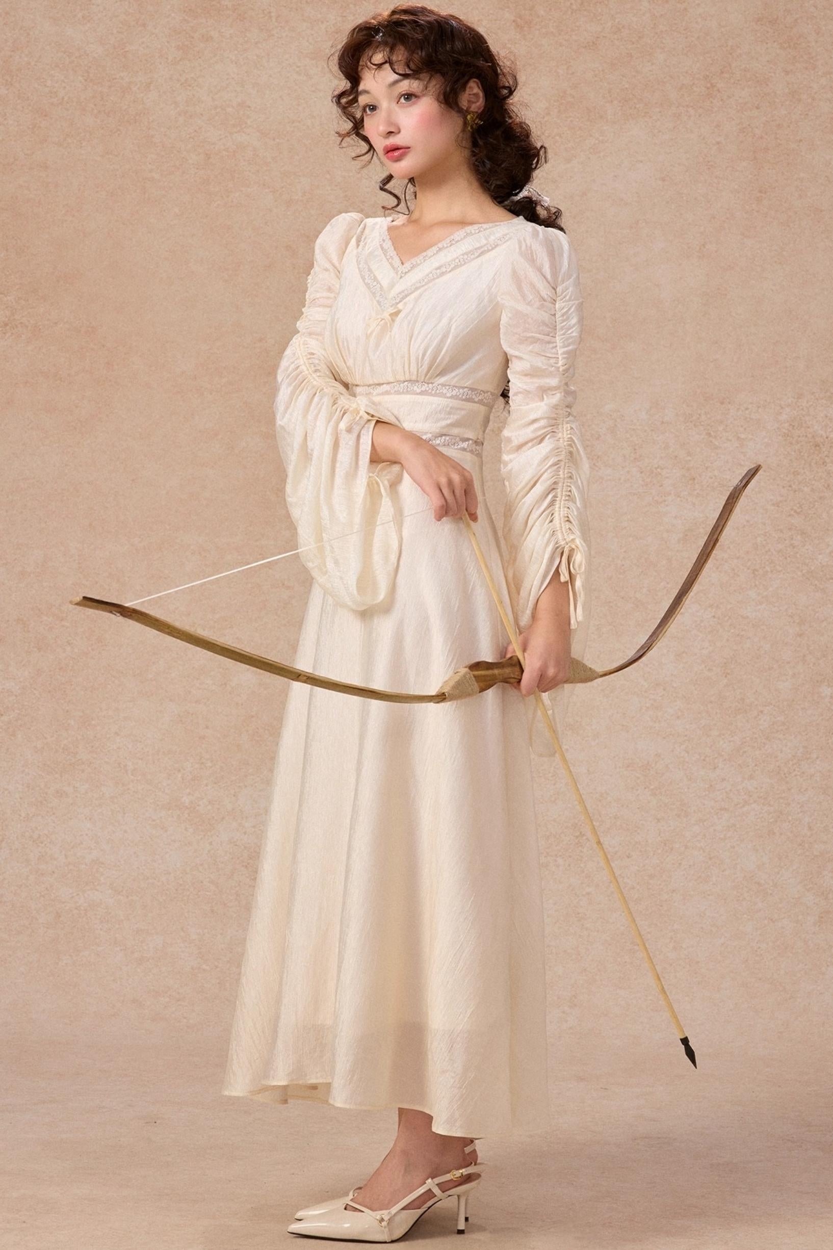 French court style V-Neck Satin Dress