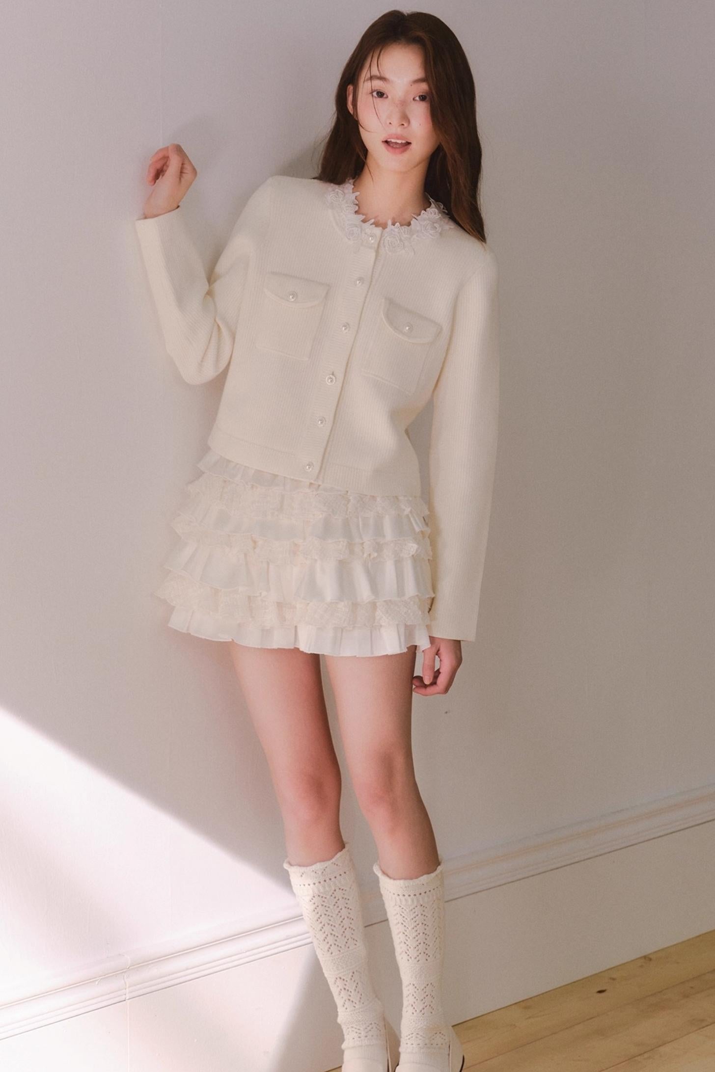 French Rose Lace Knitted Top