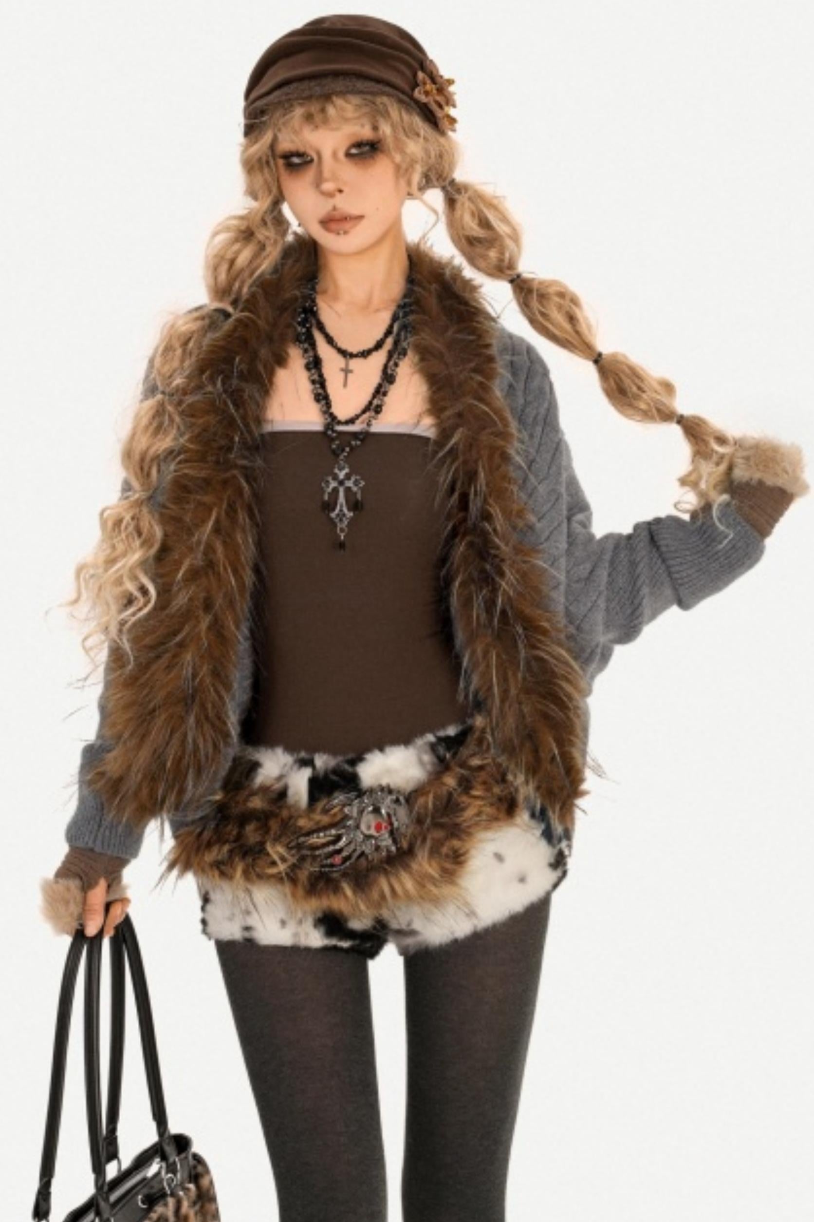 Fur Collar Knitted Cardigan