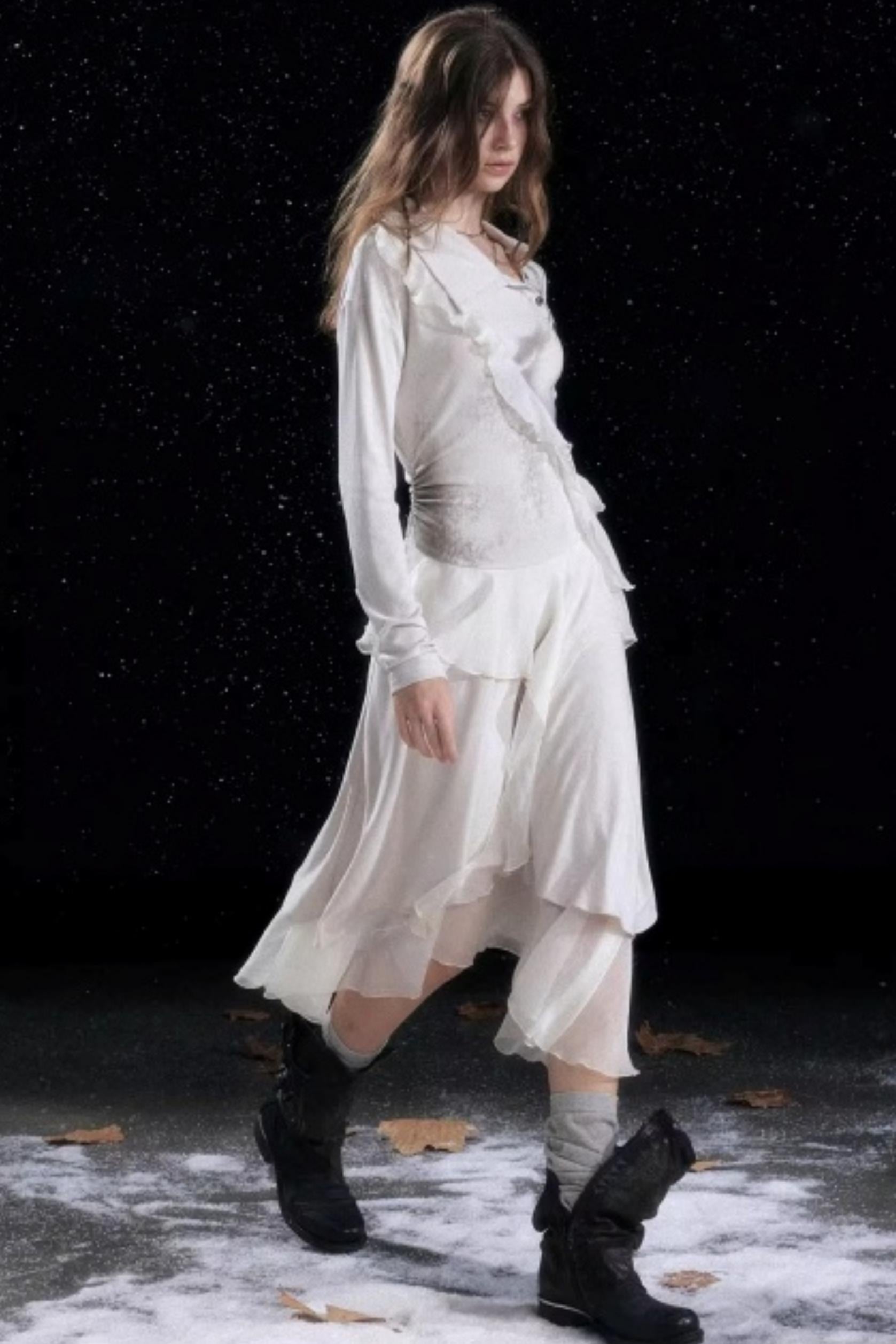 Irregular Gradient Ruffle Dress