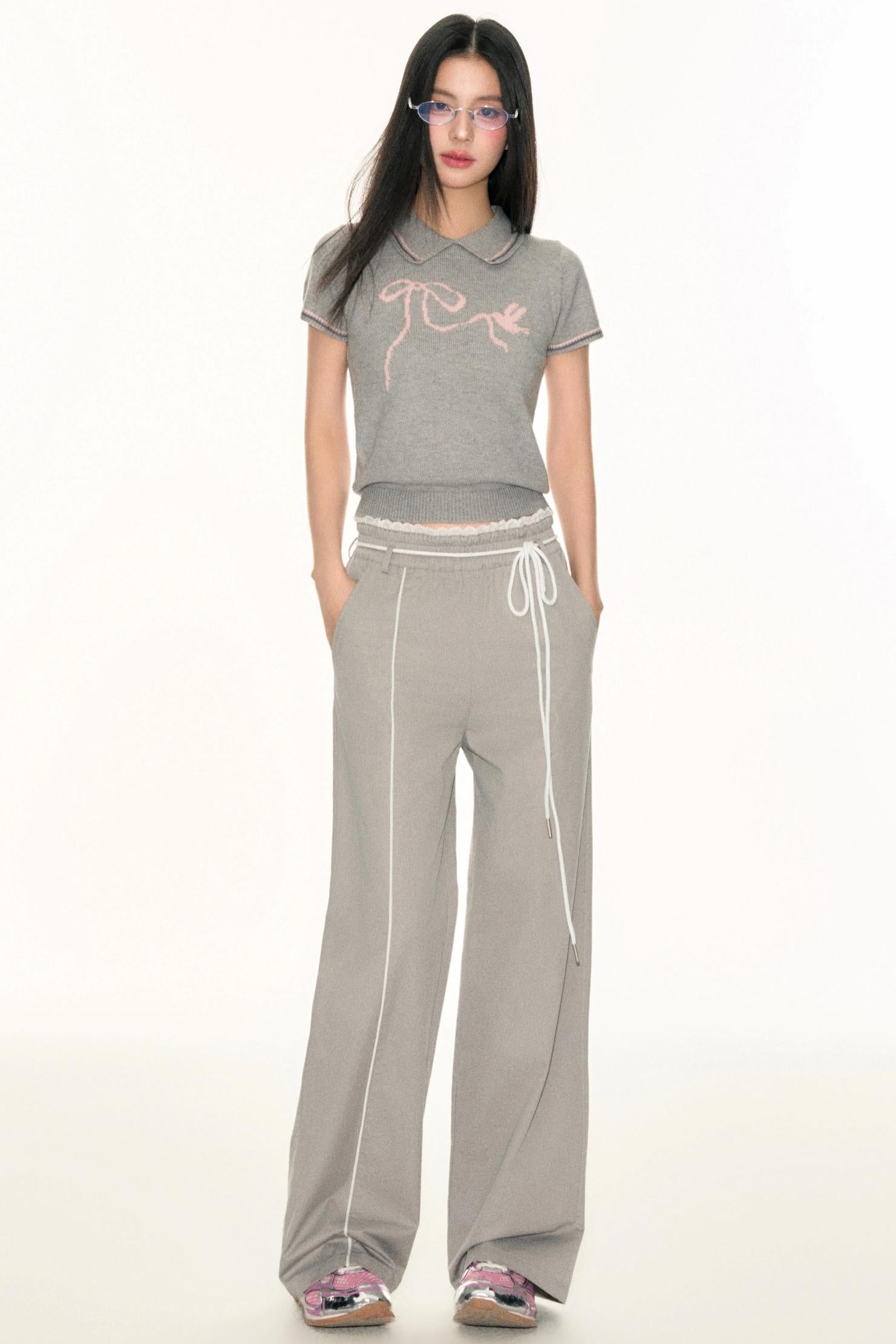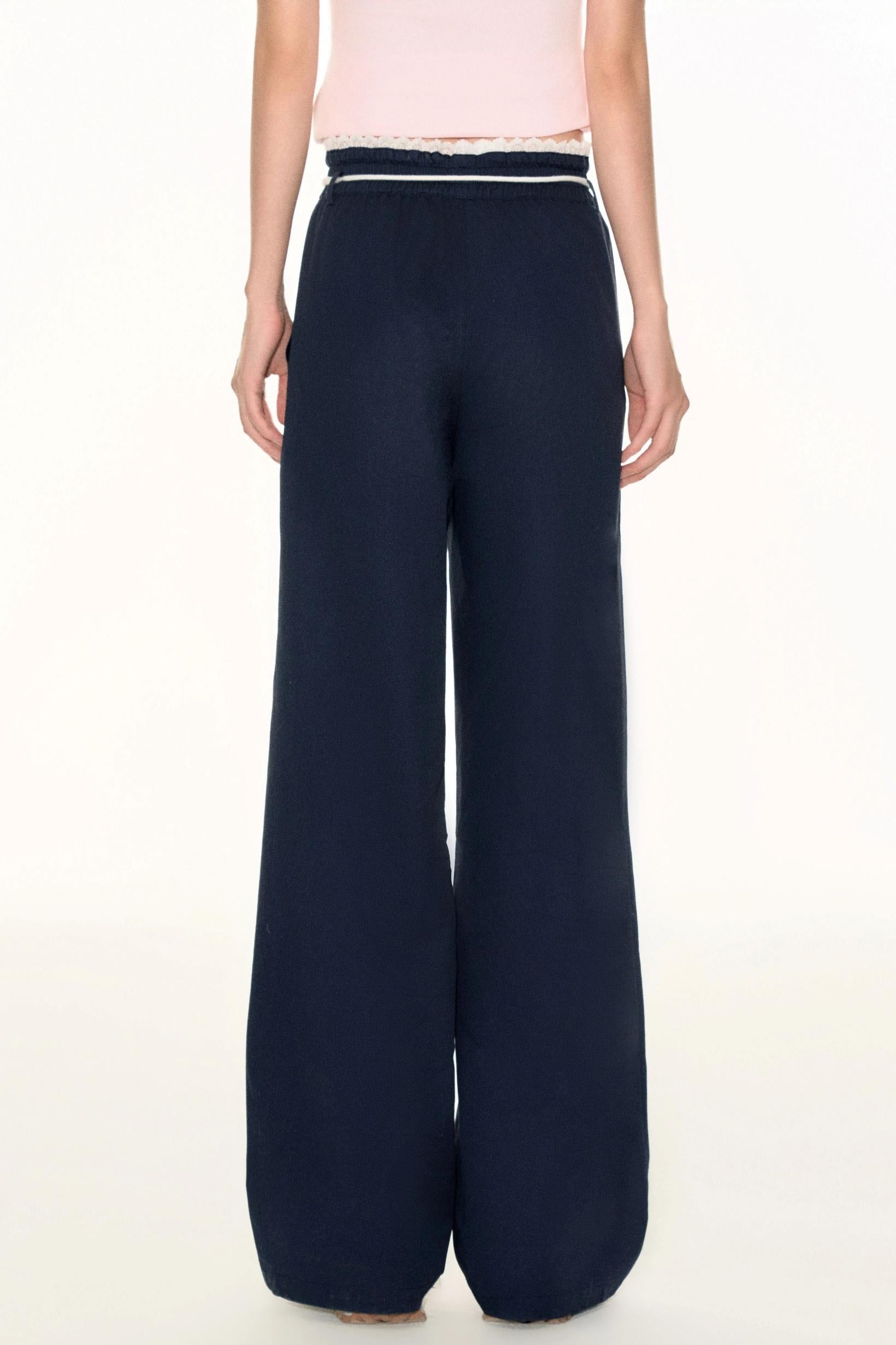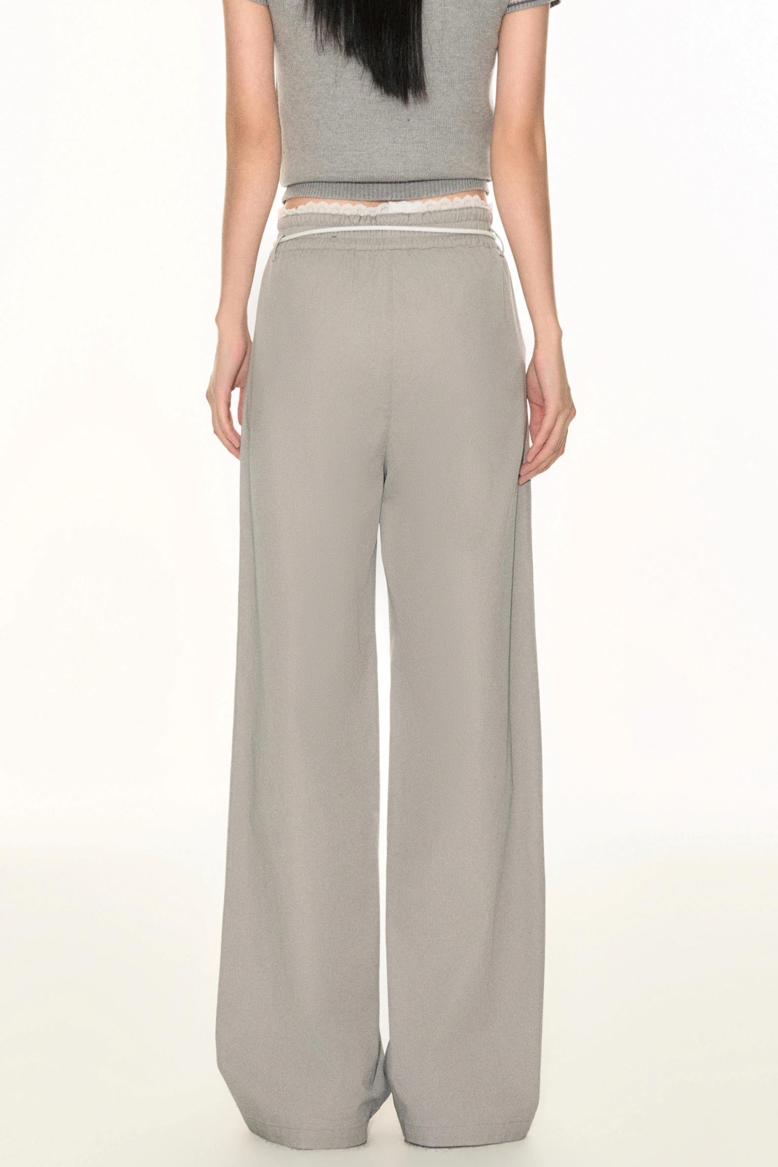 Lace Waist Wide-Leg Pants