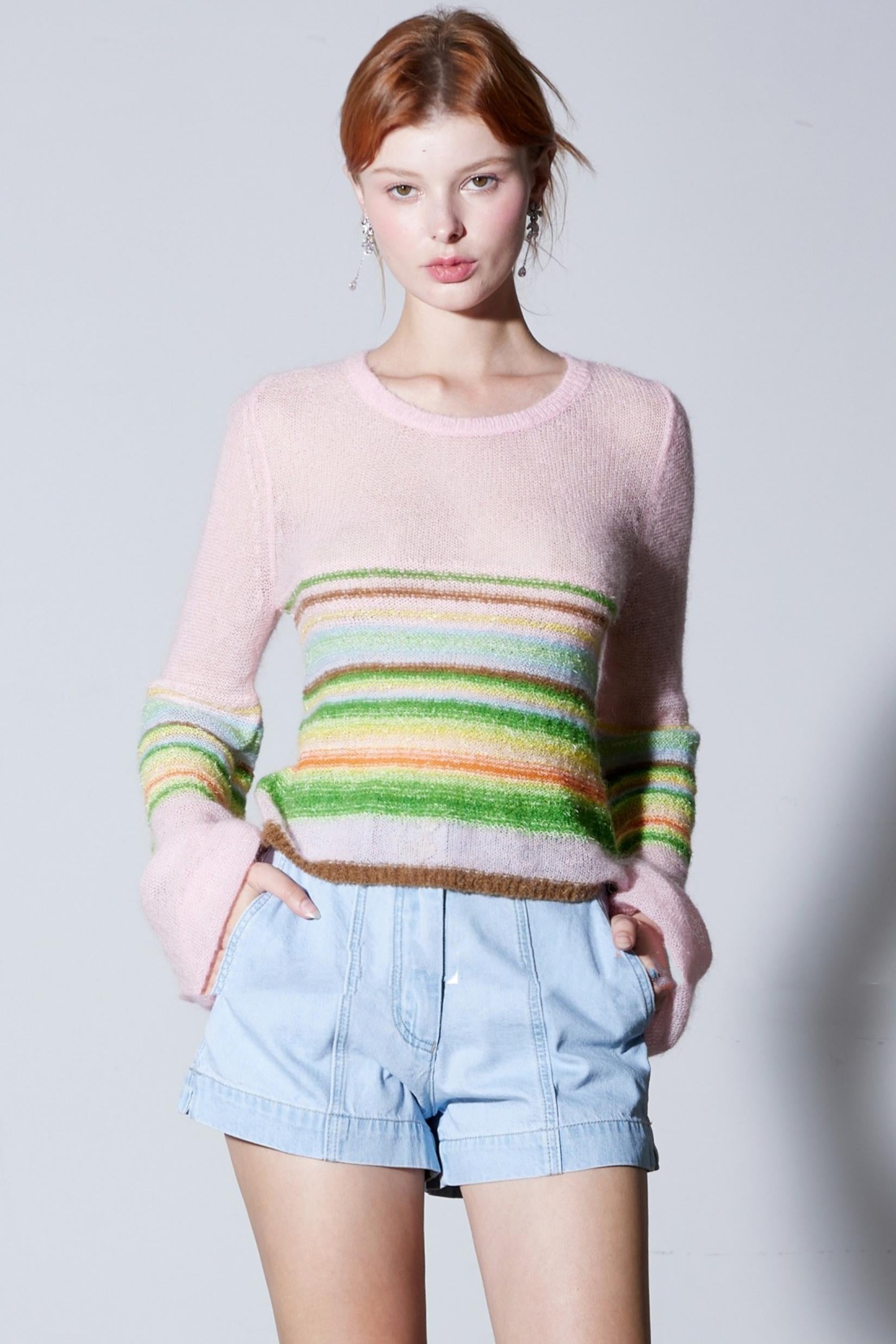 Mohair Silky Wool Rainbow Lantern Sleeve Sweater