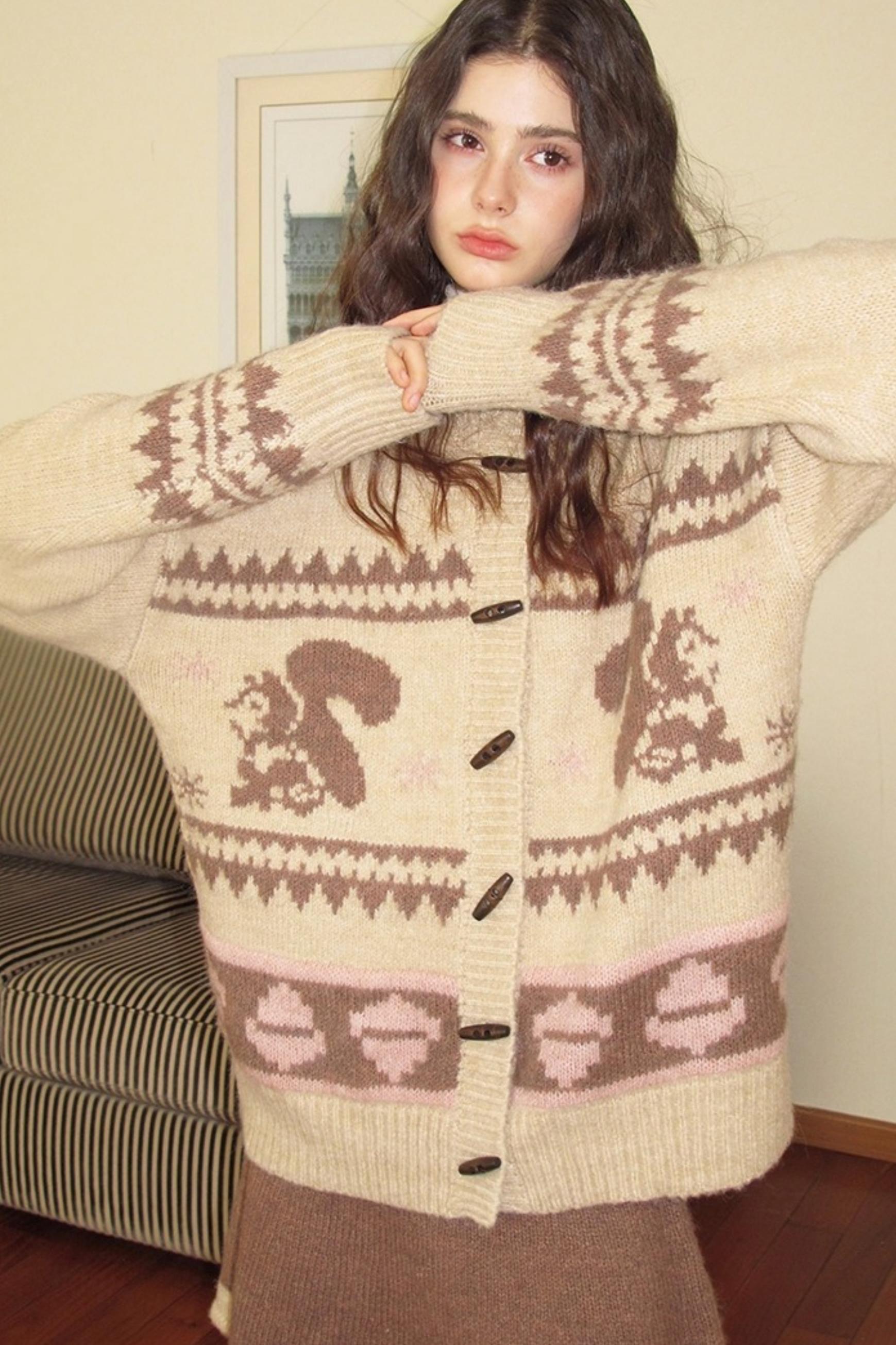 Pinecone Velvet Jacquard Sweater Skirt Set