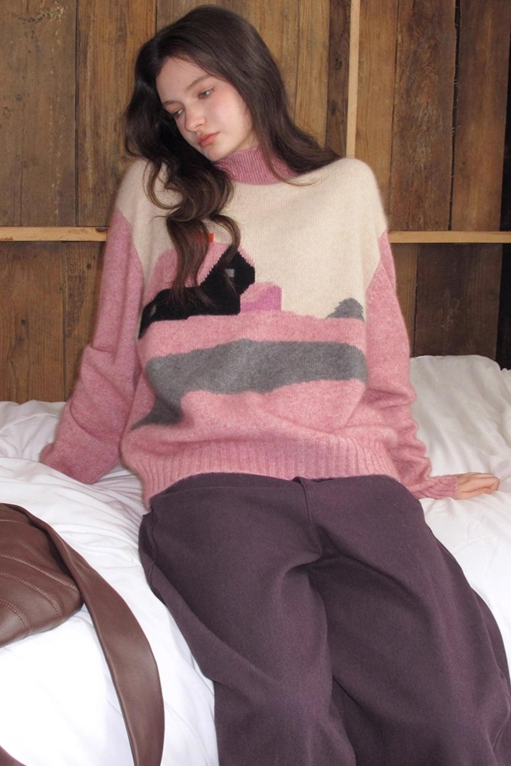 Pink Vintage Cashmere-Like Turtleneck Sweater