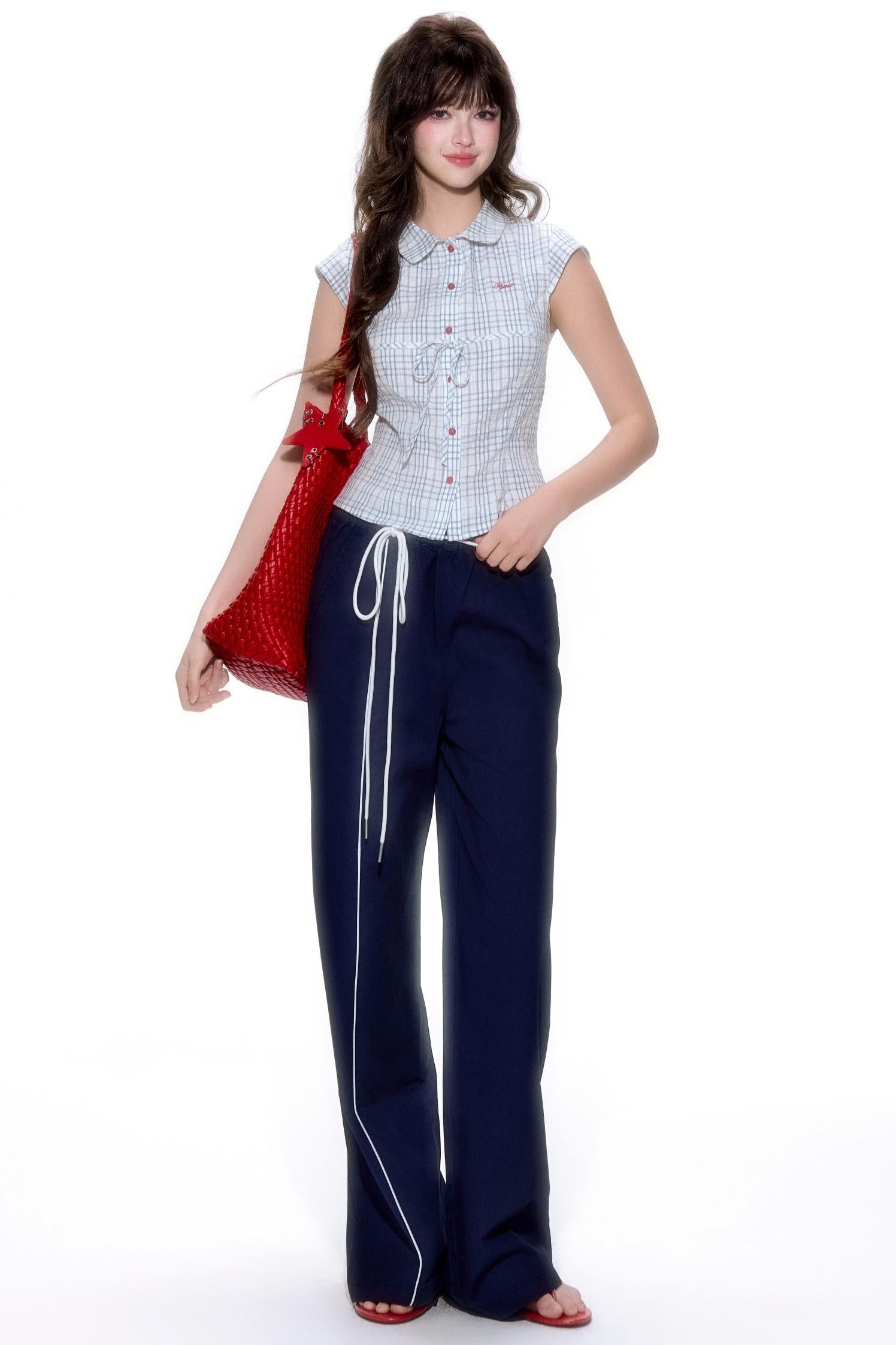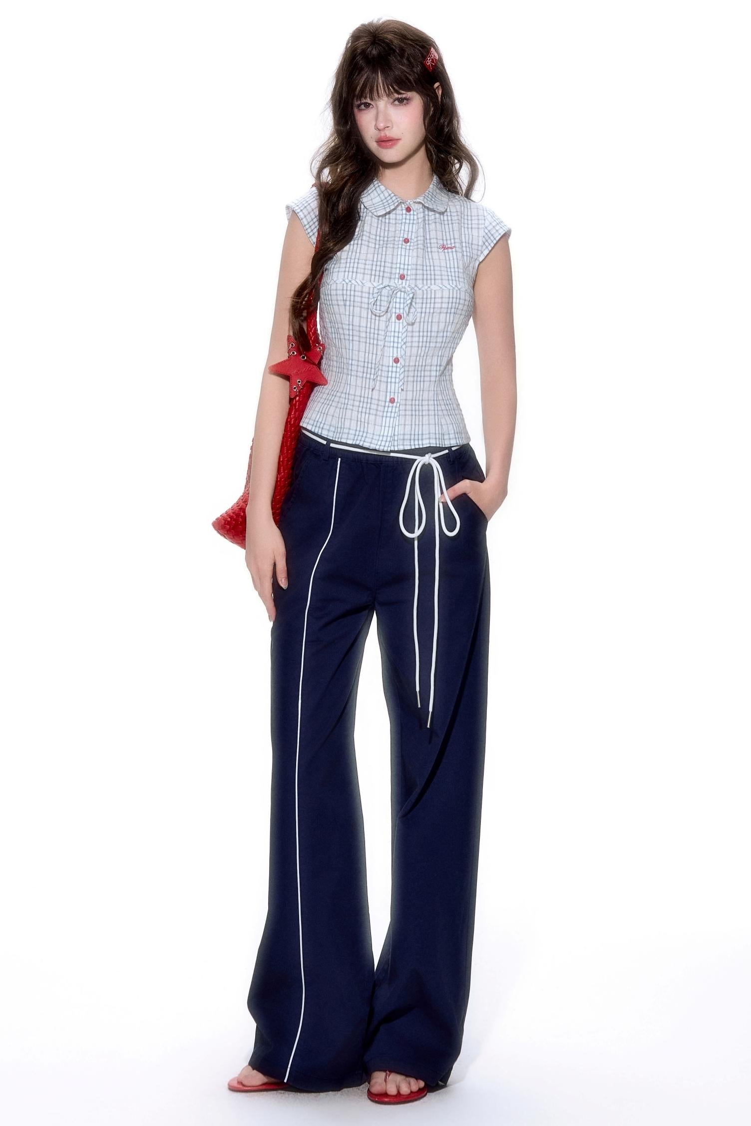 Plaid Short-Sleeve Tie Shirt