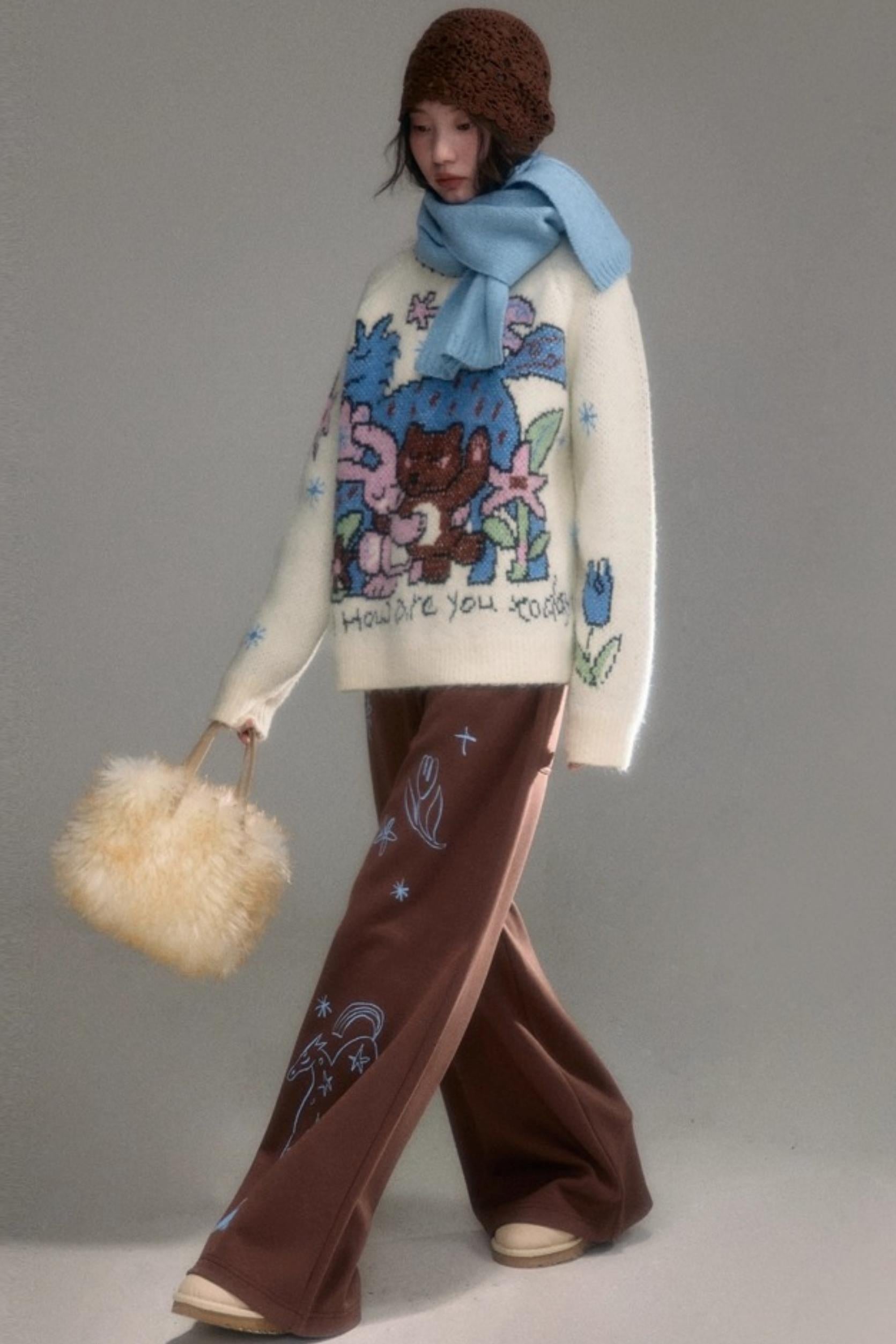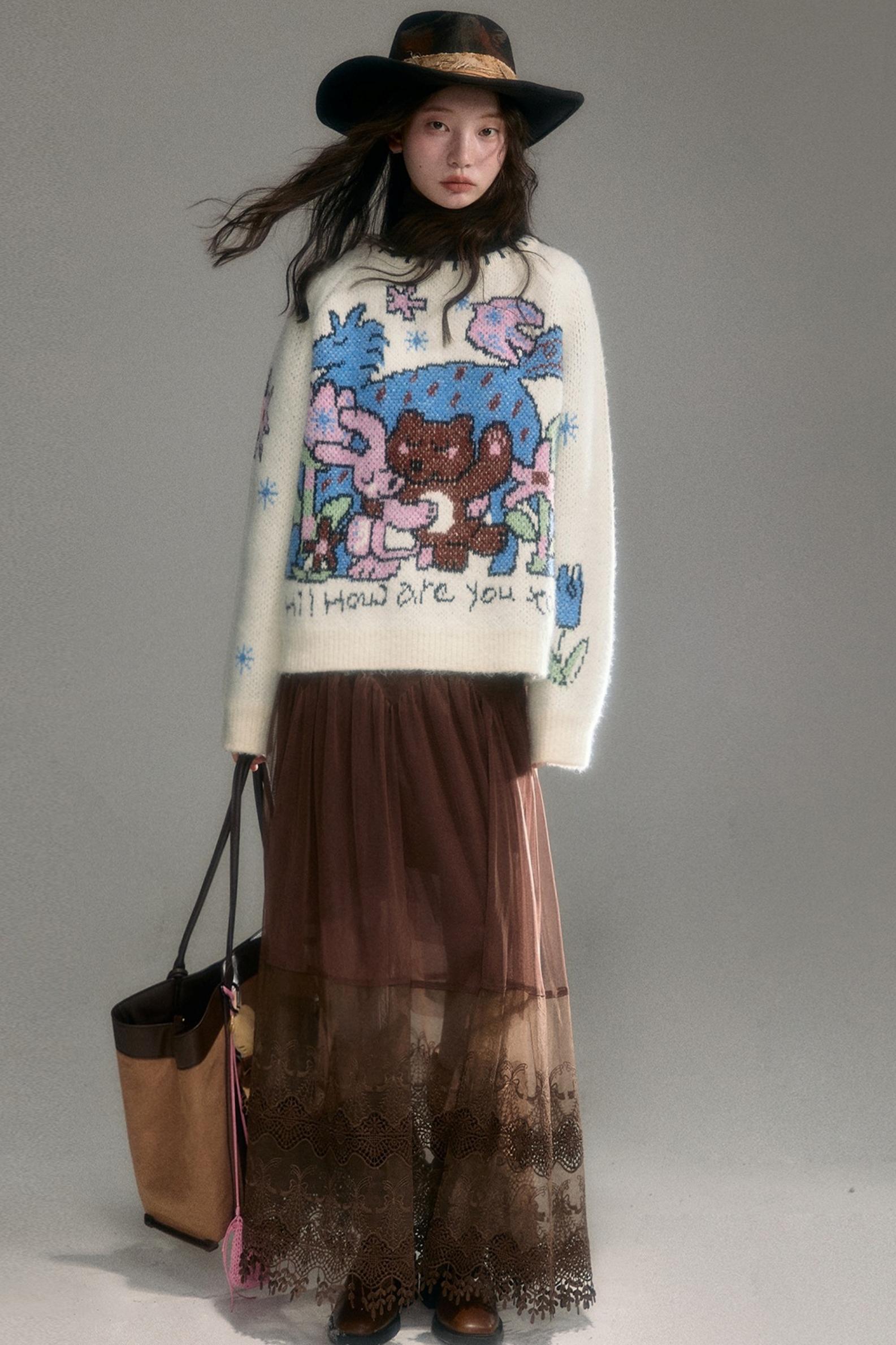 Plush Animal Jacquard Sweater