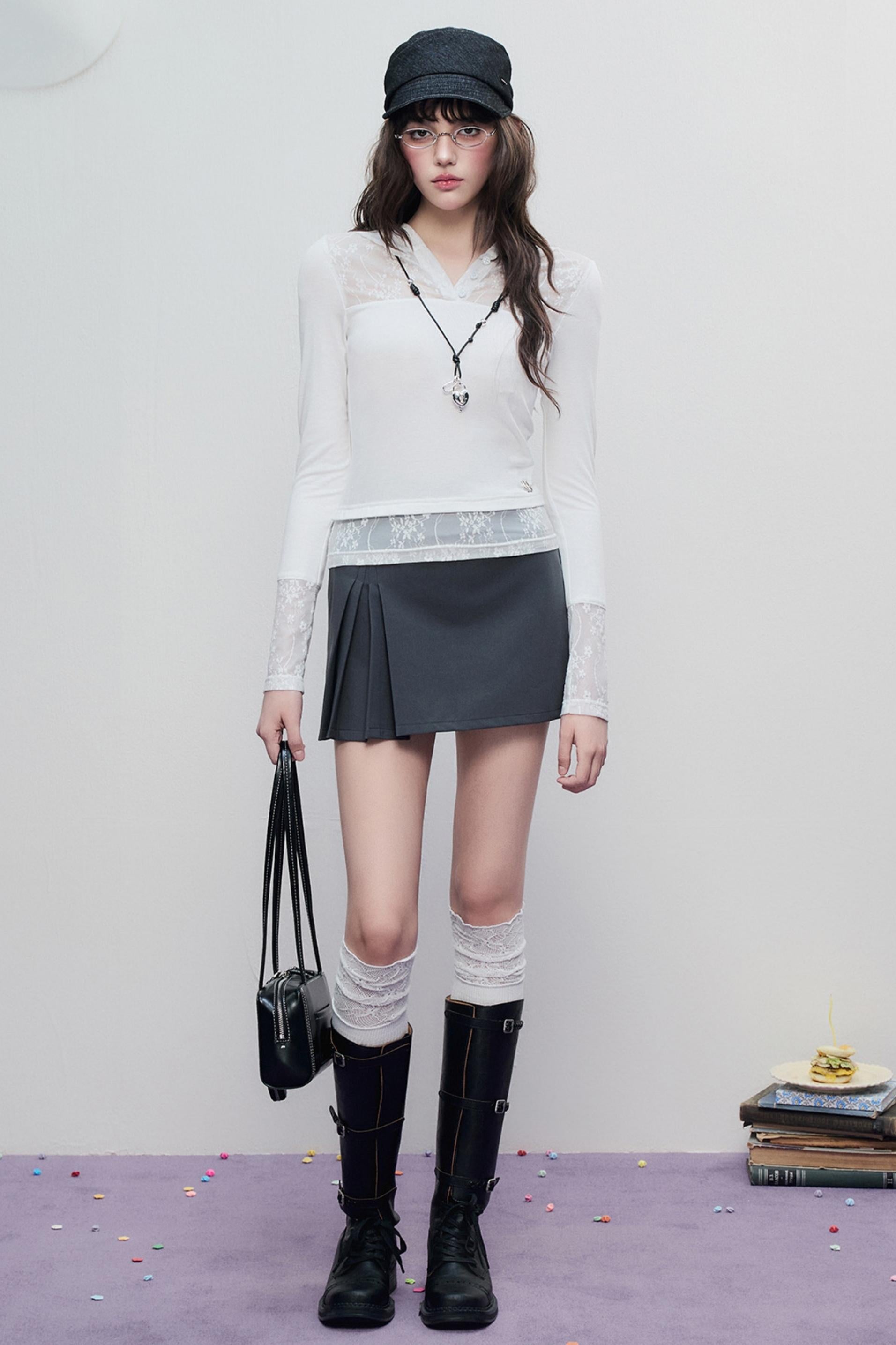 Skeleton Lace Hooded Polo Top