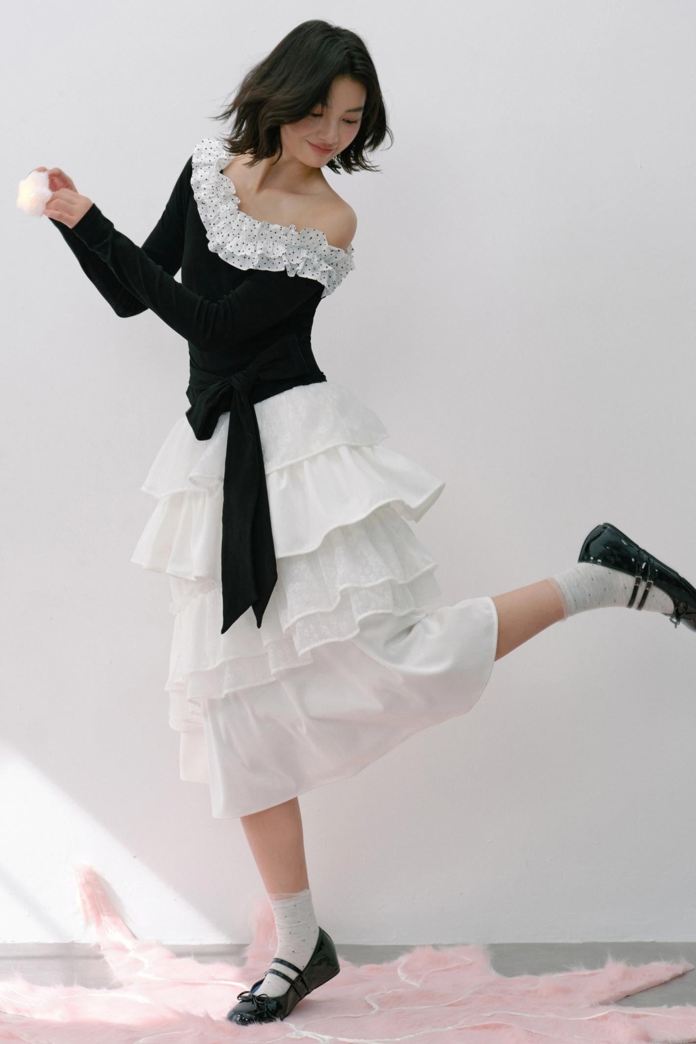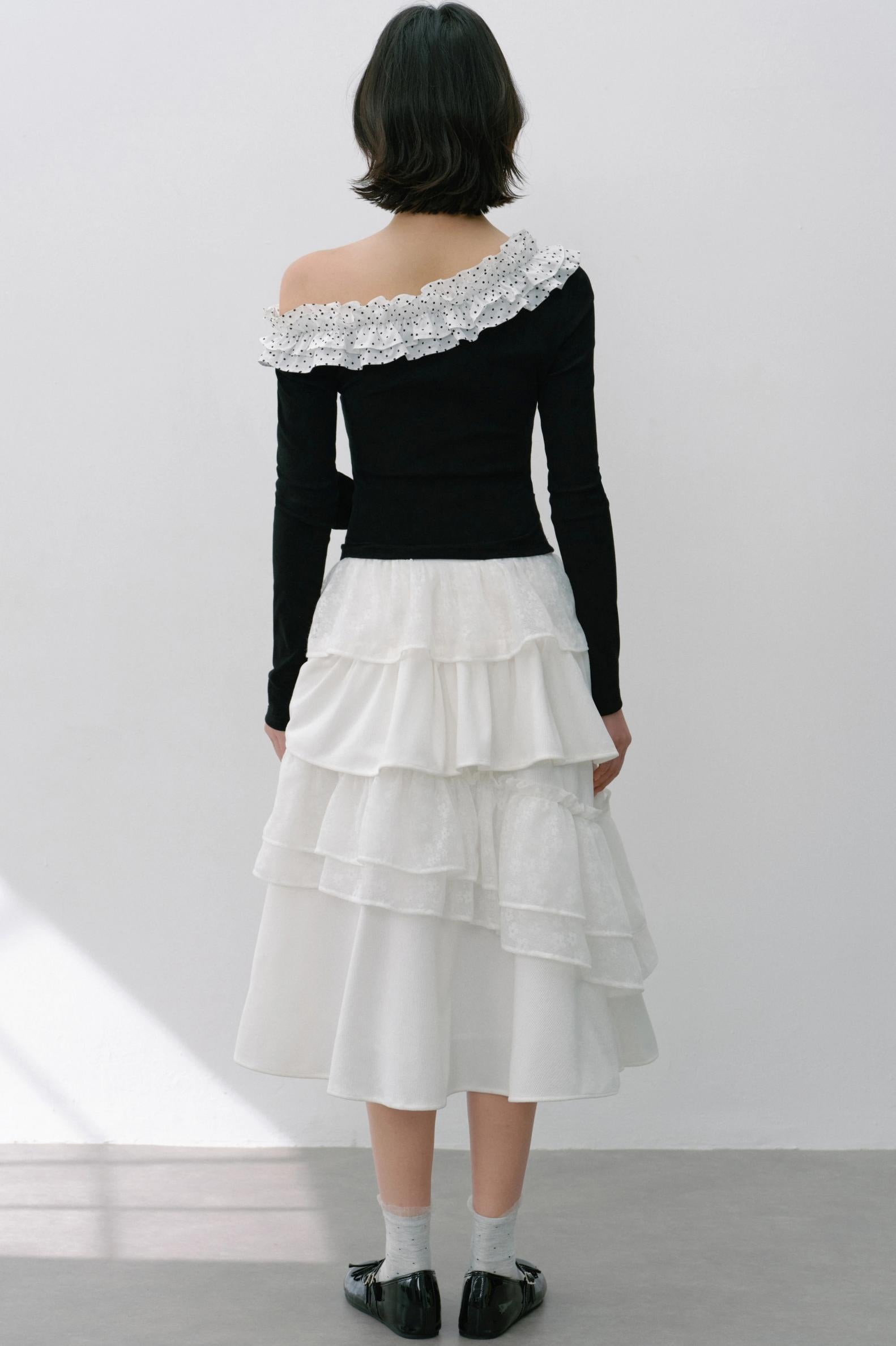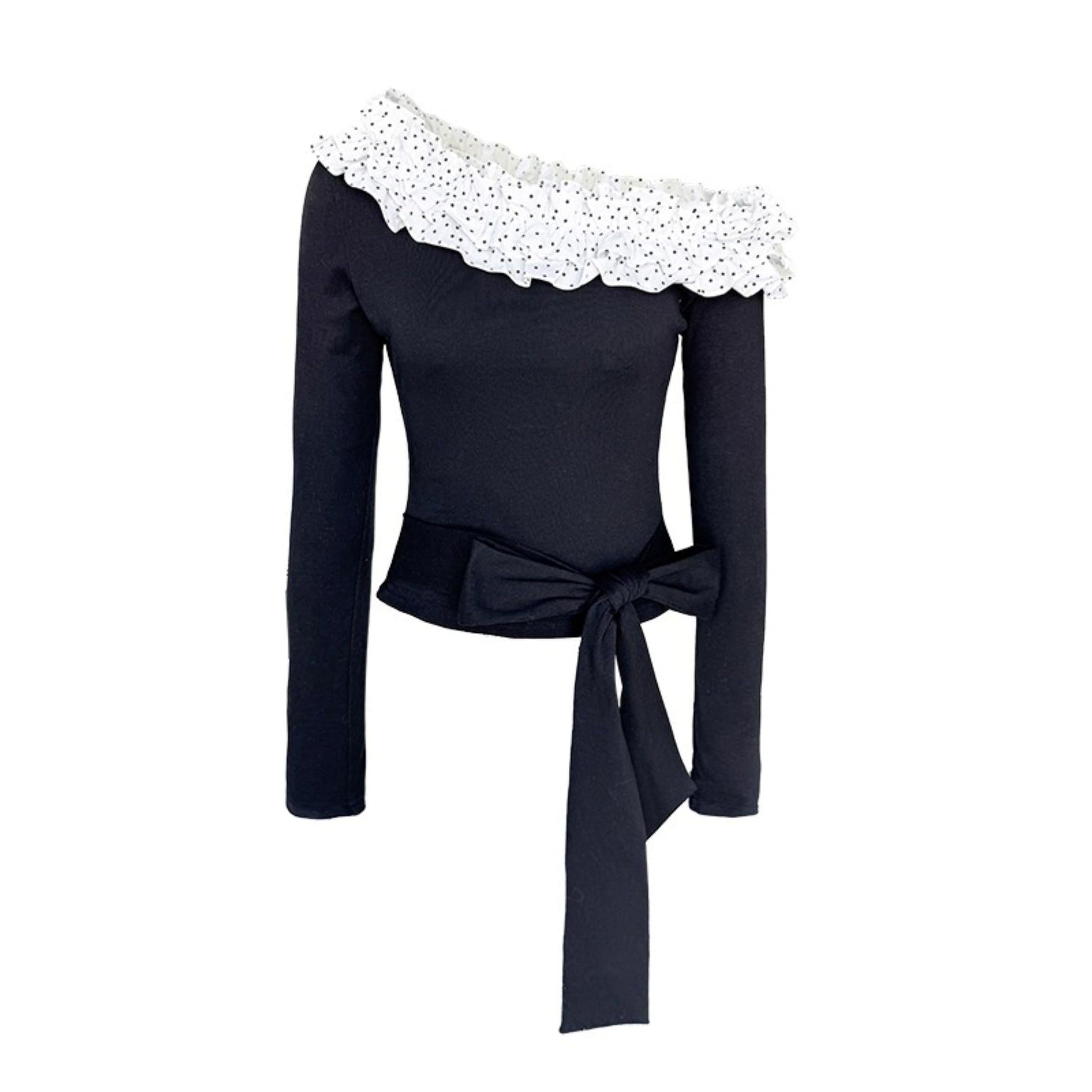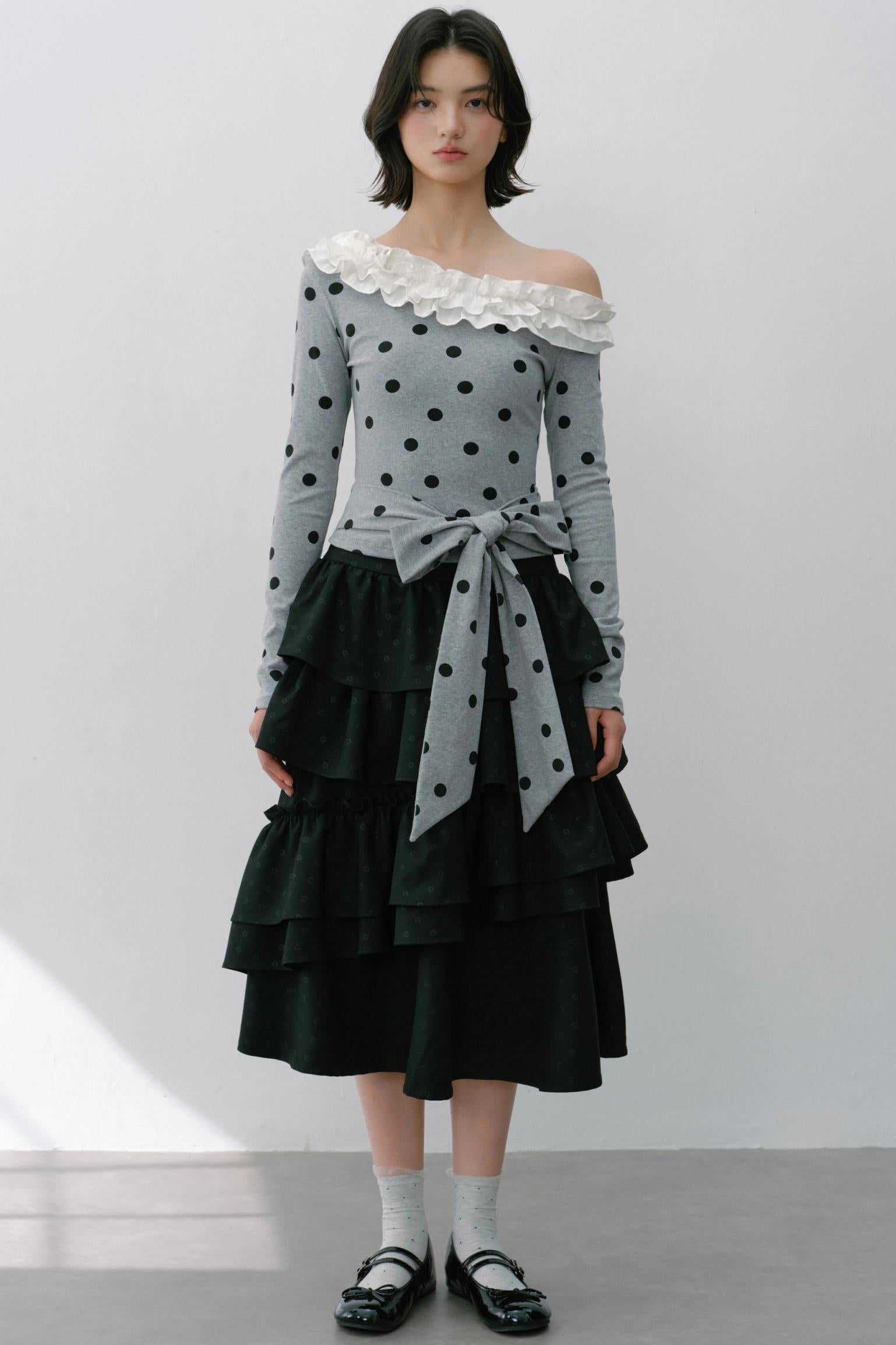 Slanted Polka Dot Long-Sleeved T-Shirt