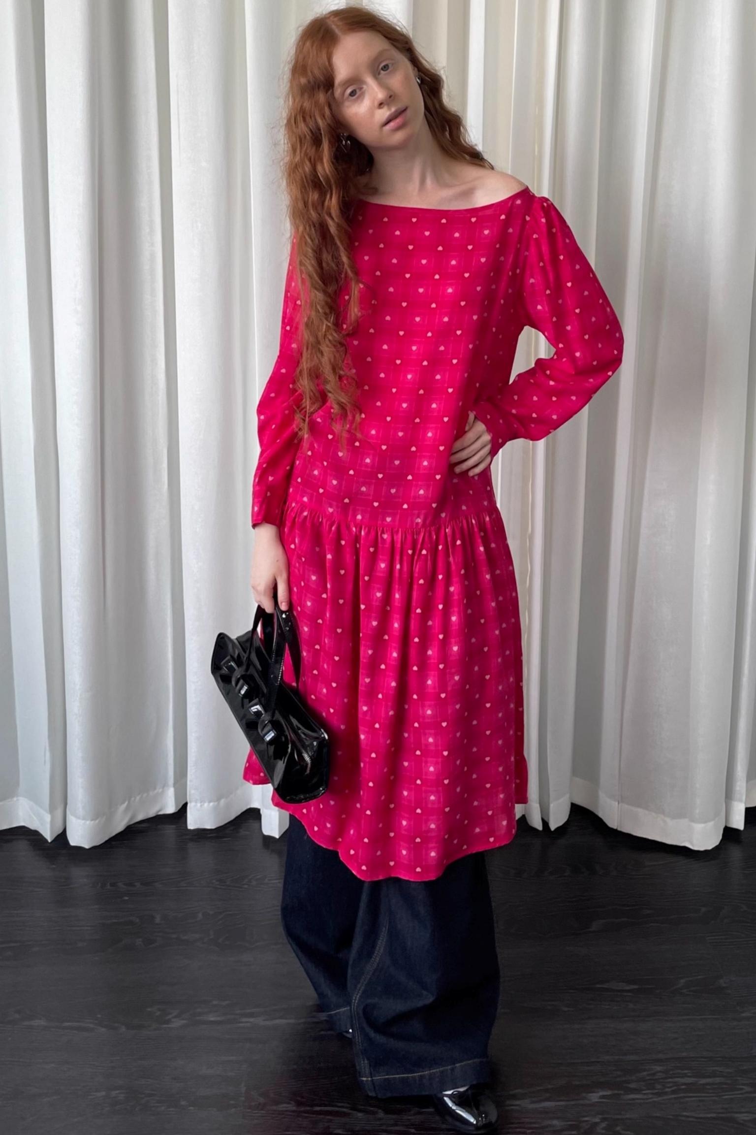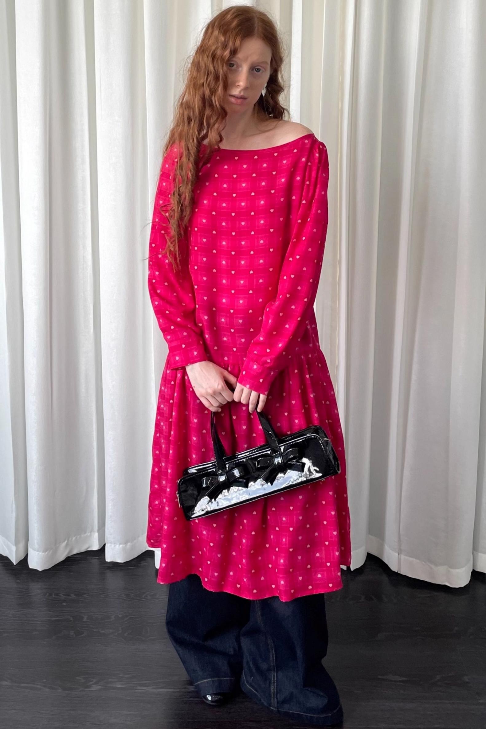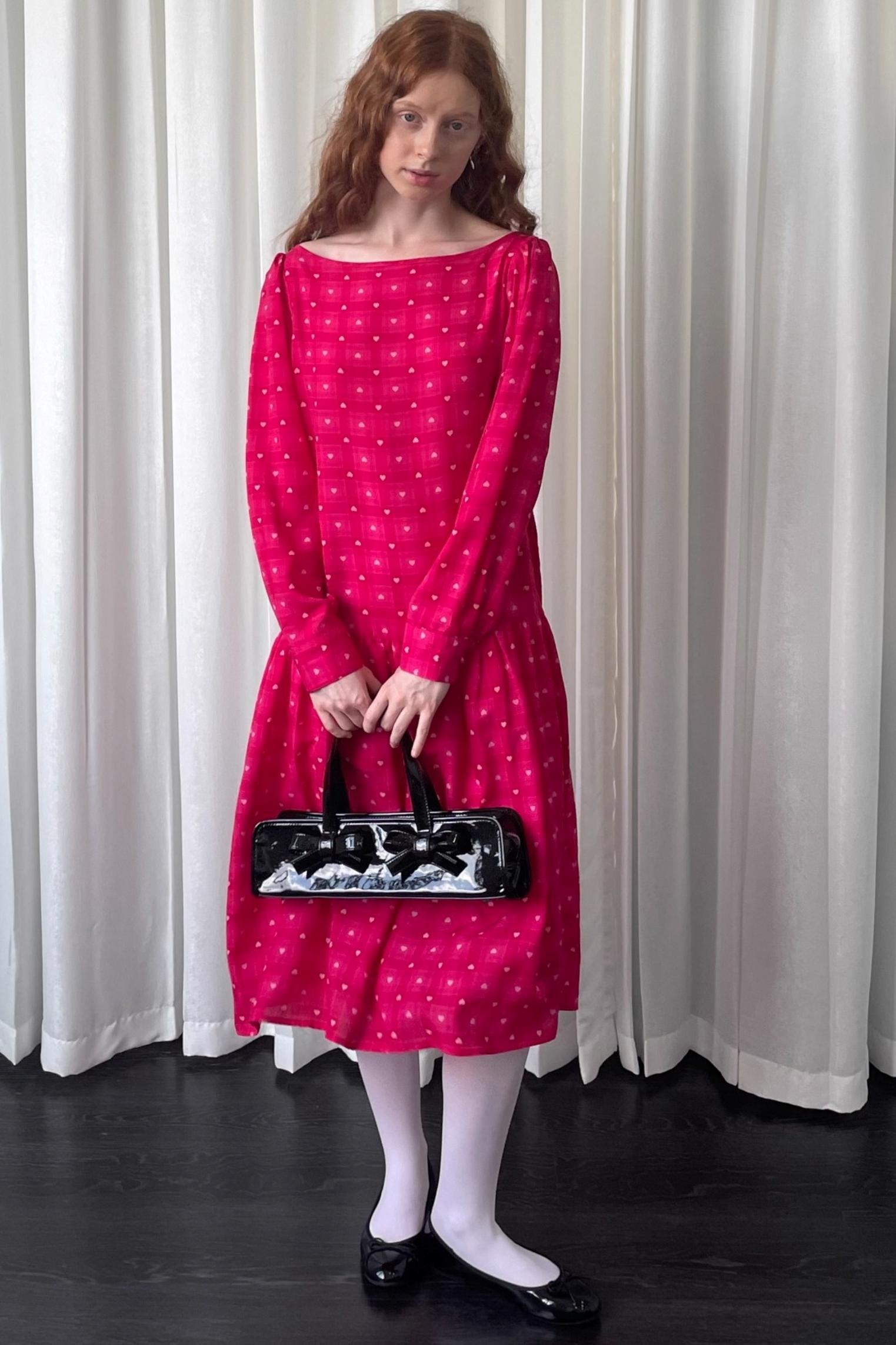 Smell Love Bow Rose Red Plaid Long Sleeve Dress