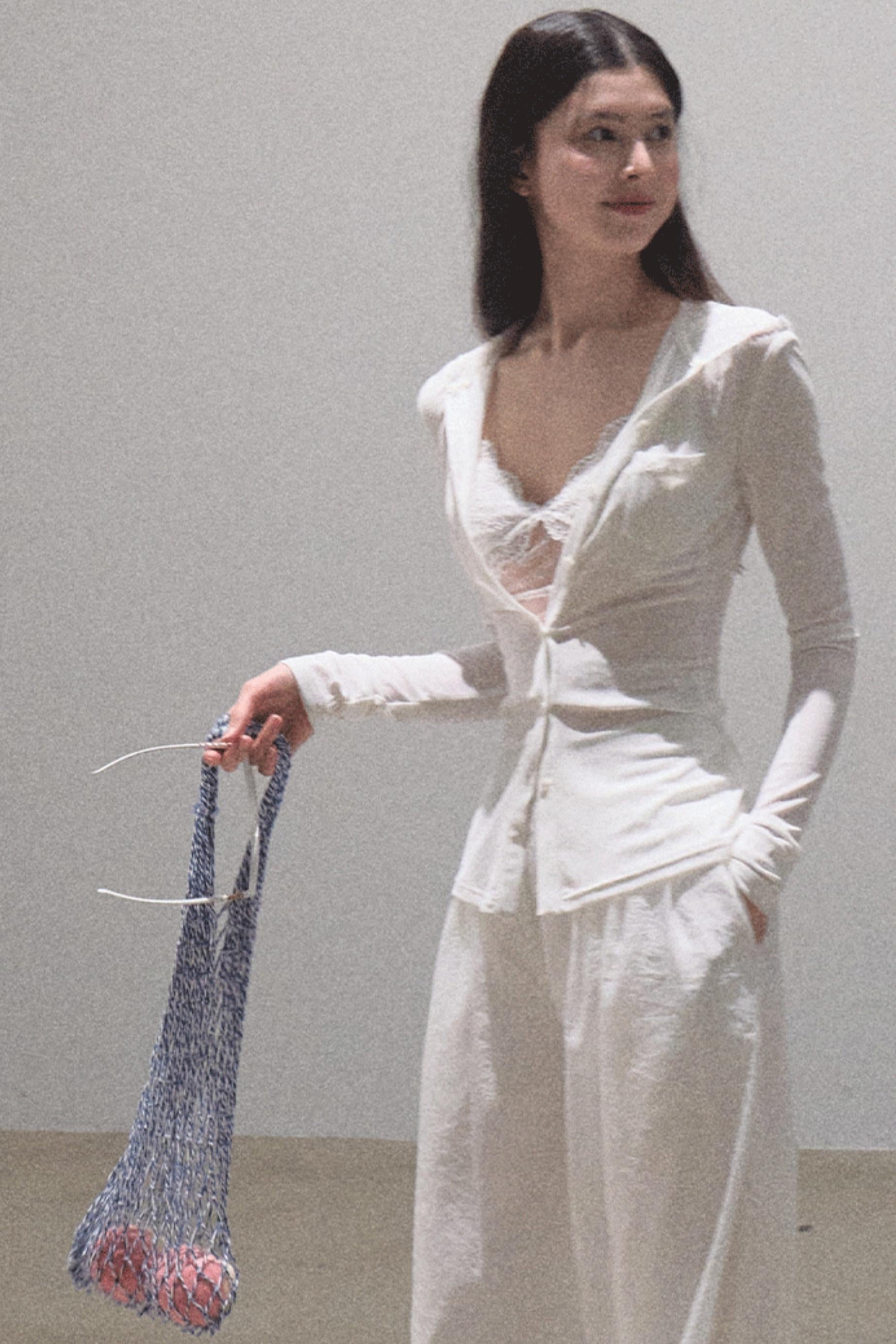 Snowflake Knit Hoodie & Patchwork Shorts Set-Up