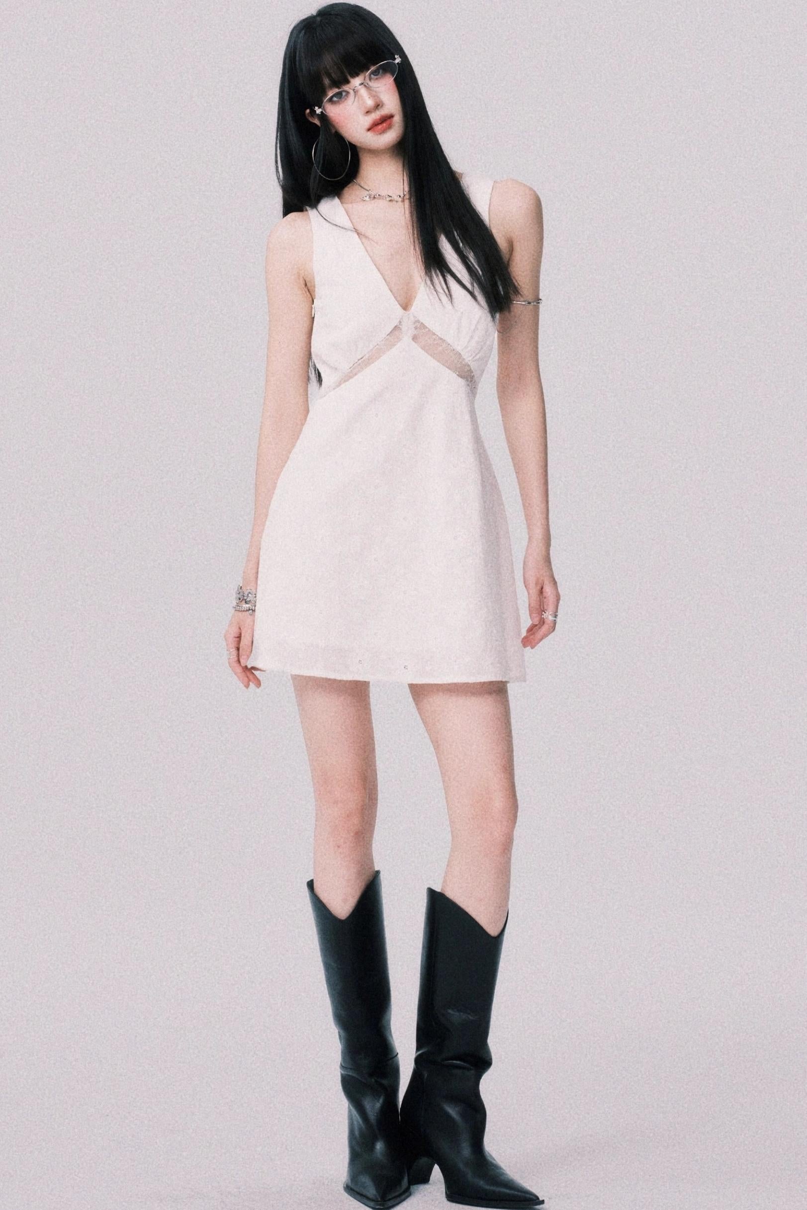 Summer Lace V-Neck Vest Dress