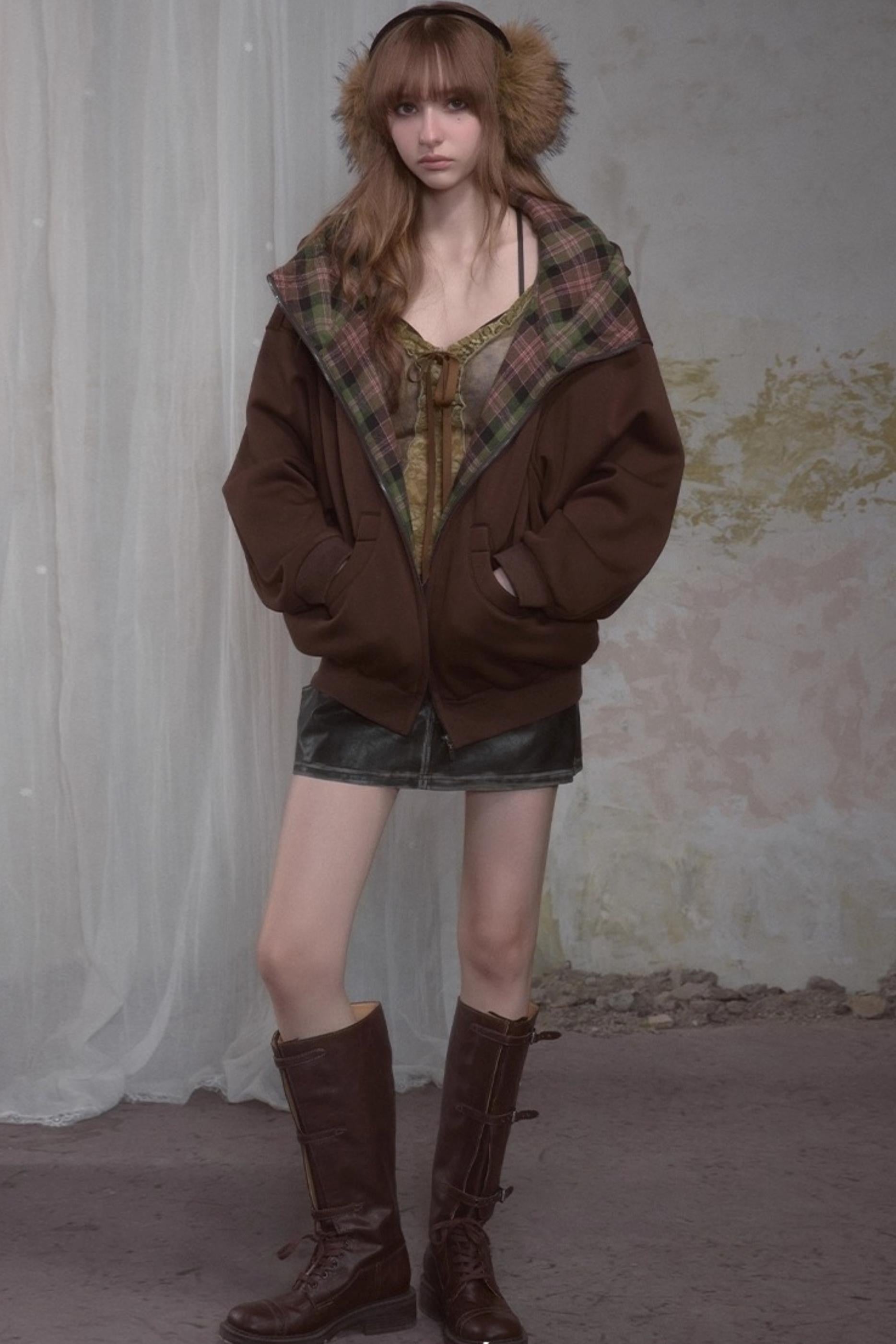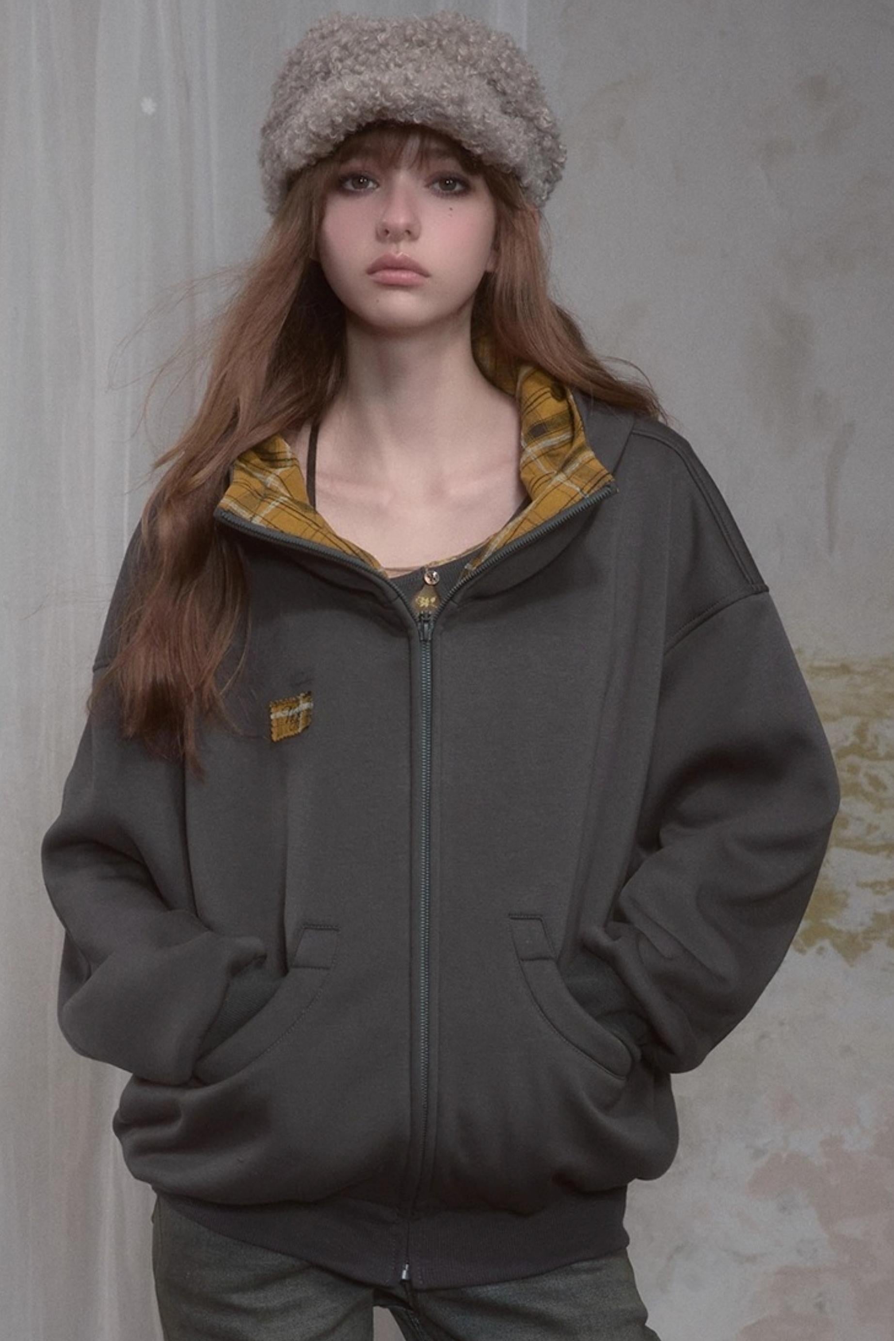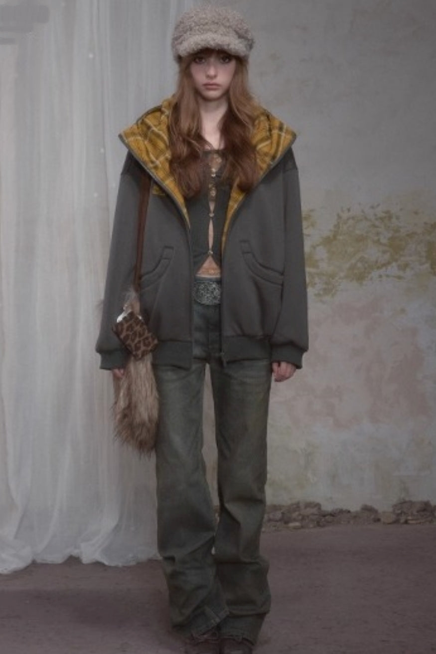 Sweet Lazy Plaid Sweatshirt Jacket