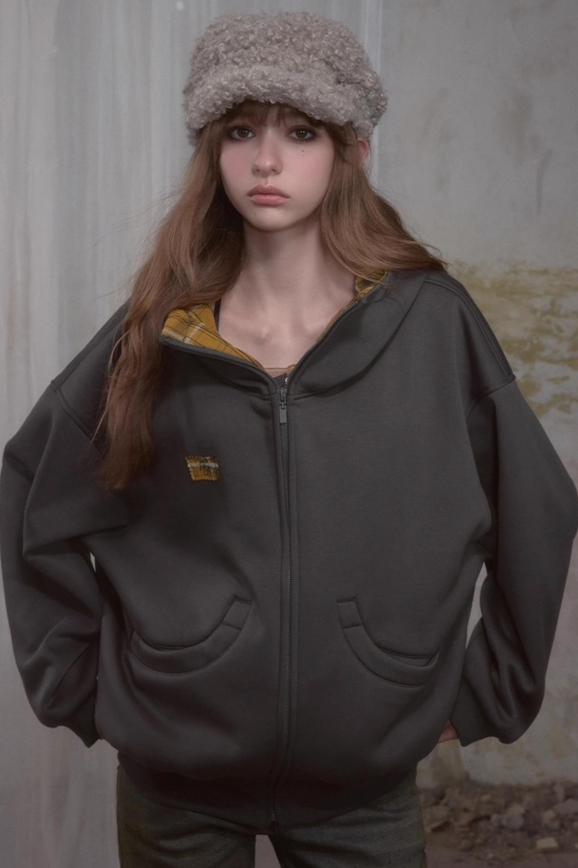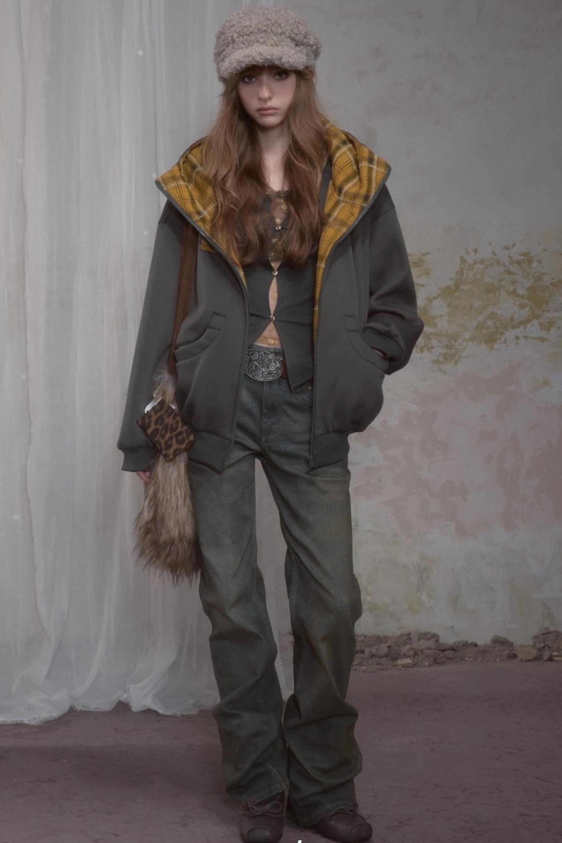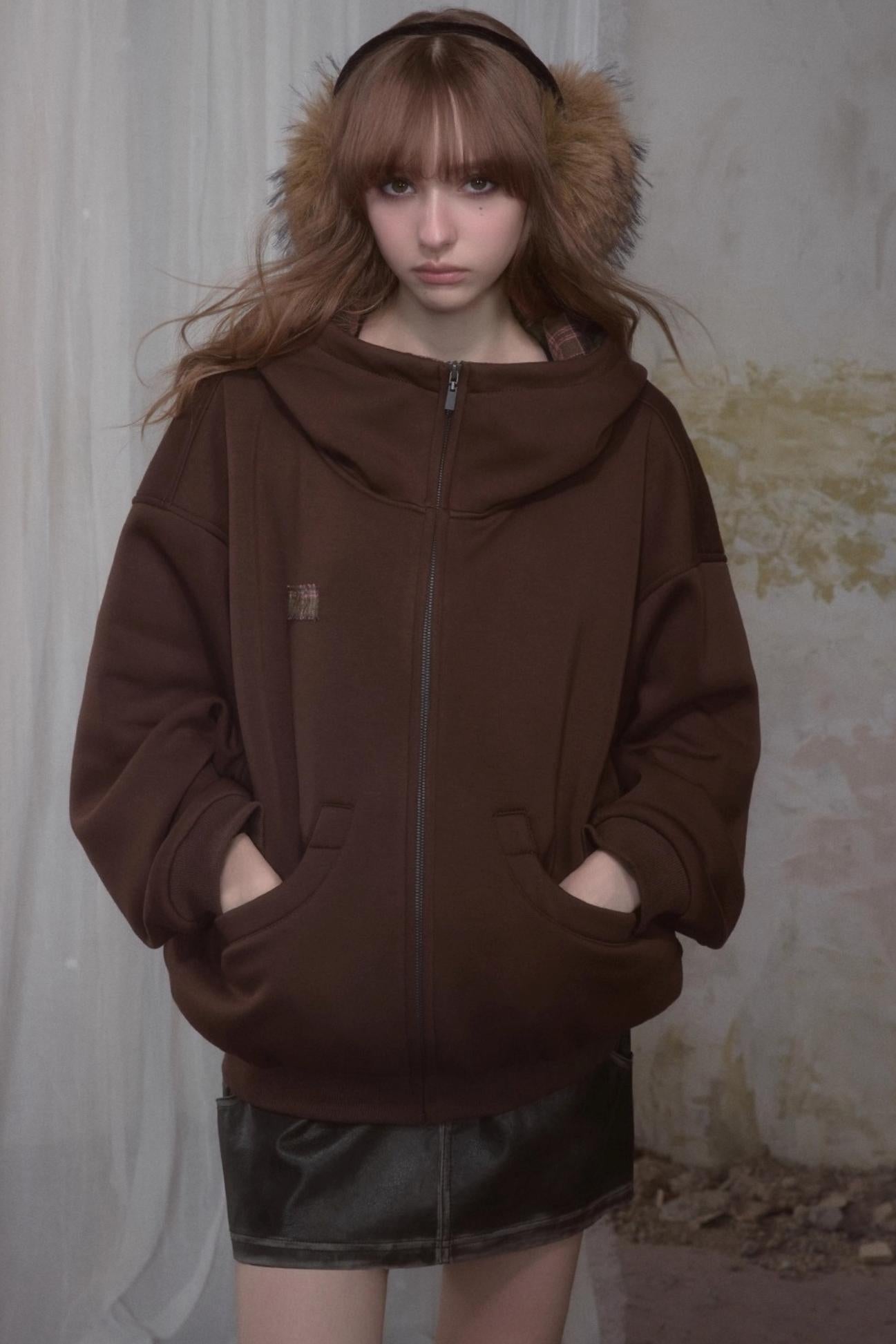 Sweet Lazy Plaid Sweatshirt Jacket