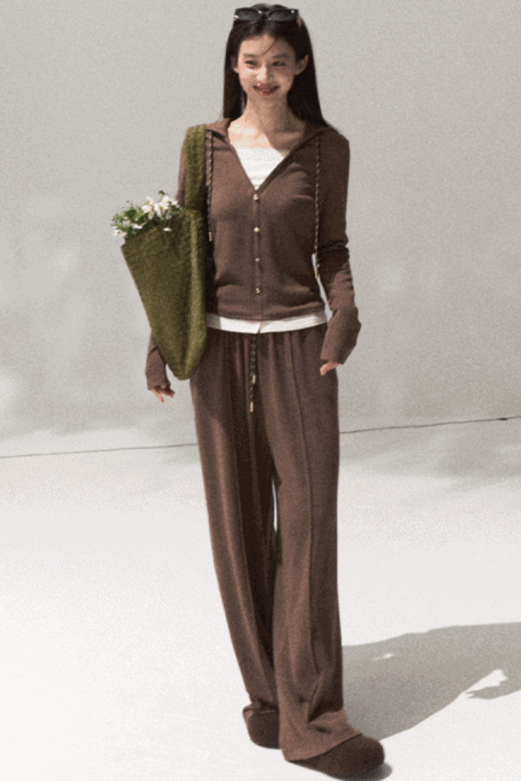 Tears Knit Top & Wide-Leg Pants Set-Up