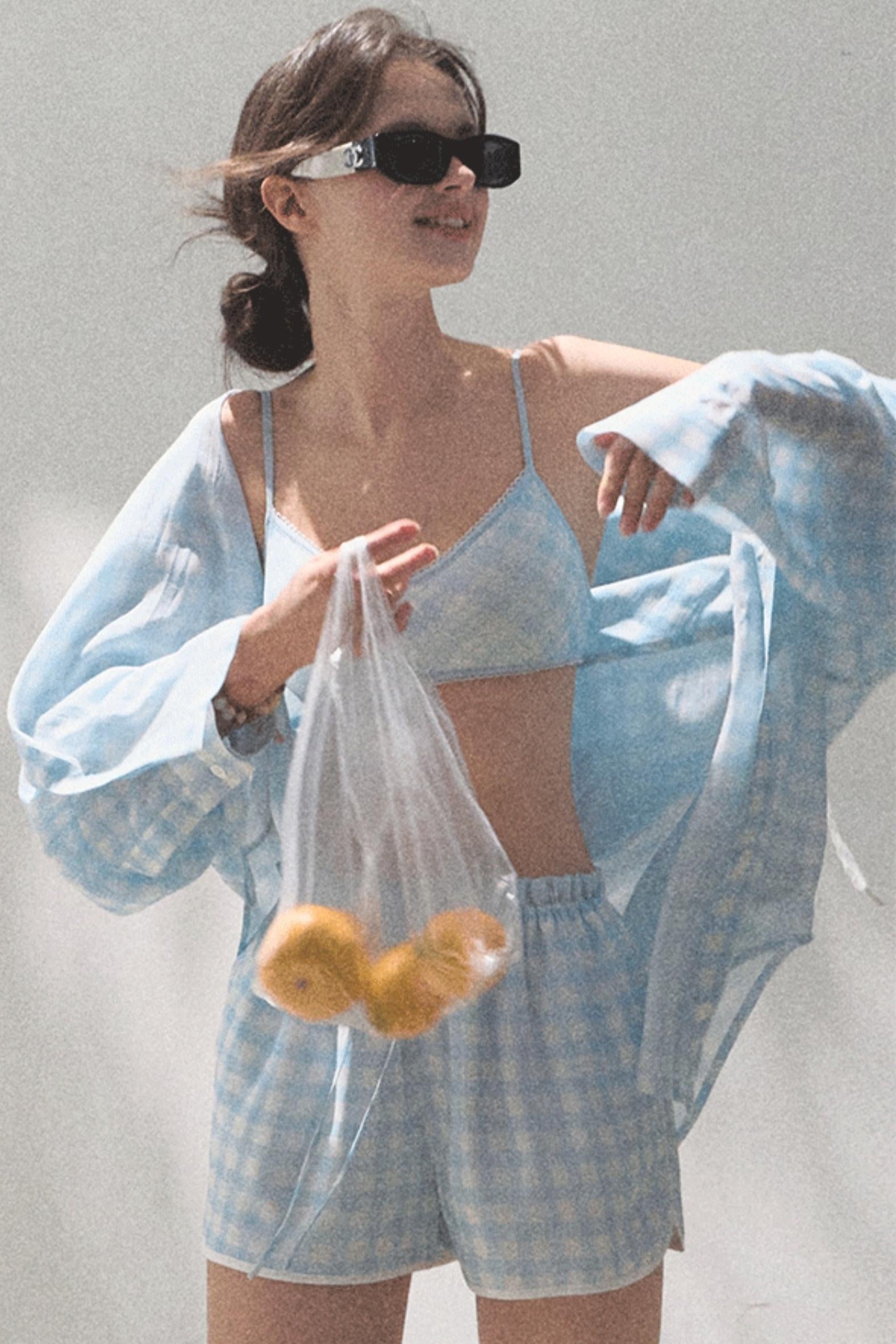 Tencel Hooded Sun Shirt & Plaid Shorts Set-Up