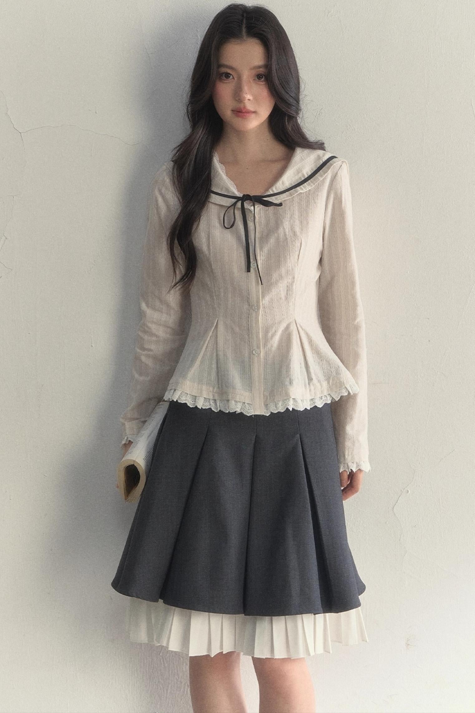 Texture Long Sleeve Waist Shirt Set-Up
