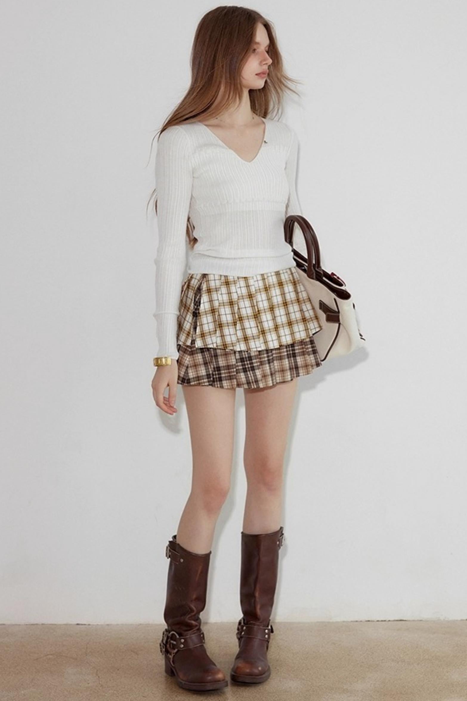 Textured V-neck Wool Knit Slim Top