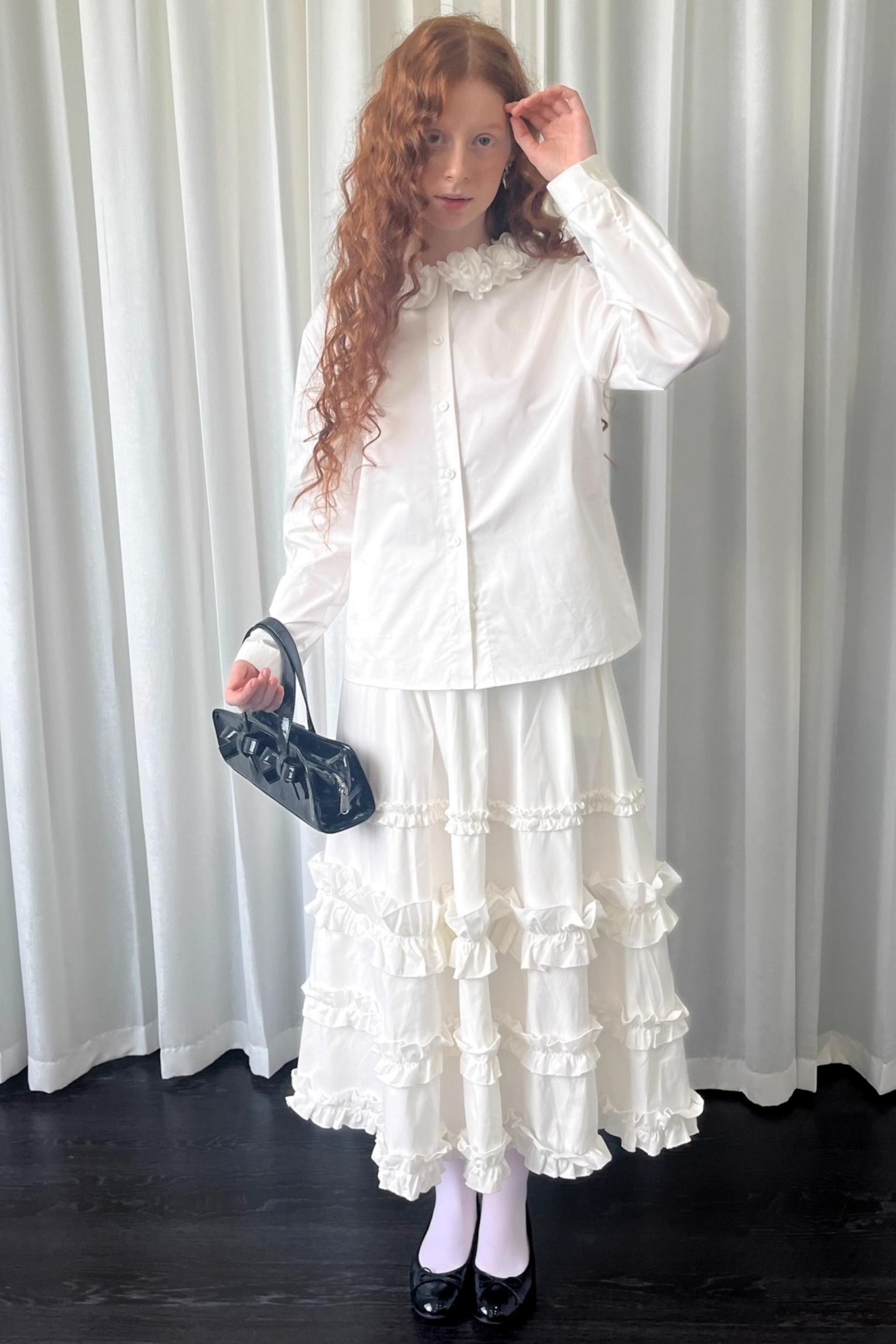 Three-Dimensional White Long Sleeve Shirt