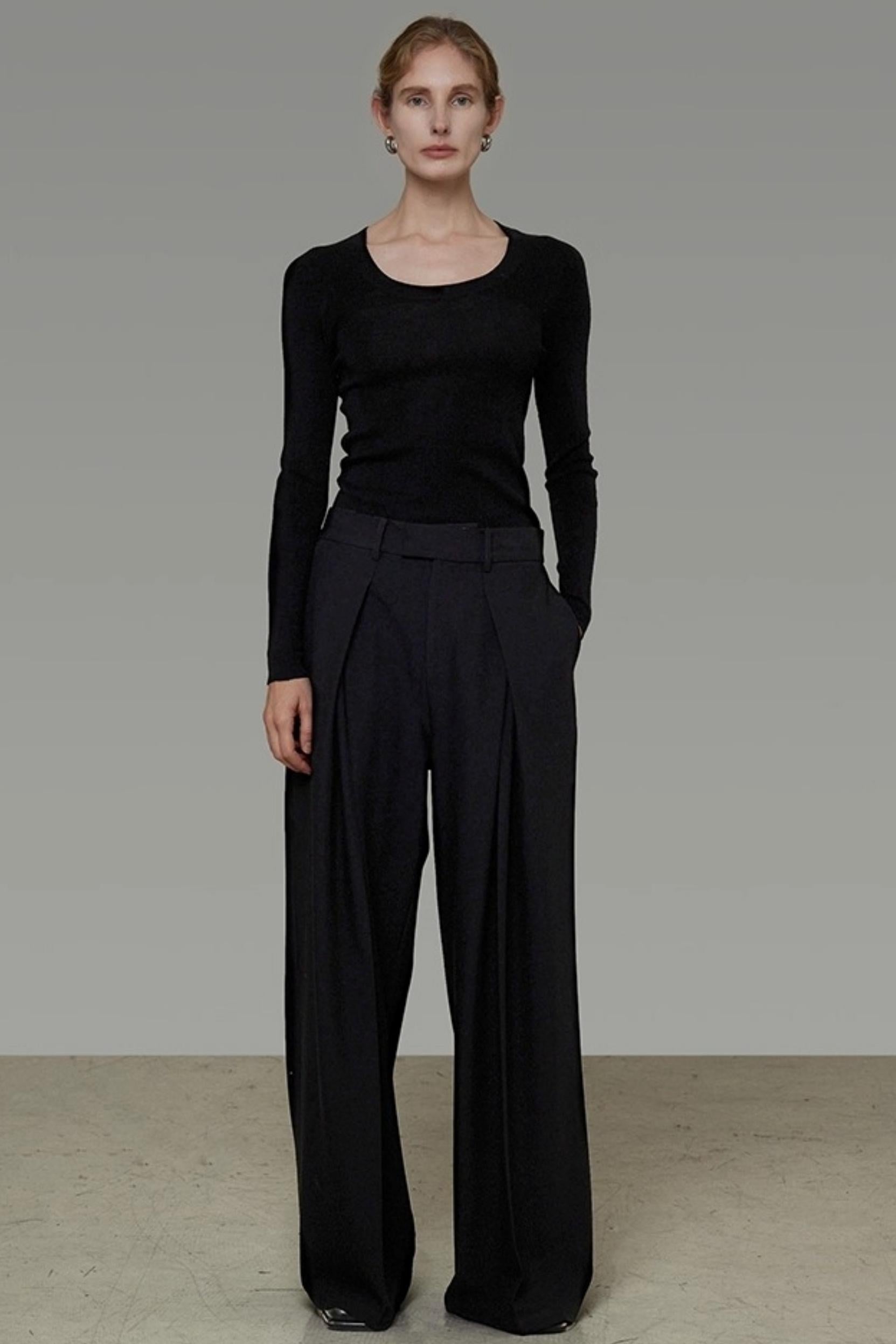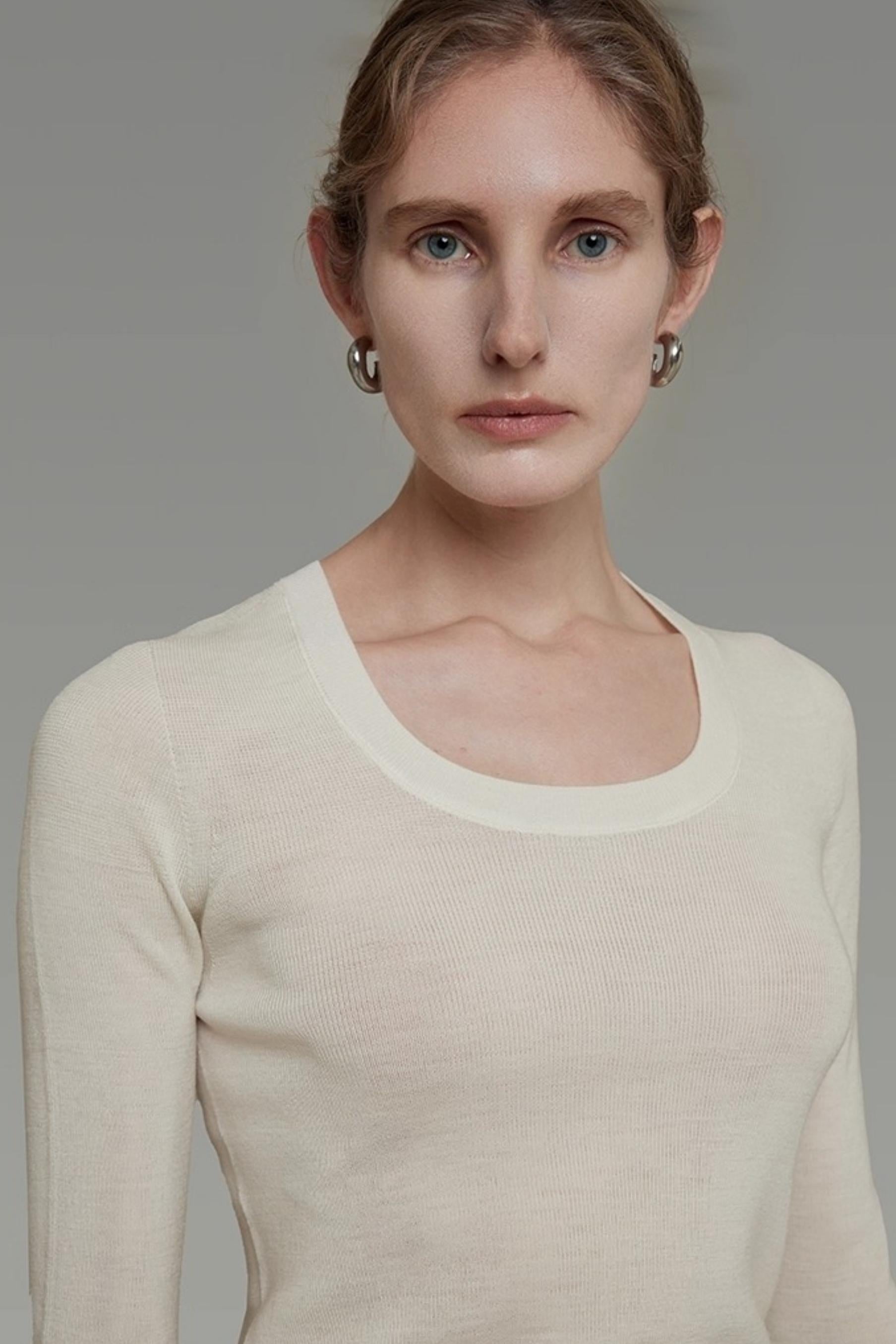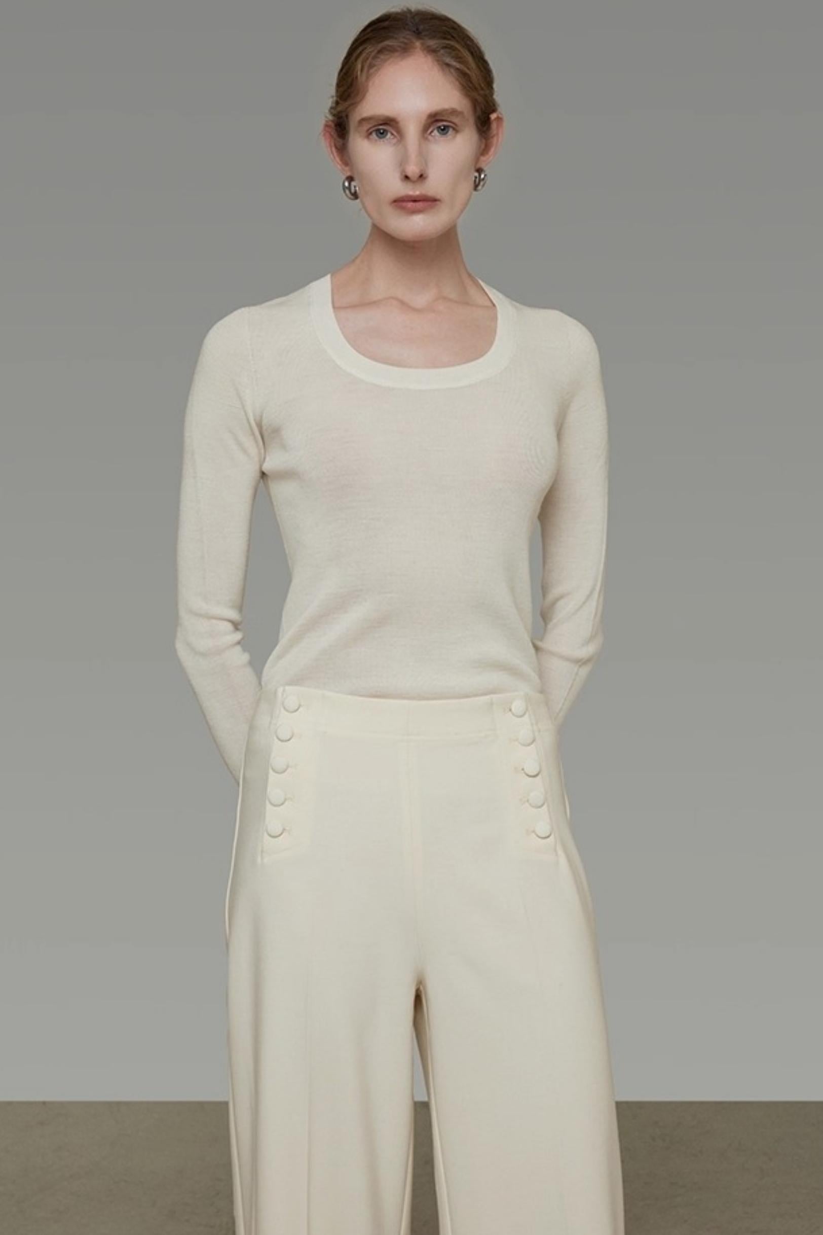 U-Neck Wool Slim Sweater