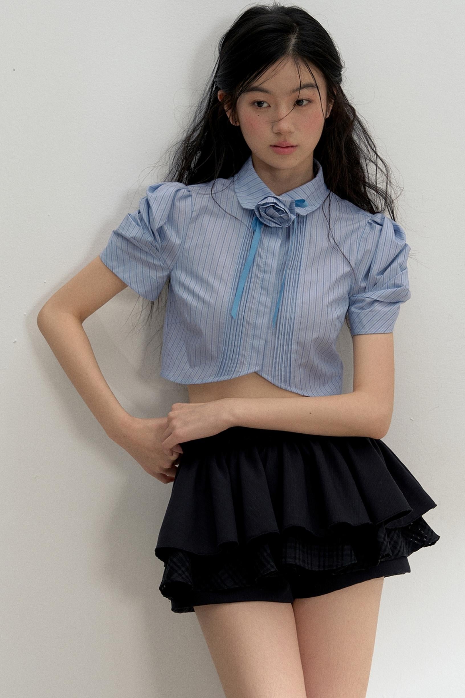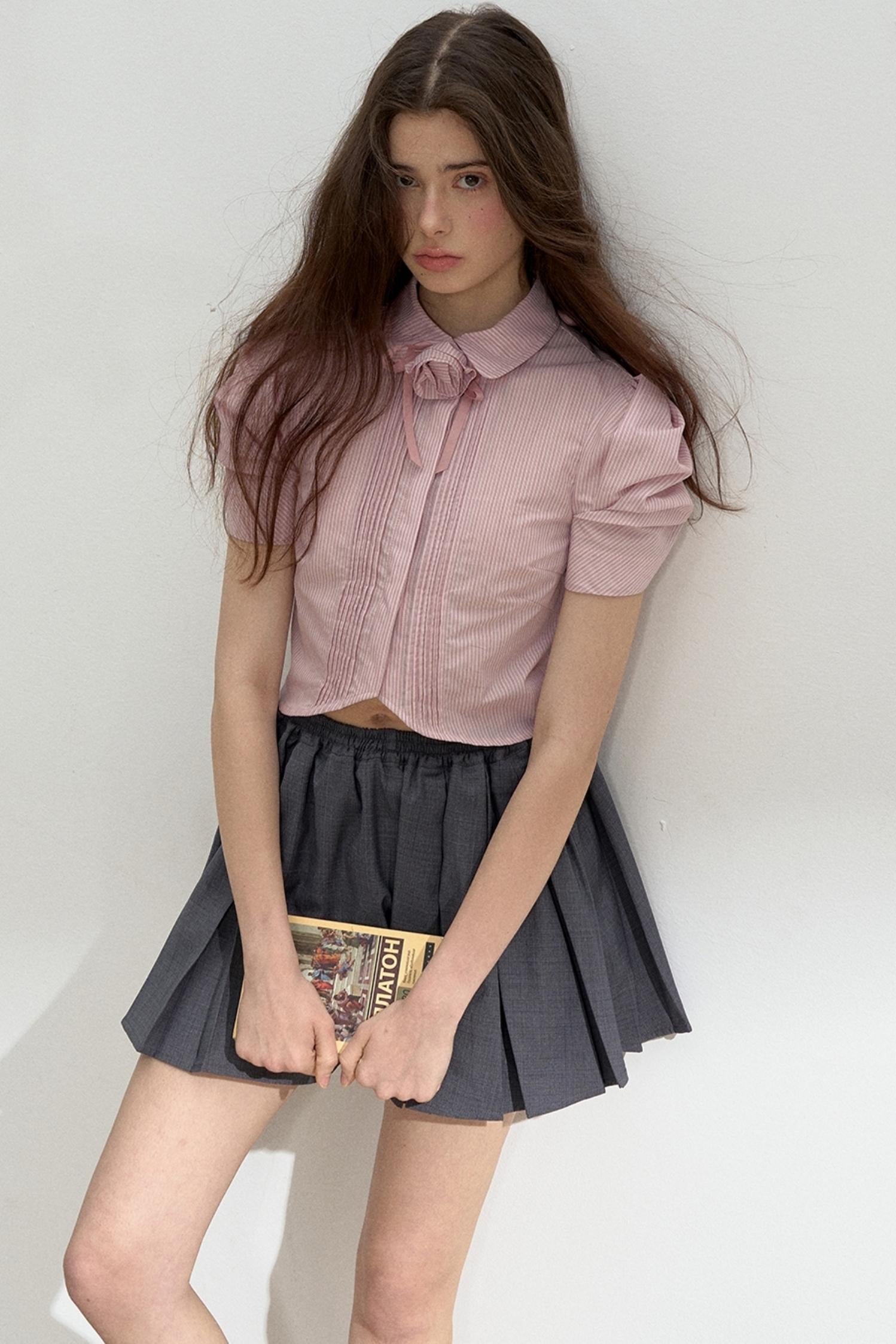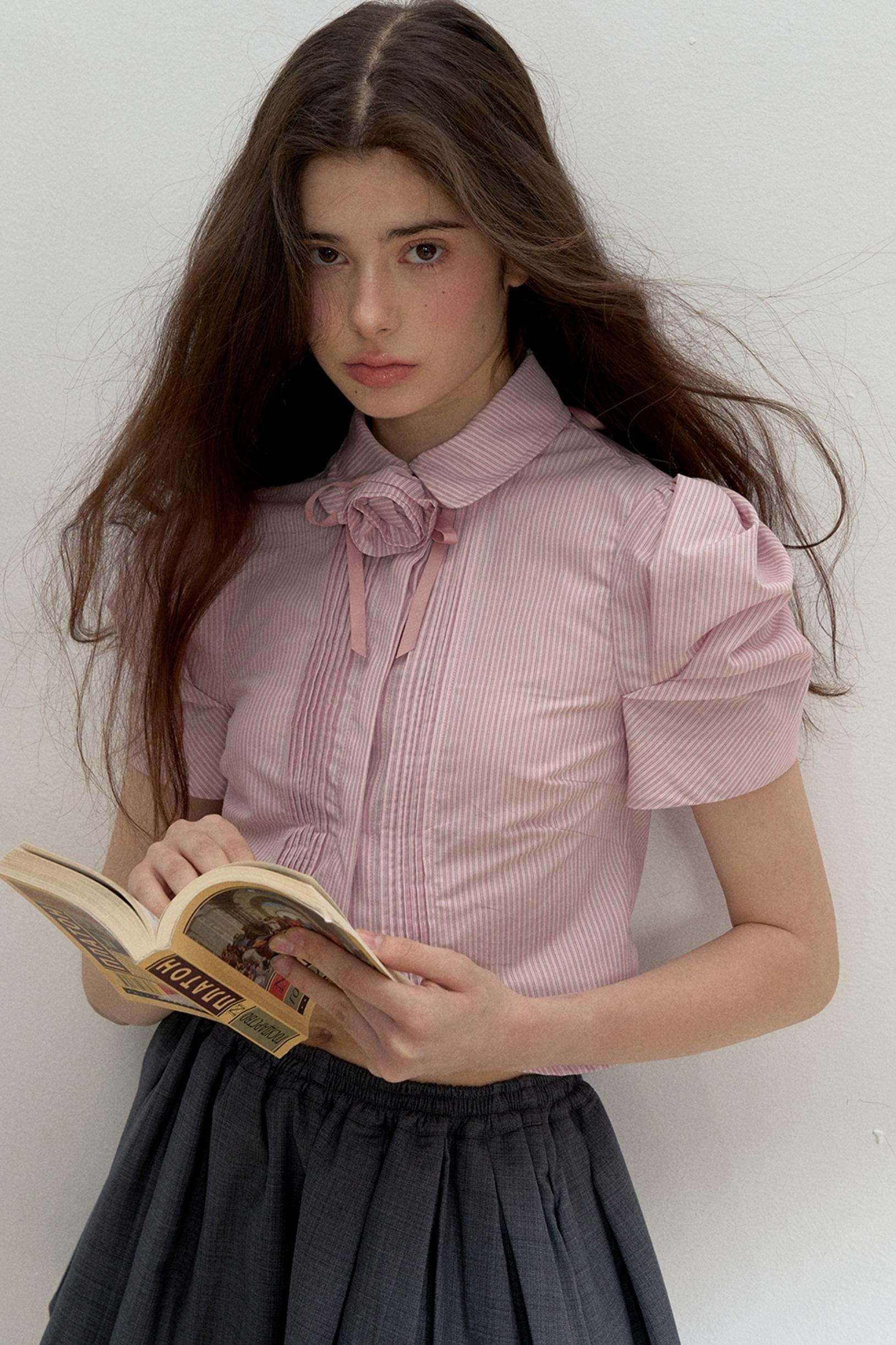 Vertical Stripe Bubble Sleeve Shirt