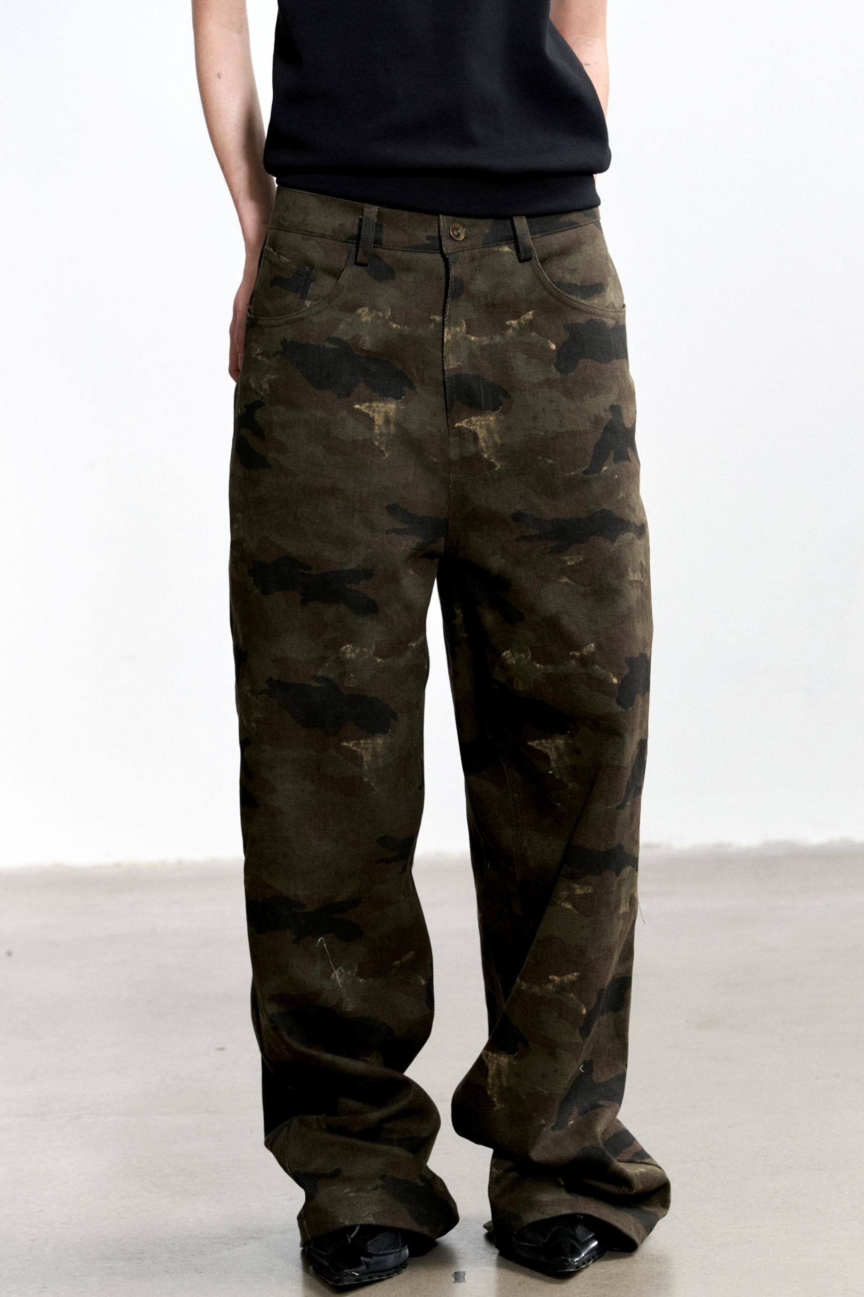 Vintage Camouflage Wide-Leg Jeans