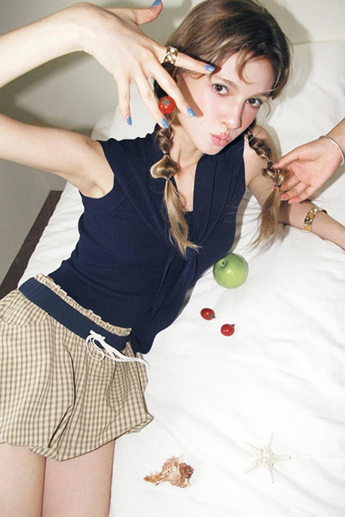 Vintage Khaki Plaid Elastic Skirt