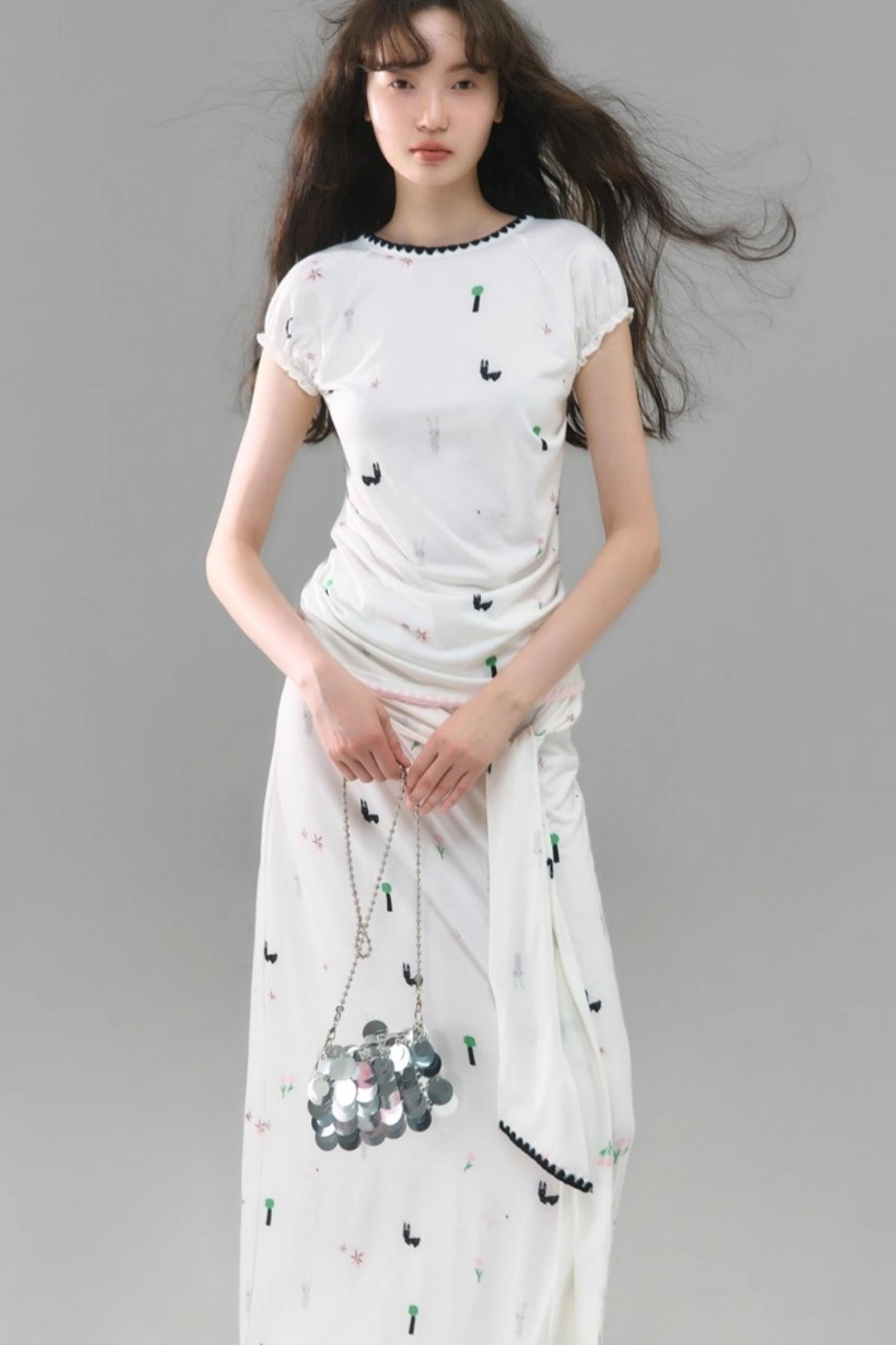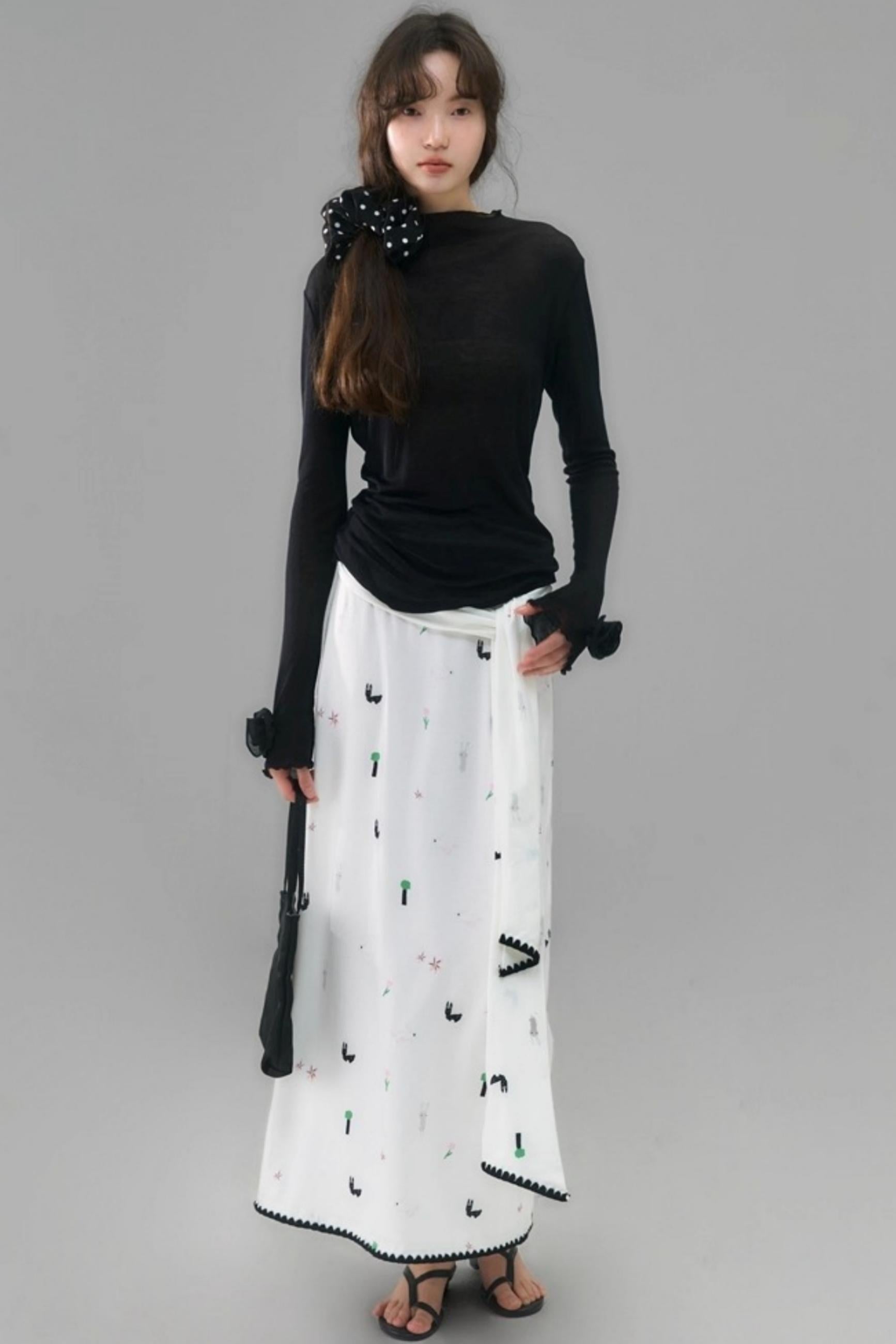 Wilderness Rabbit Patchwork Belt Long Skirt