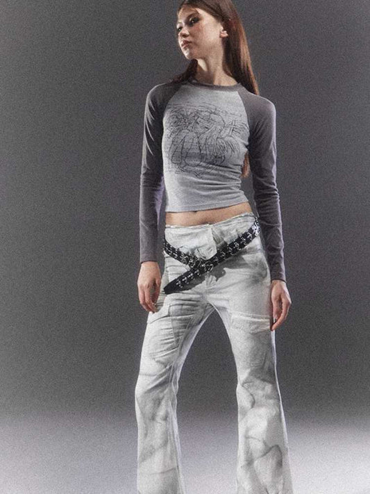 Off shoulder long sleeve T-shirt