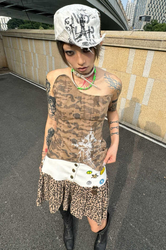"Carnivore" Polarized Special Shape Splicing Draping Long Skirt