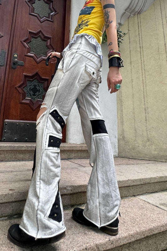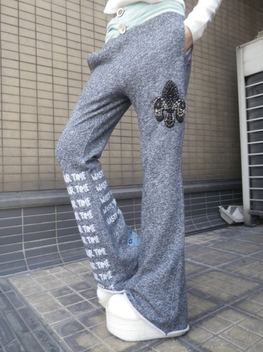 Low Rise Printed Studded Flared Stacked Sweatpants