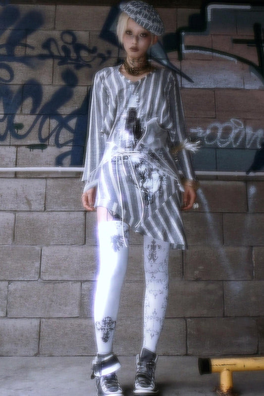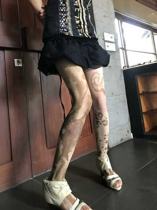 "Tangled Thorns" Hand Drawn Asymmetrical 14D Pantyhose