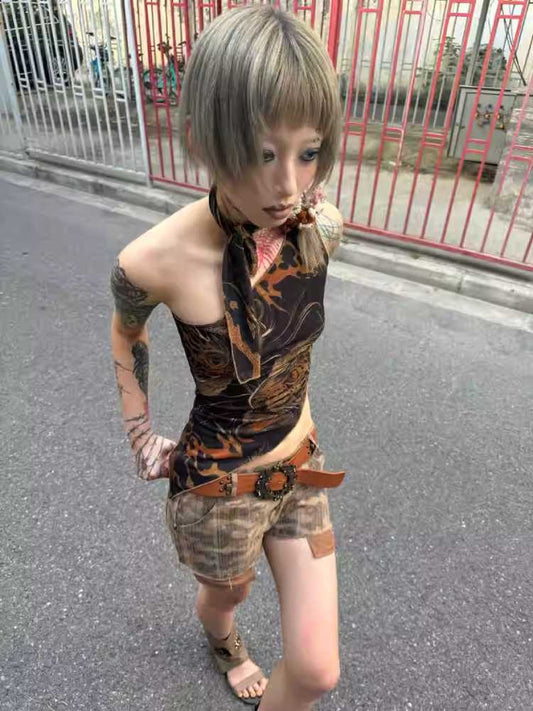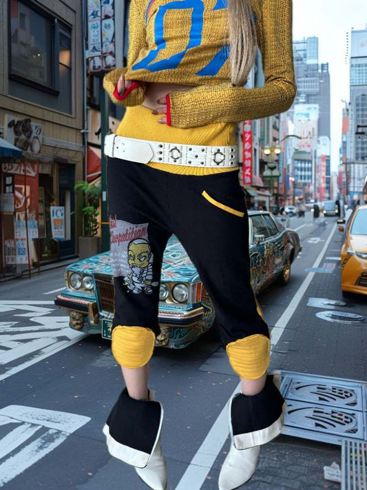 "Ultimate Track" Printed Low Waist Splicing Special Shape Mid Pants
