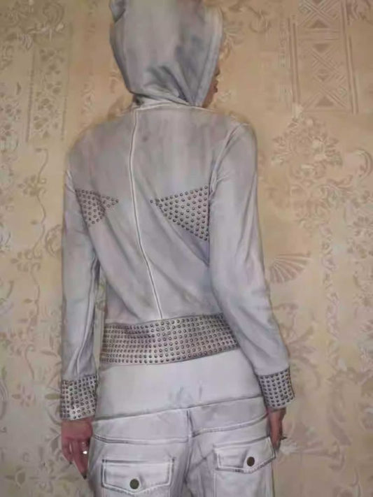 Hooded Sweatshirt Short Jacket Half Skirt Set