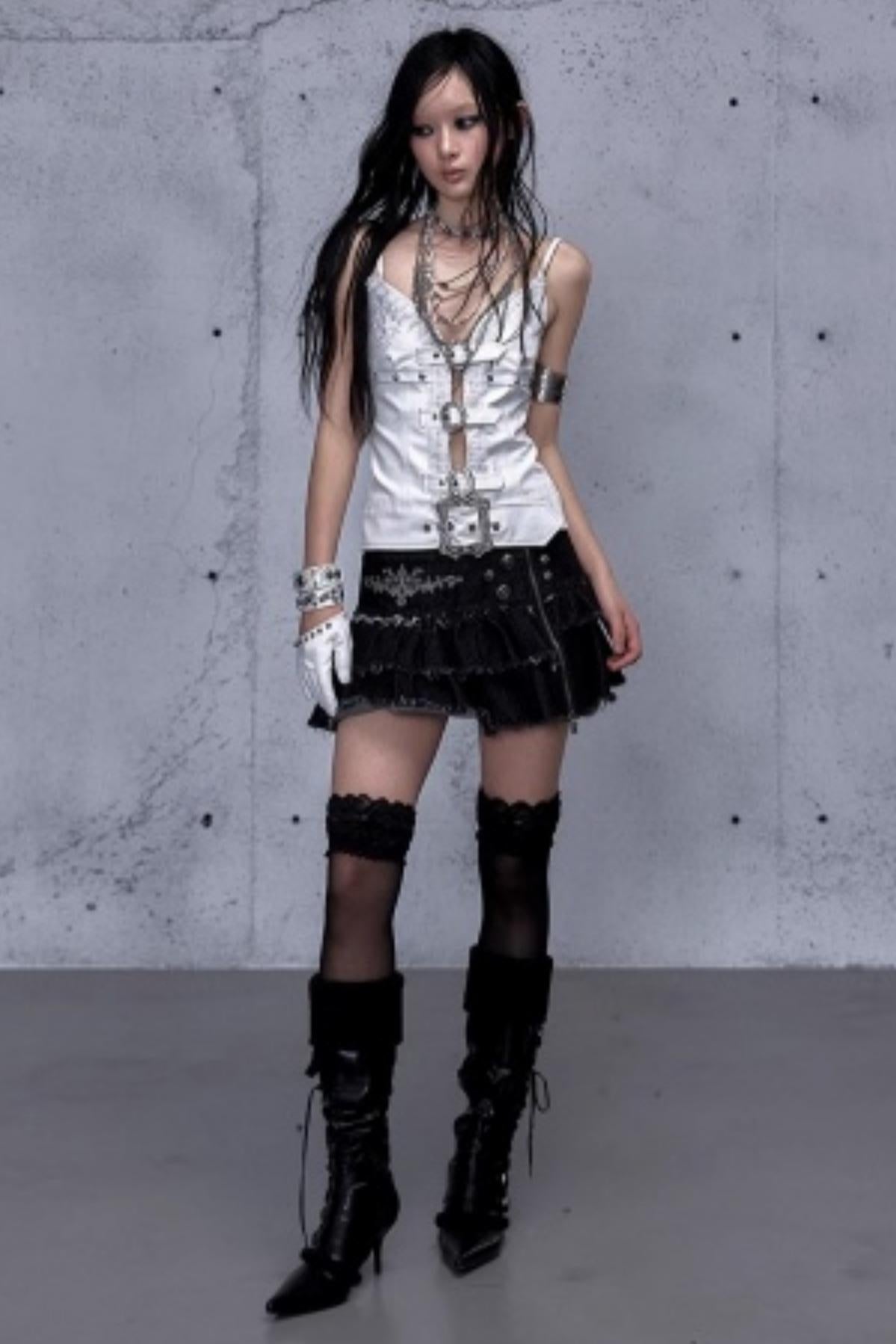 Embroidered Lace Leather Camisole