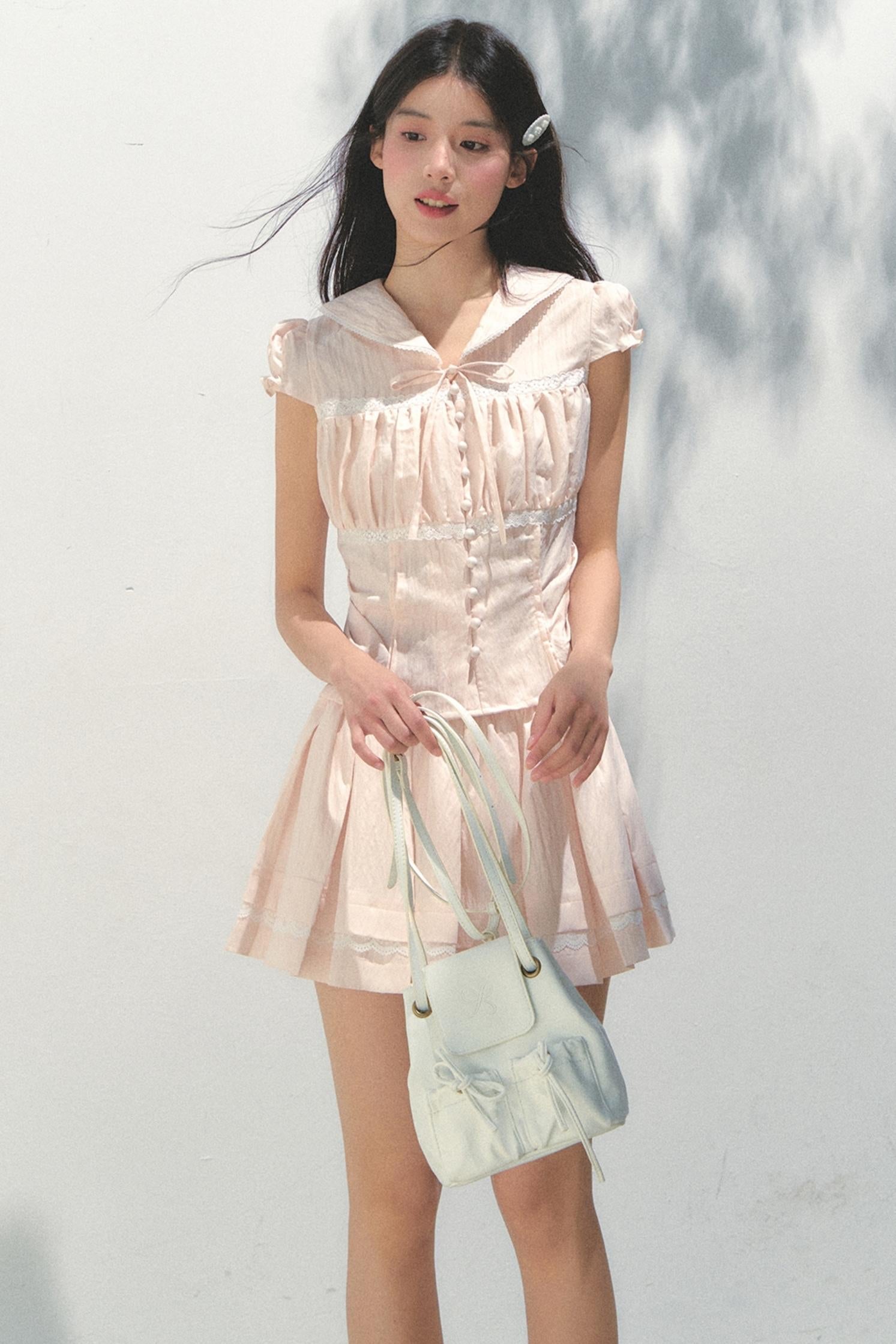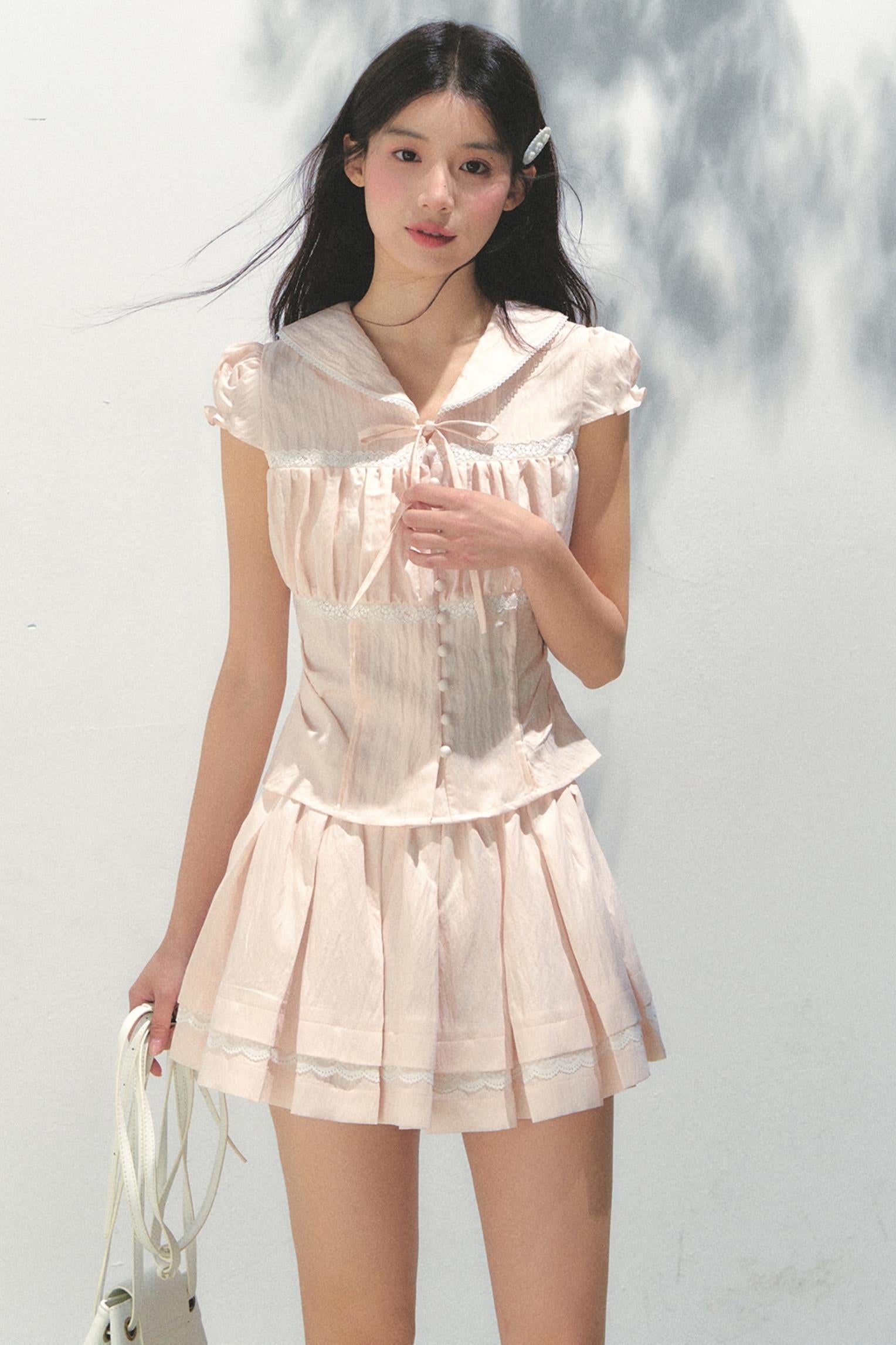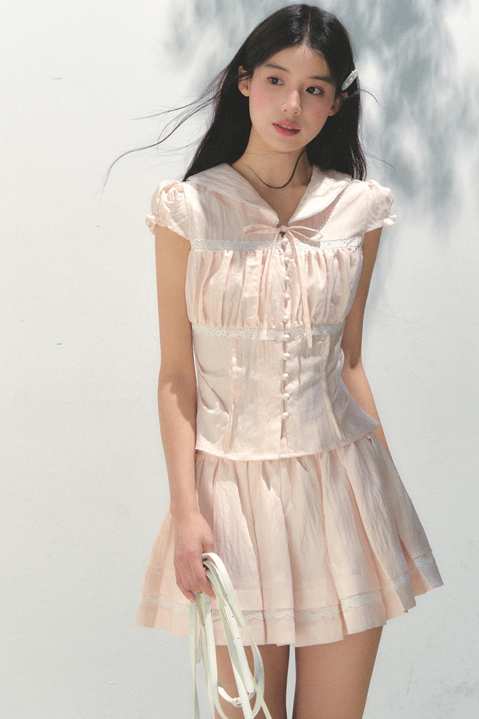 Pink Navy Top Skirt Set-Up