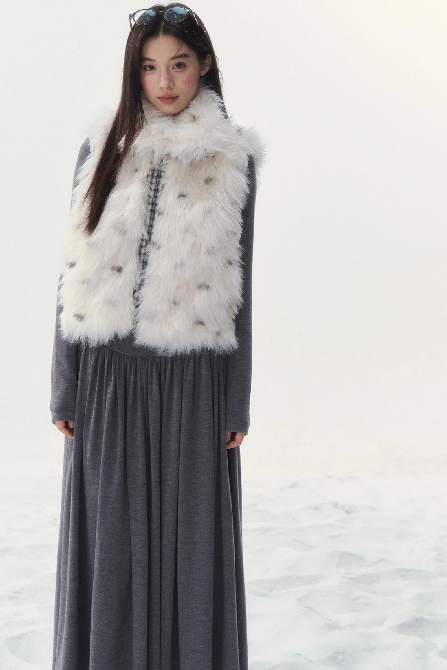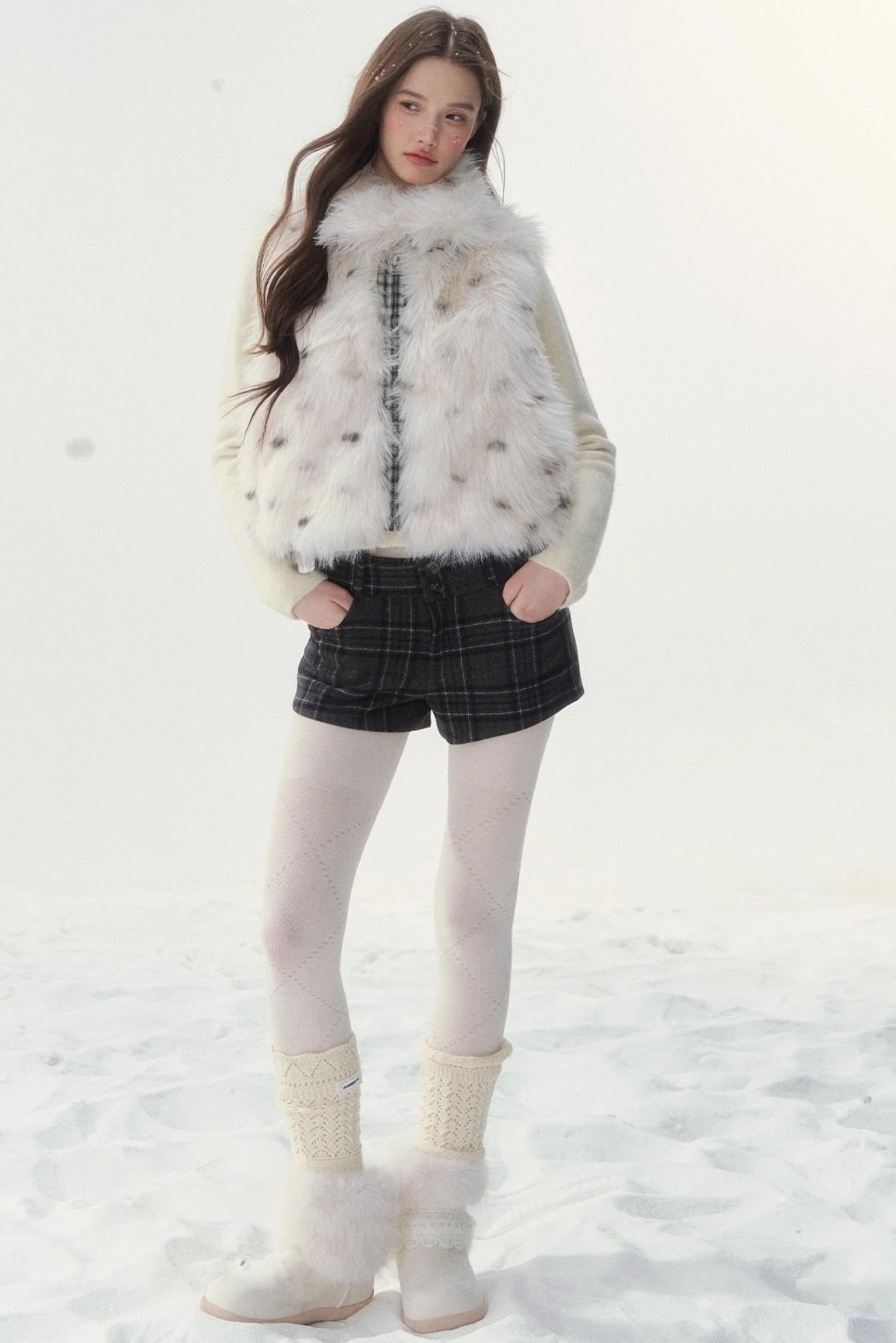 Polka Dot Plaid Fur Coat