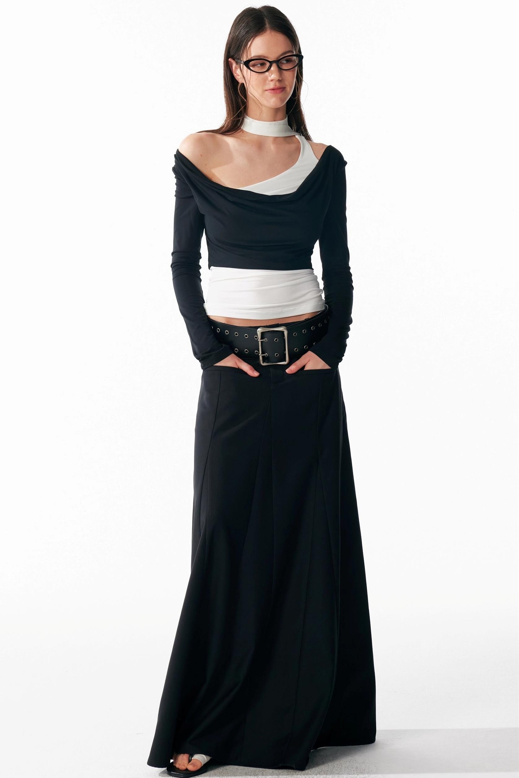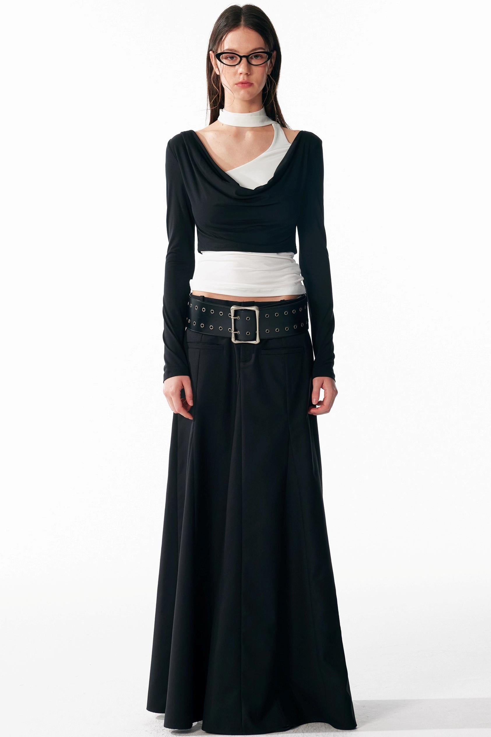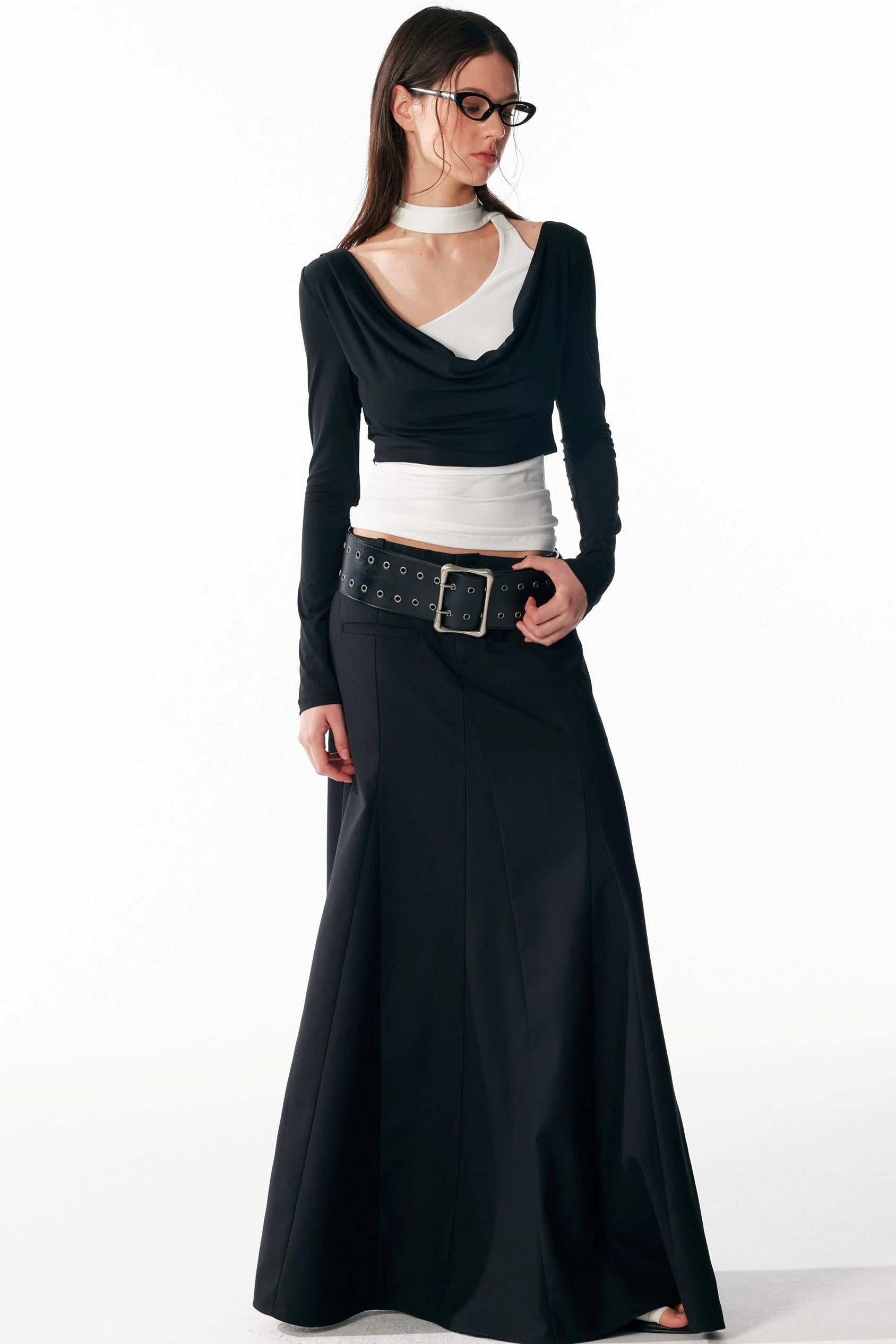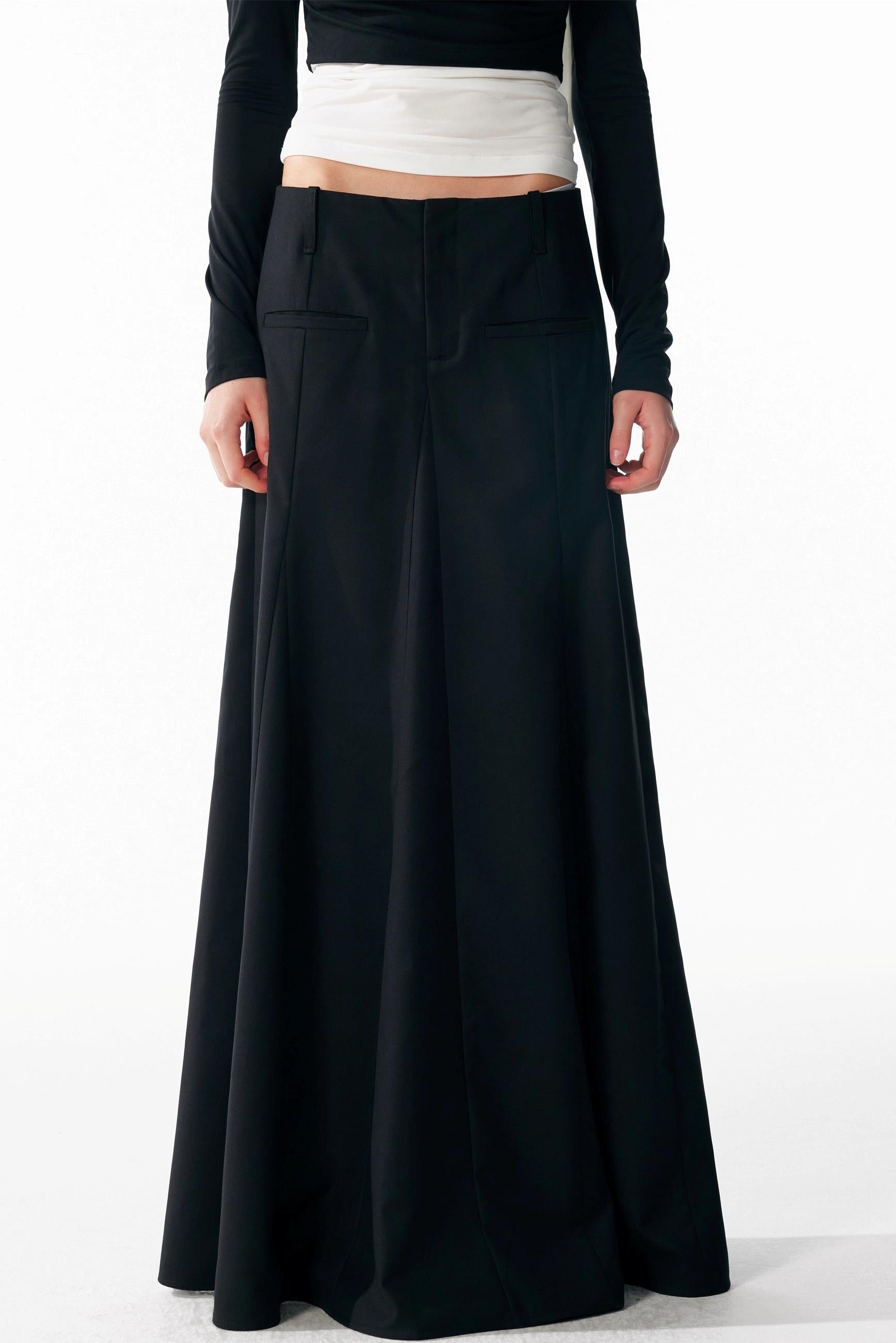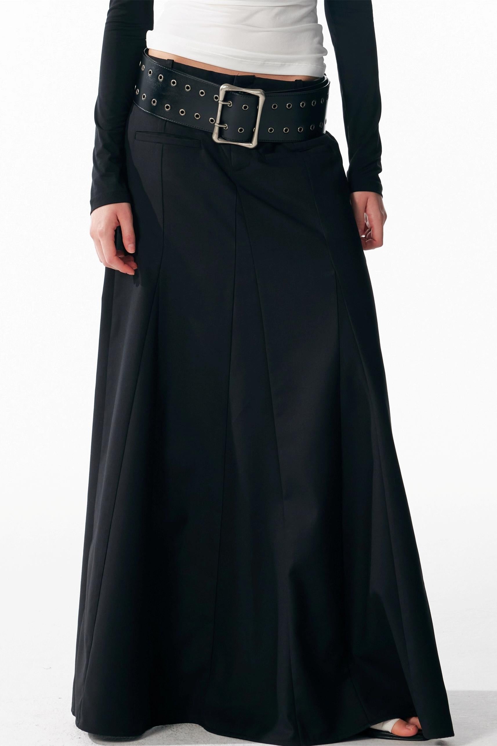 Vintage Black Low Waist A-Line Skirt