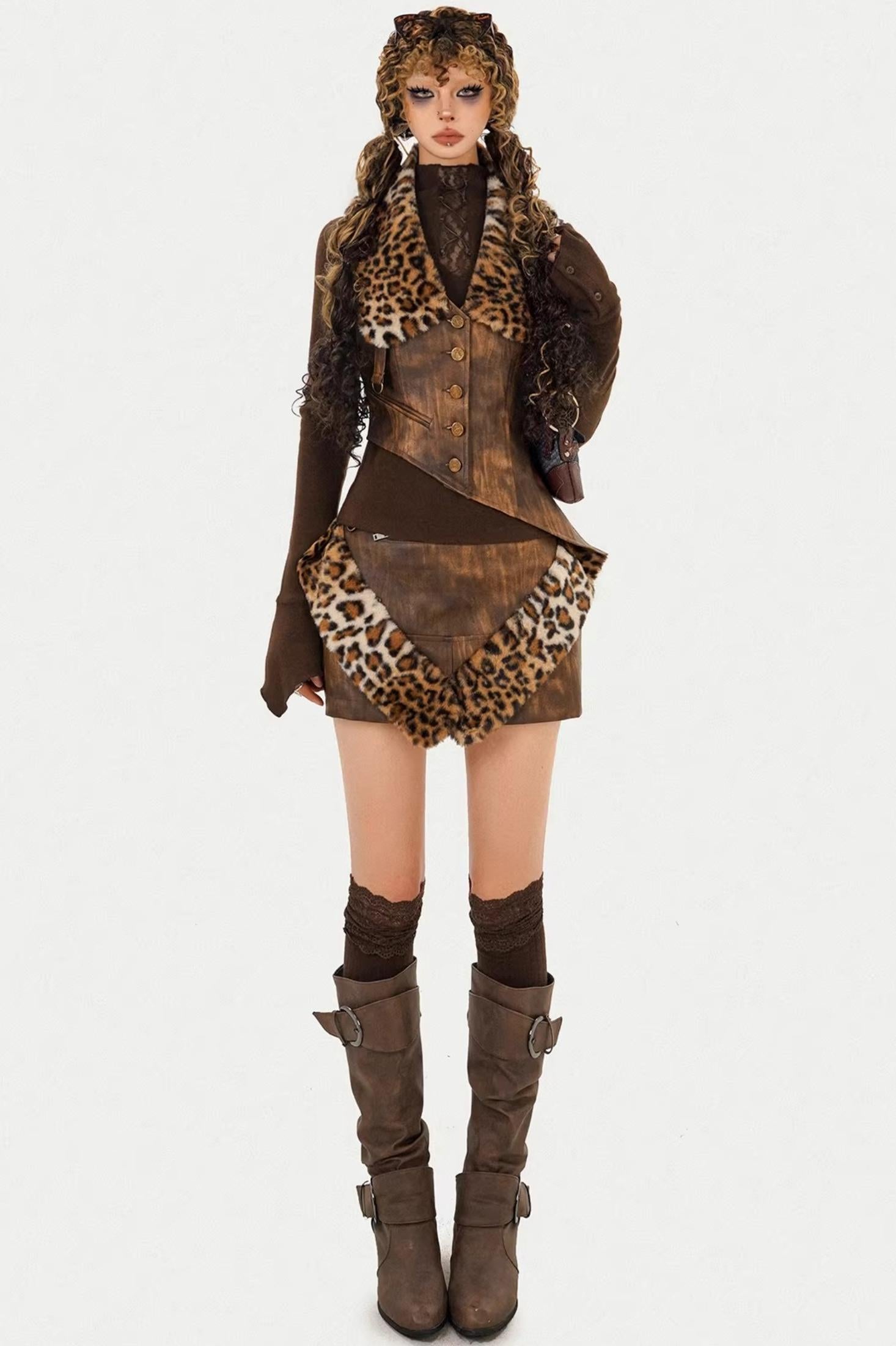 Vintage Leopard Distressed Vest Jacket Set-Up