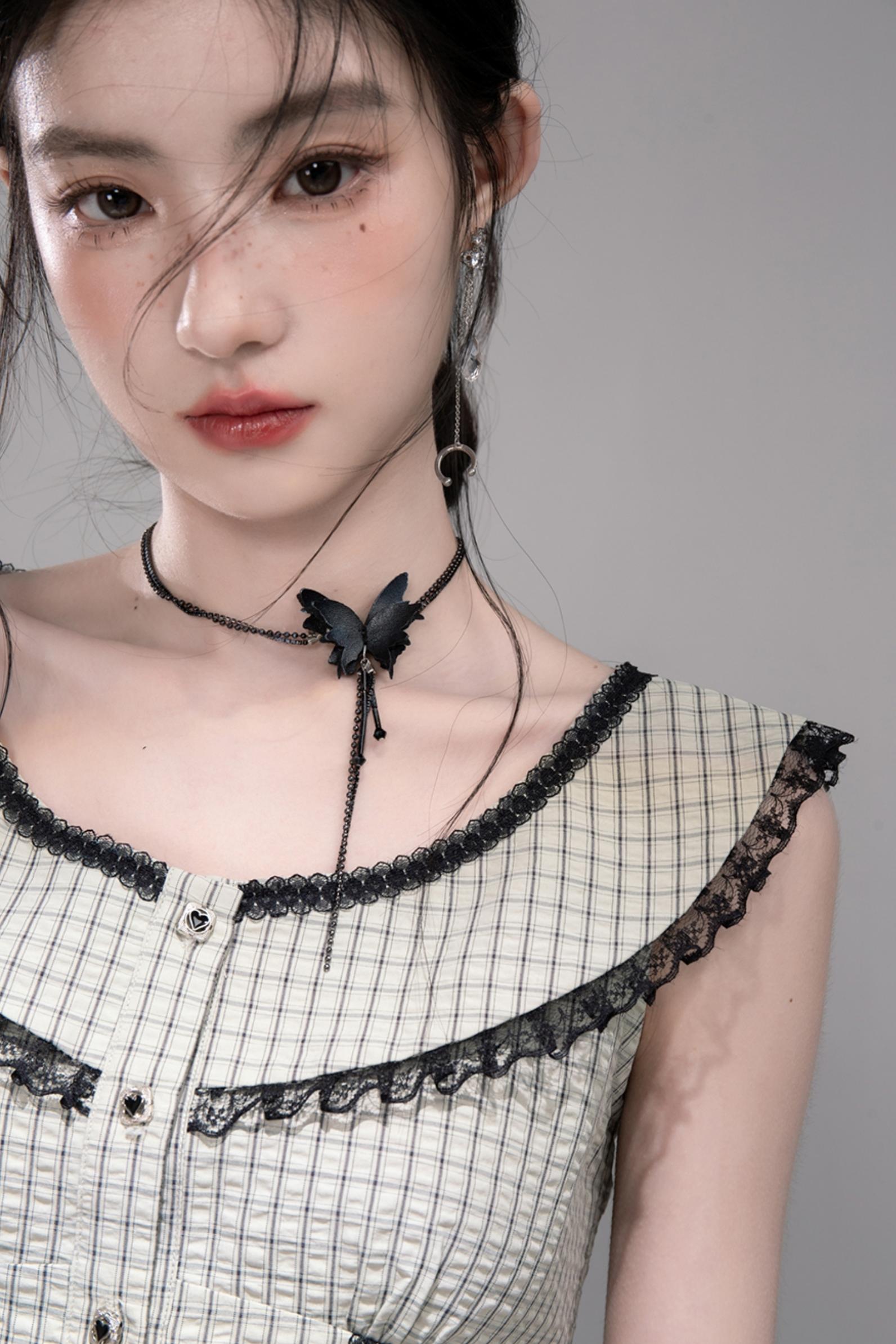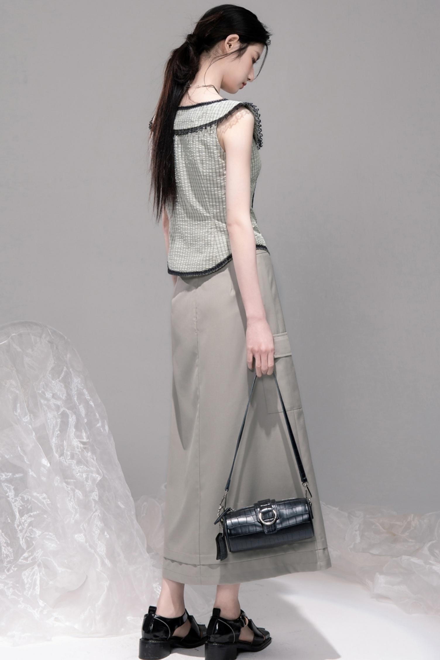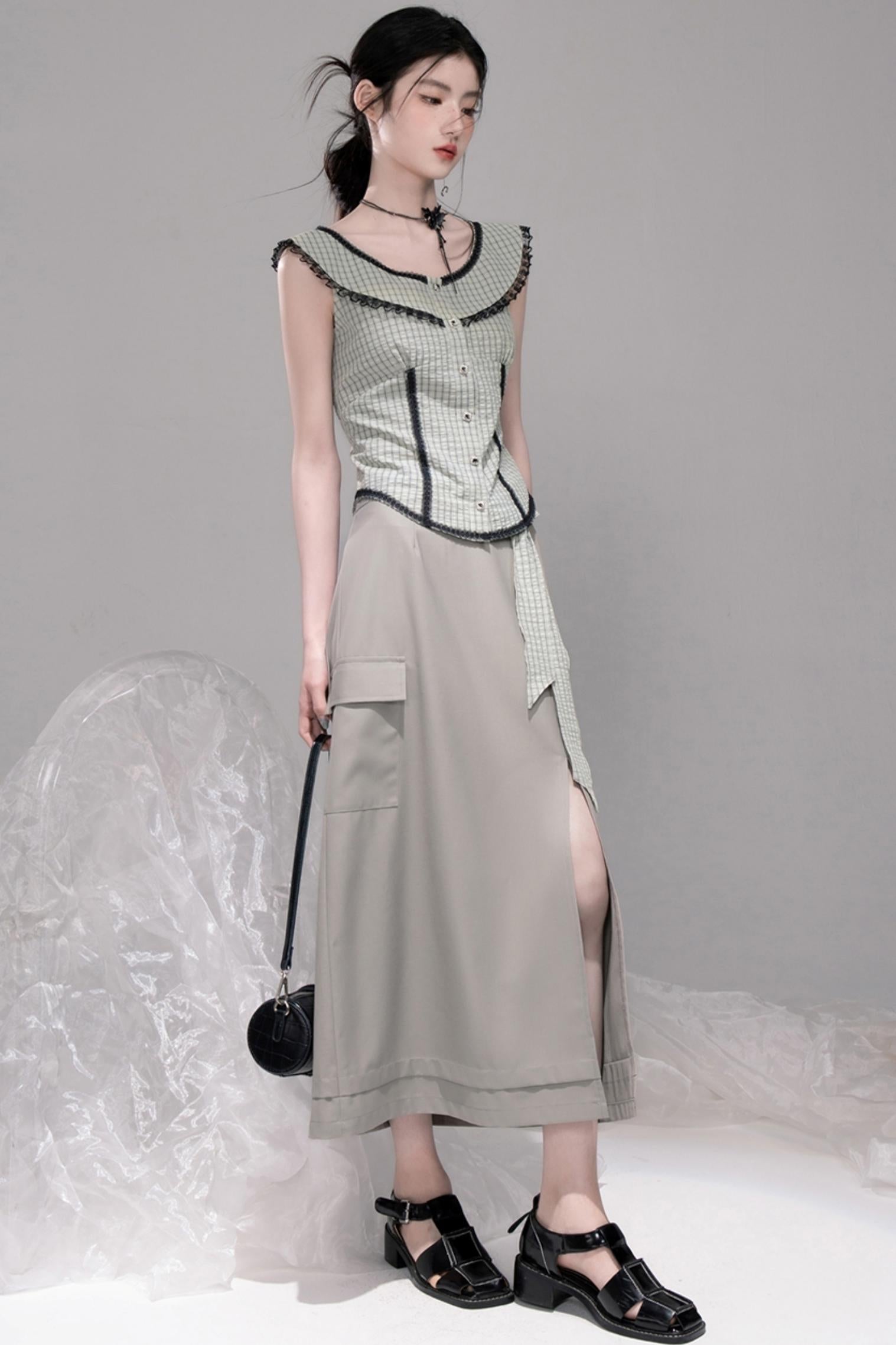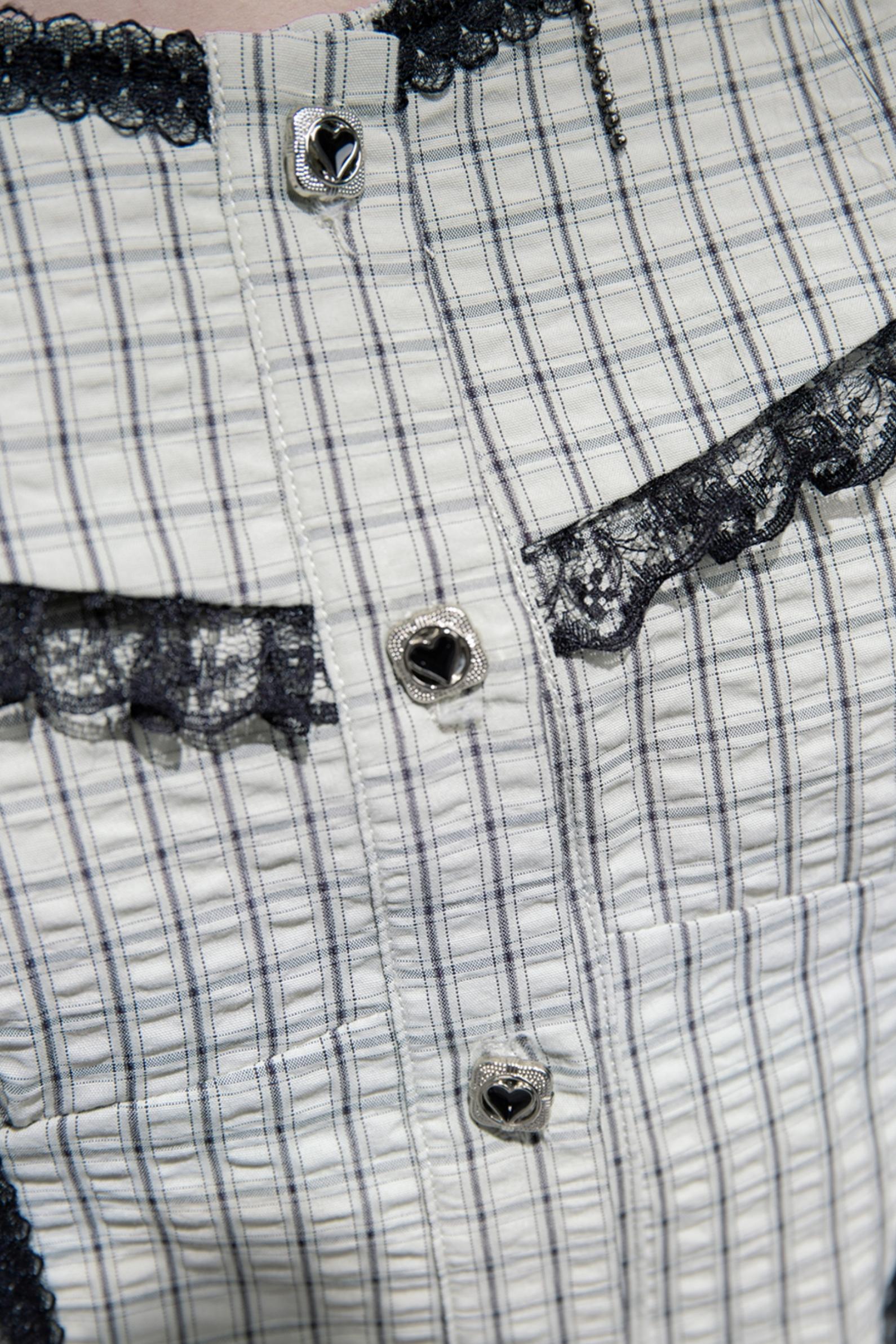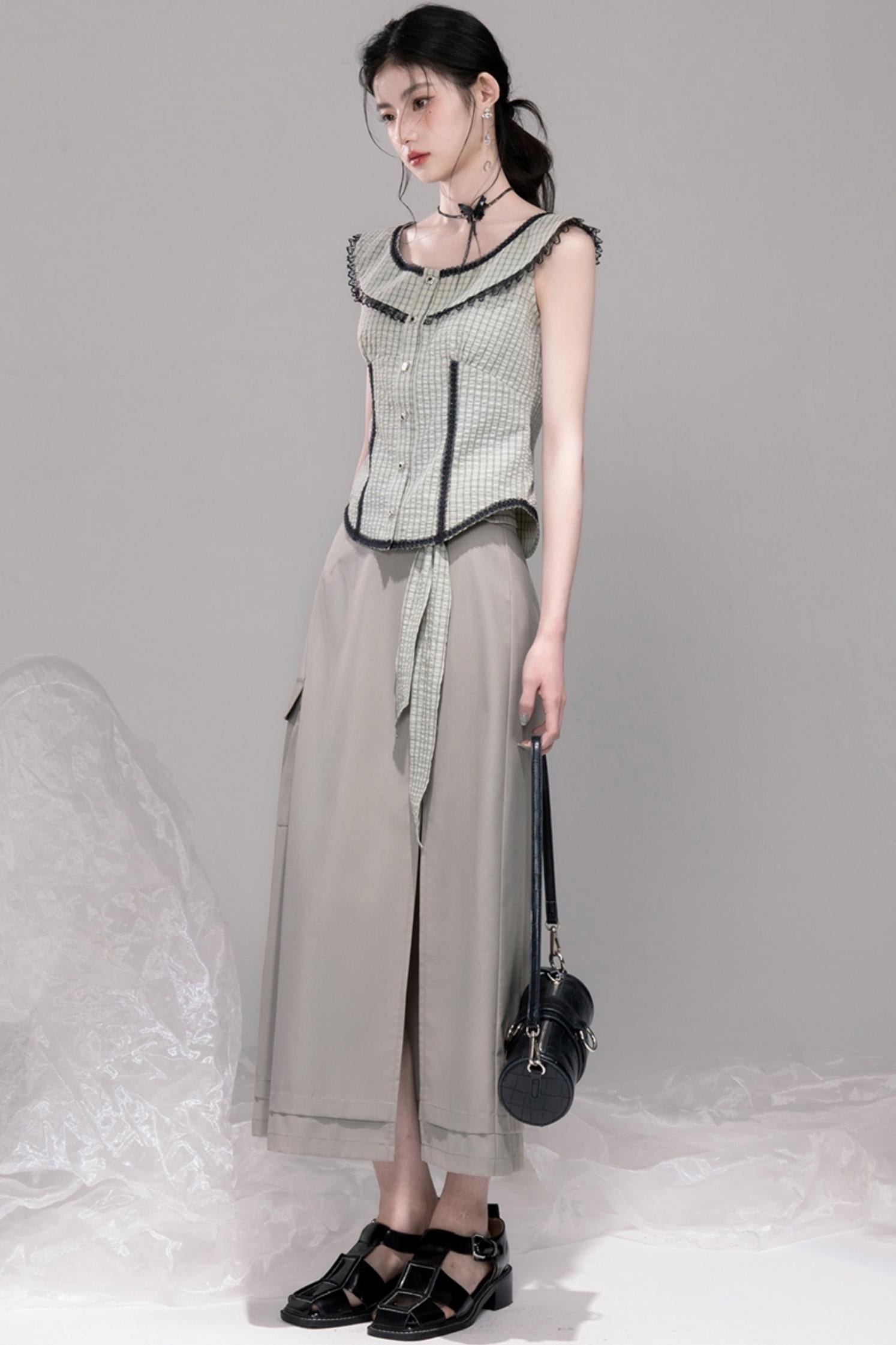 Waisted Green Check Lace Vest