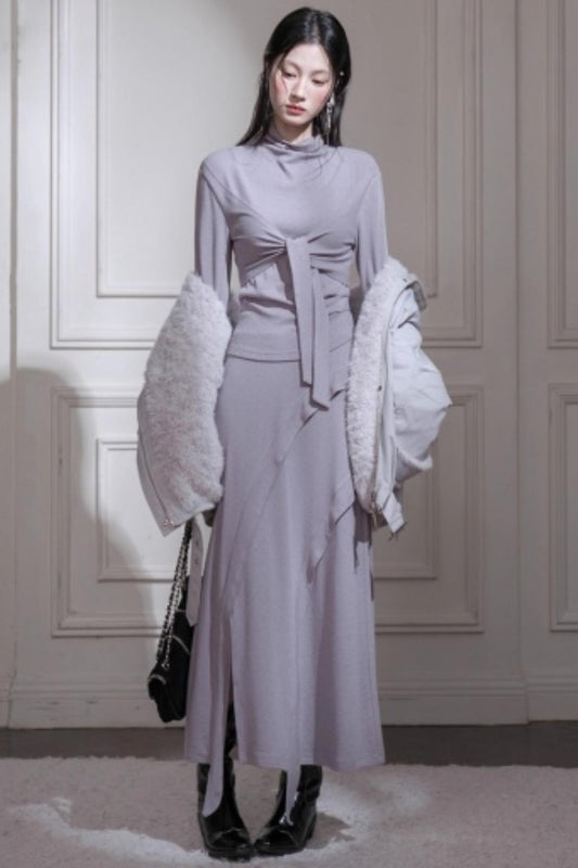 Gray Taro Tie-Dye Top Skirt Set