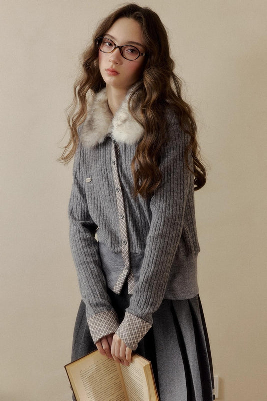 Polka Dot Plaid Fur Coat