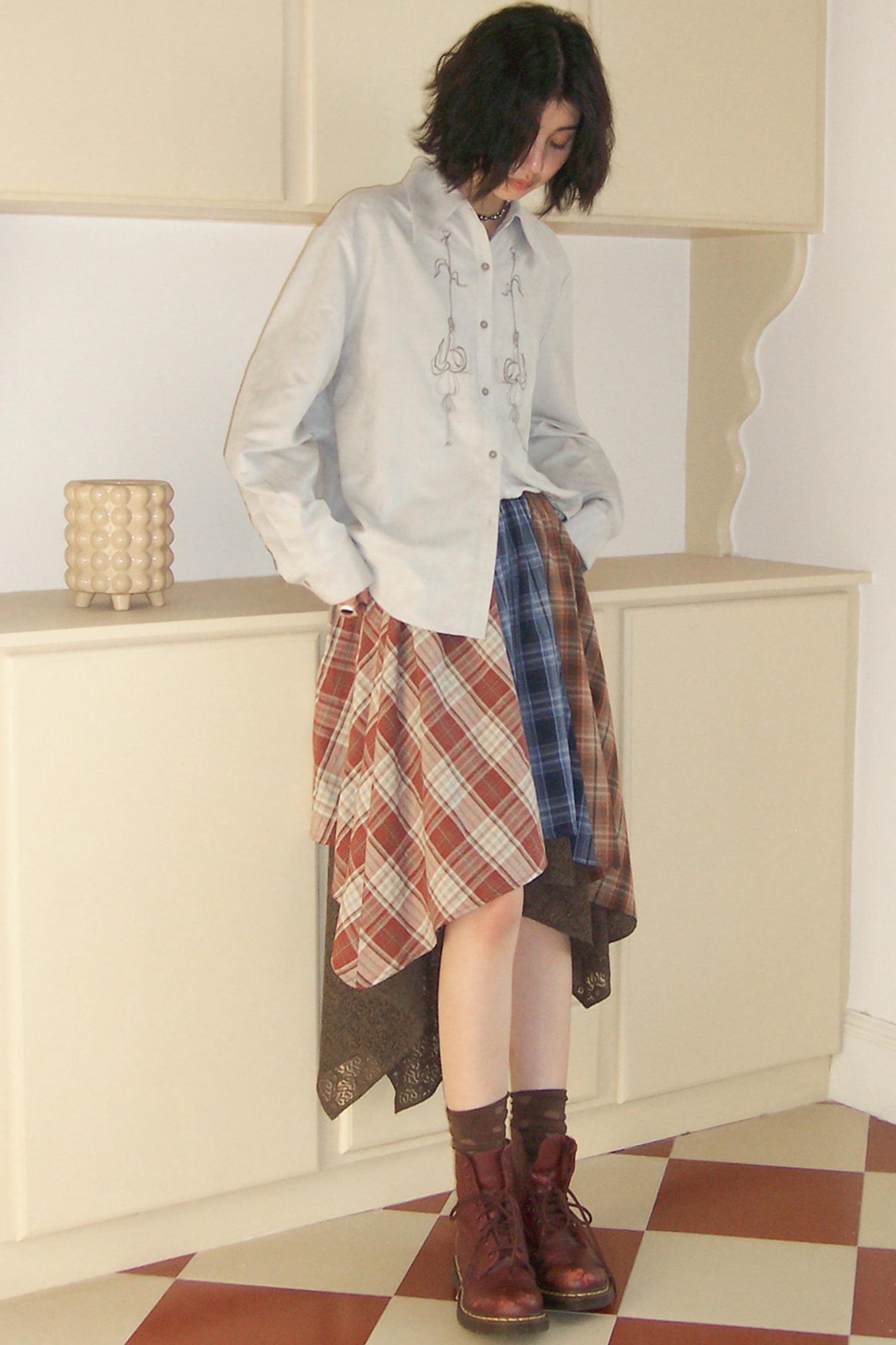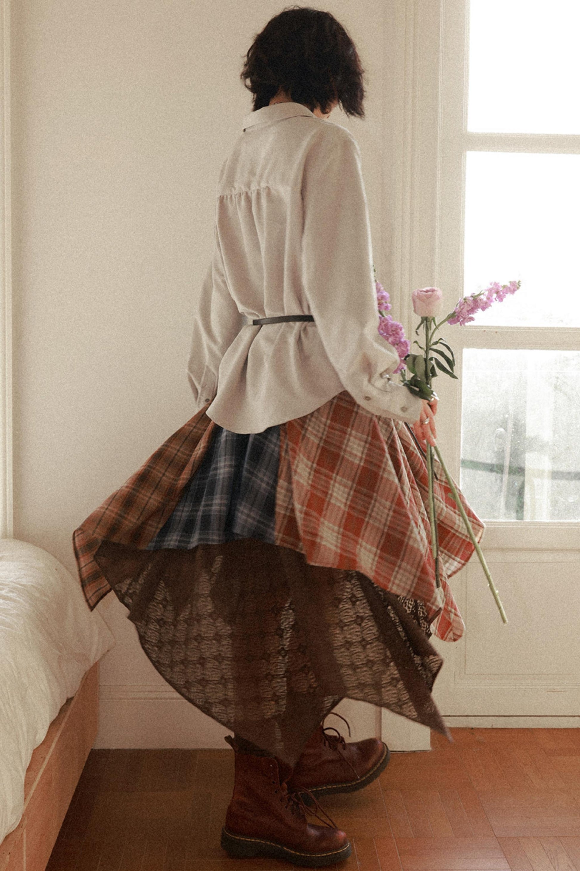 Elastic Plaid Patchwork Skirt
