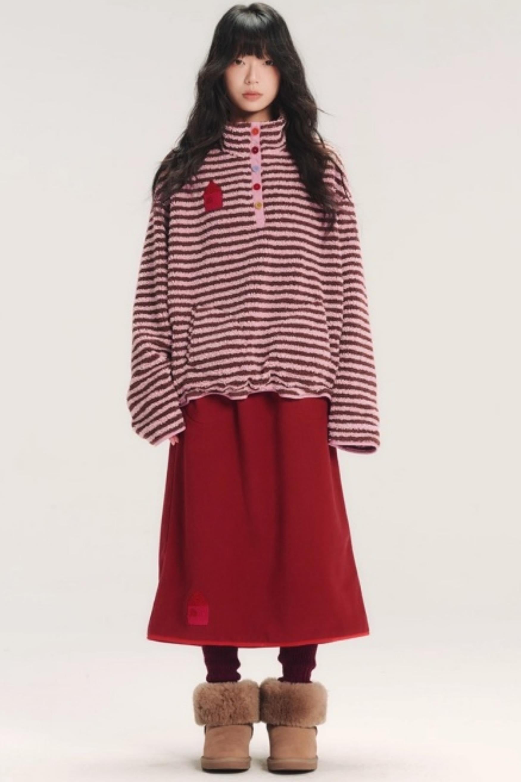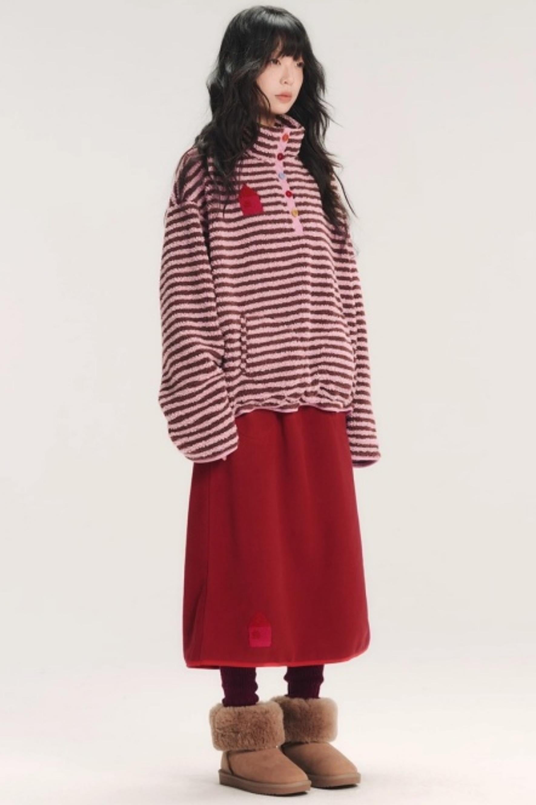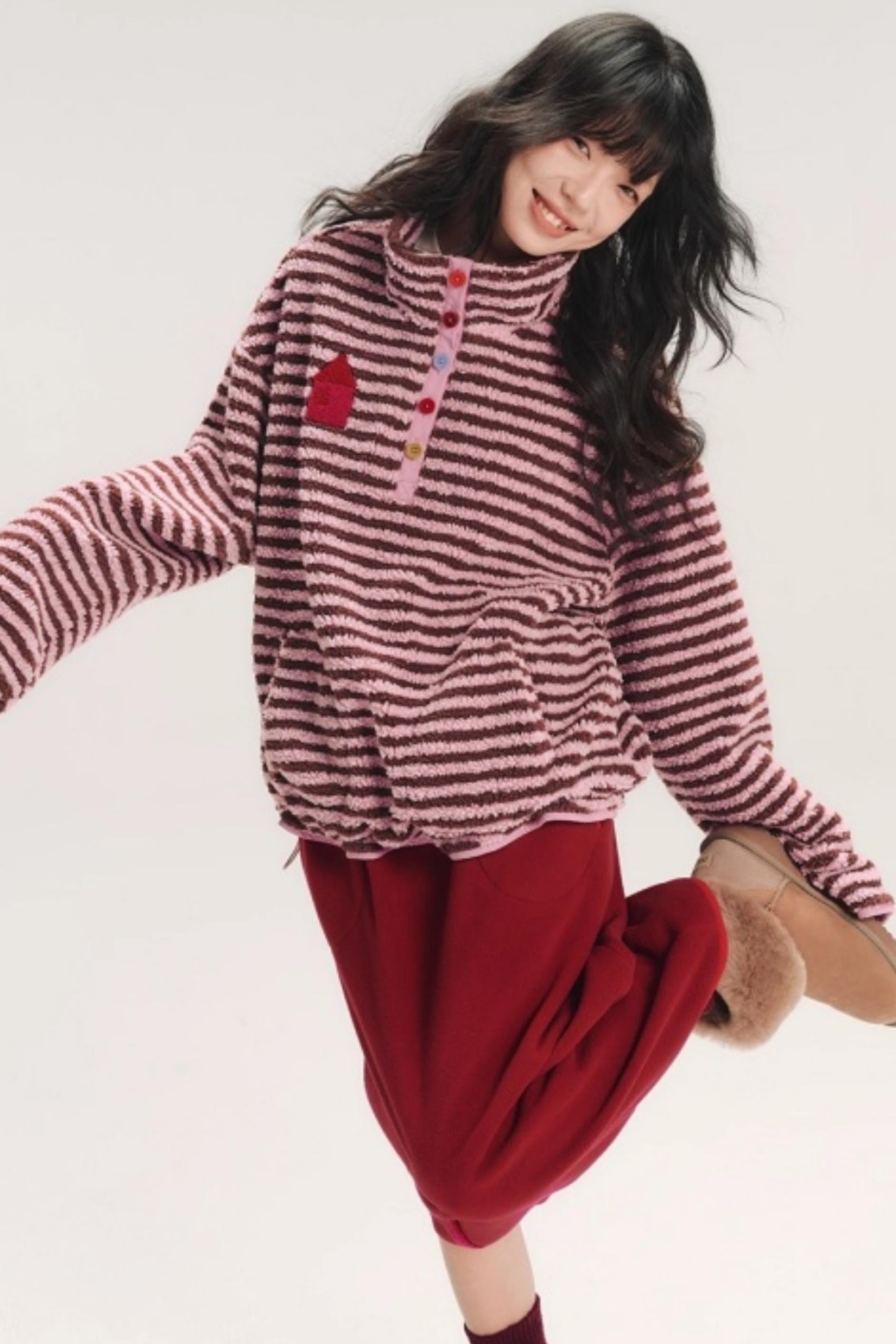 Embroidered Fleece Stiped Sweatshirt