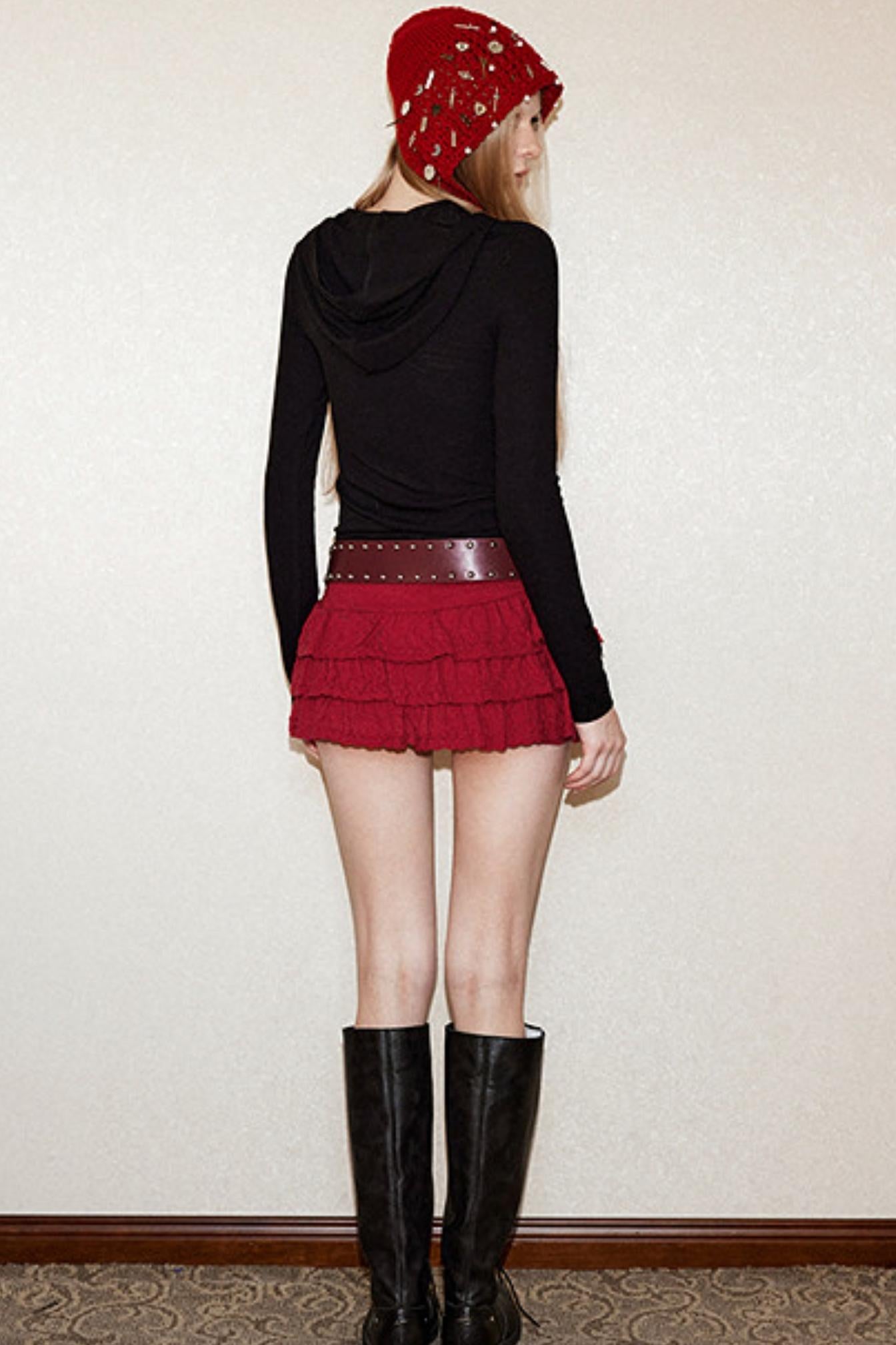 Embroidery Tie Hooded Top