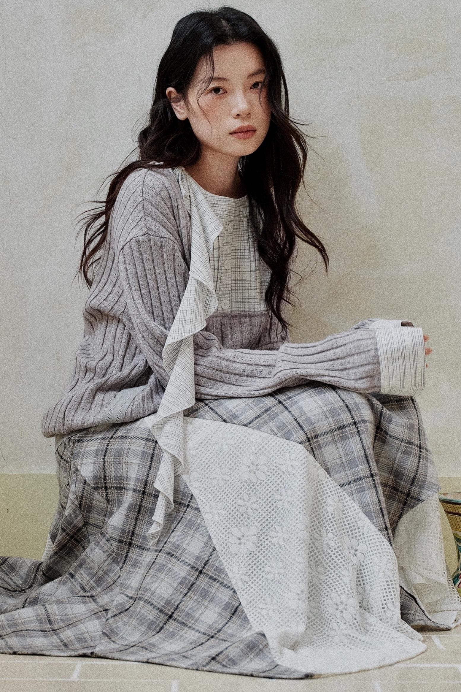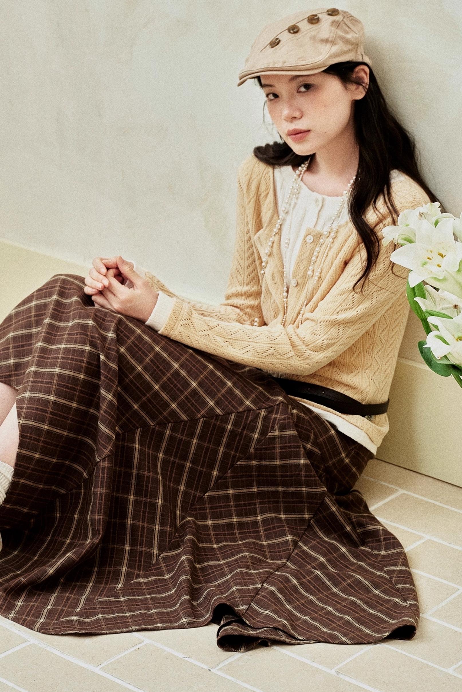 Gray-Brown Two-Tone Plaid Irregular Skirt