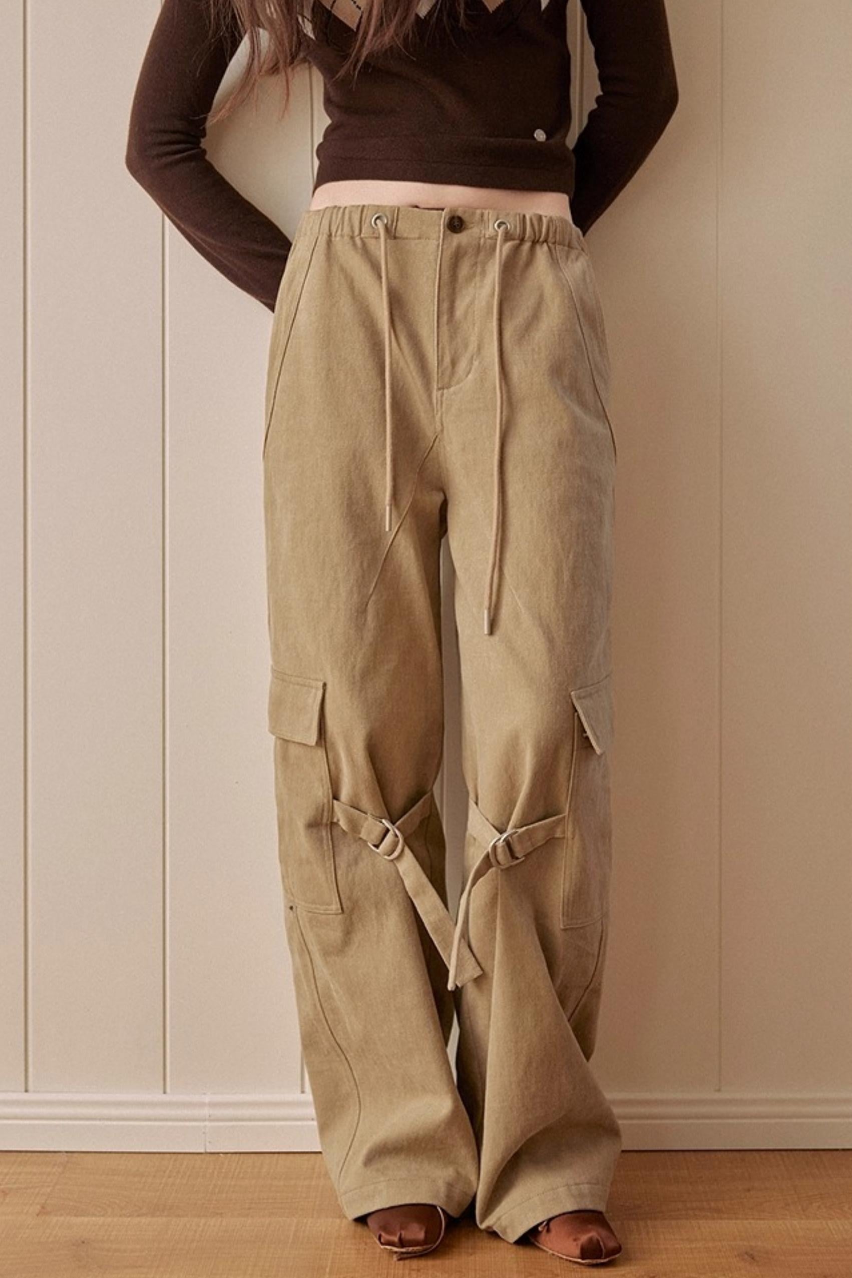 Khaki Fleece-Lined Cargo Pants