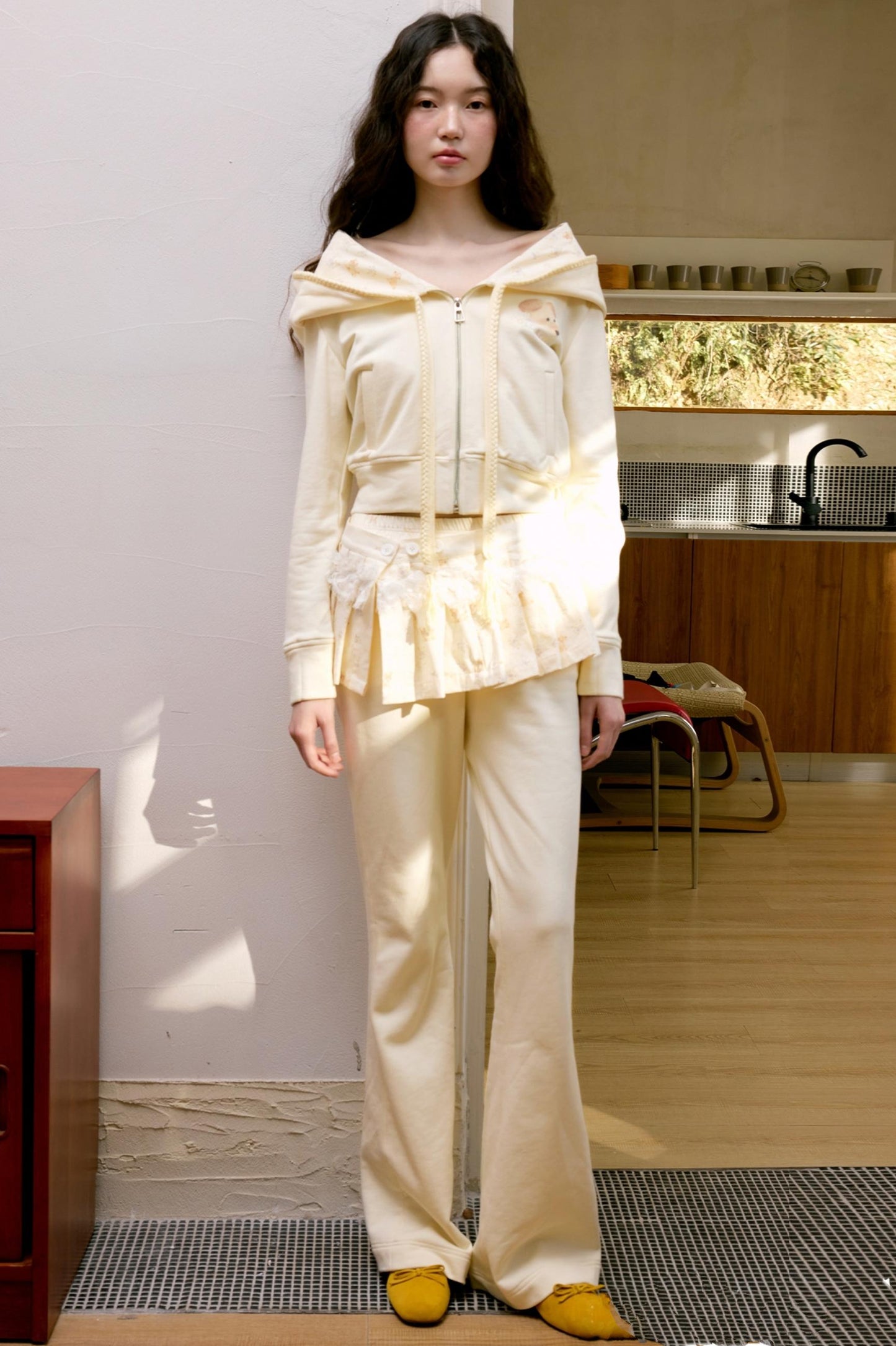 Light Yellow Puppy Sweatshirt Set-Up