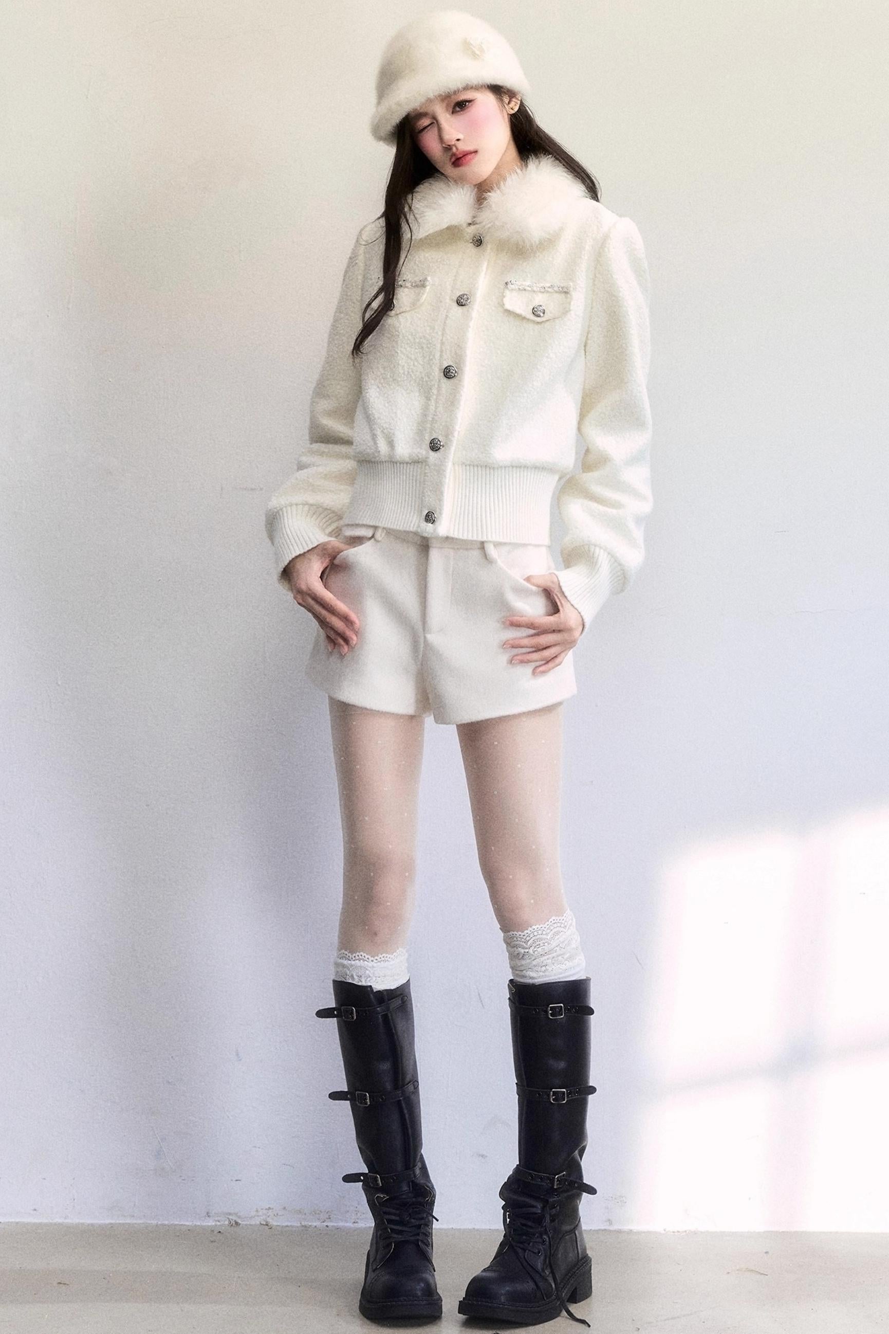 Color: White Fur Collar Removable