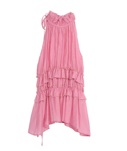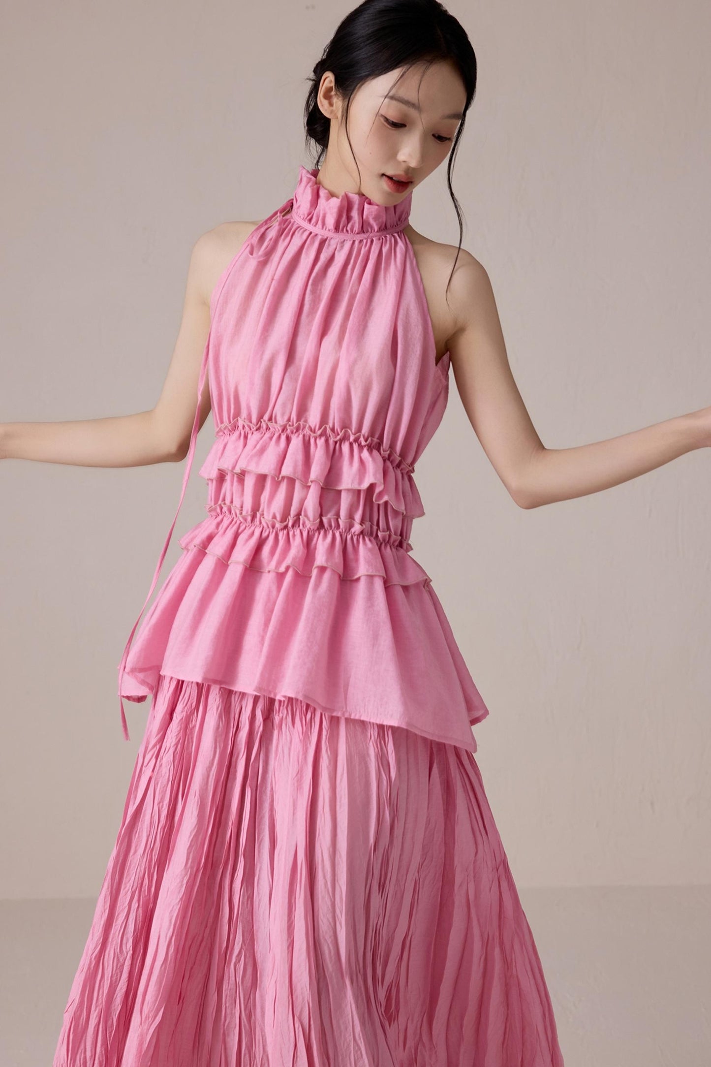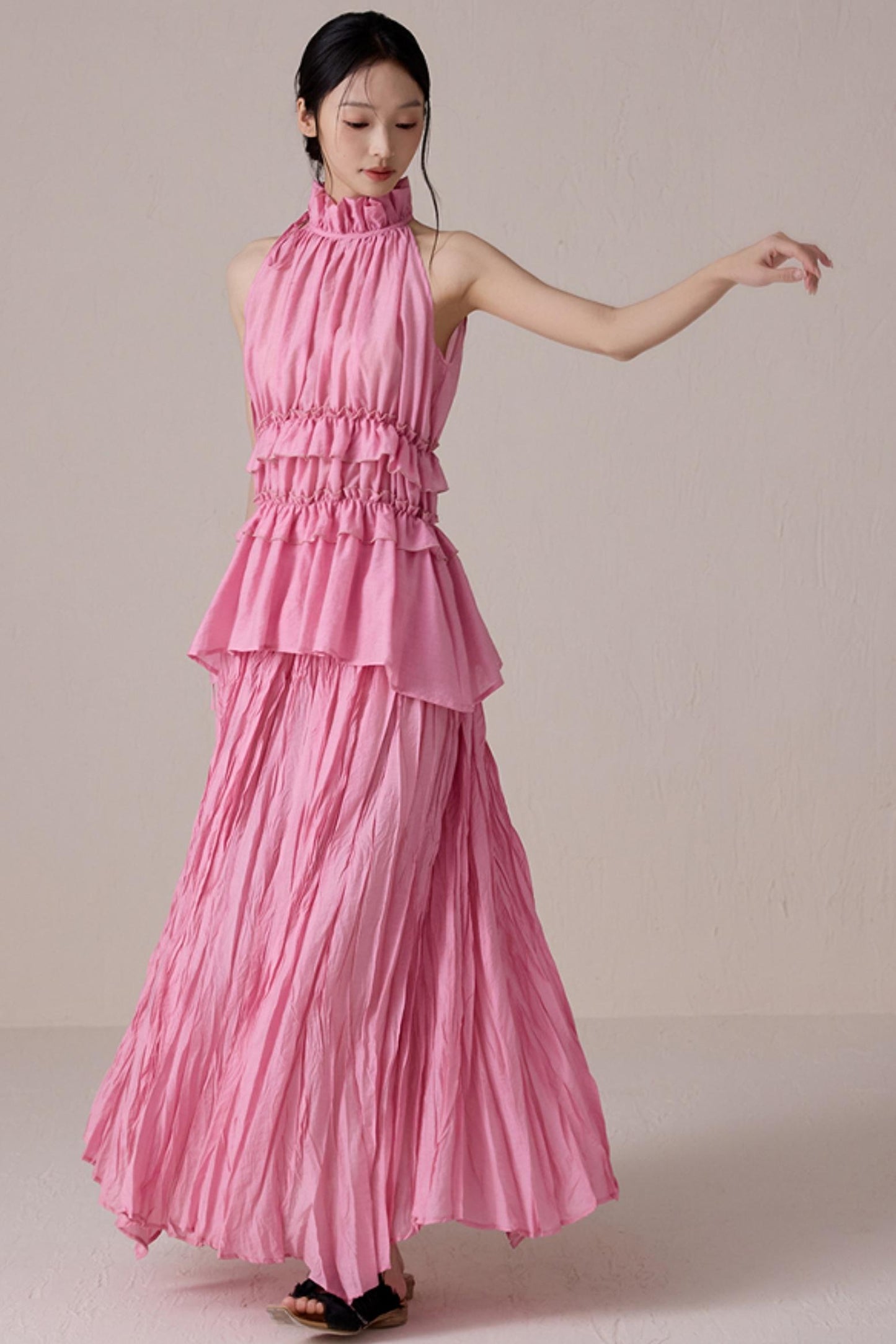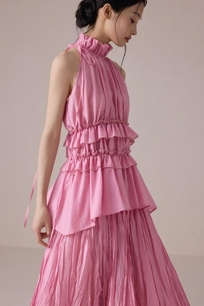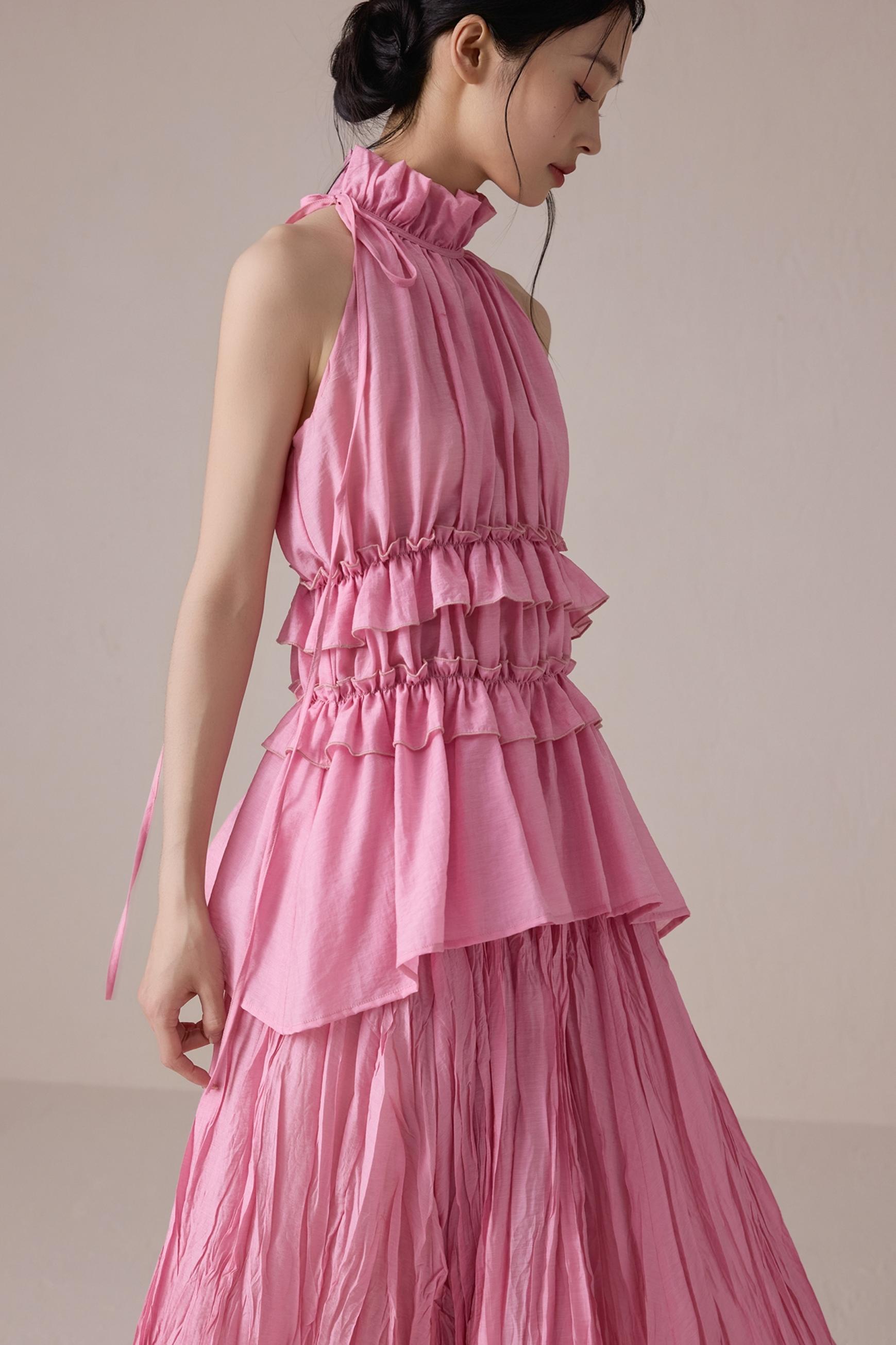 Pink Pleated Sleeveless Neck Top Set-Up