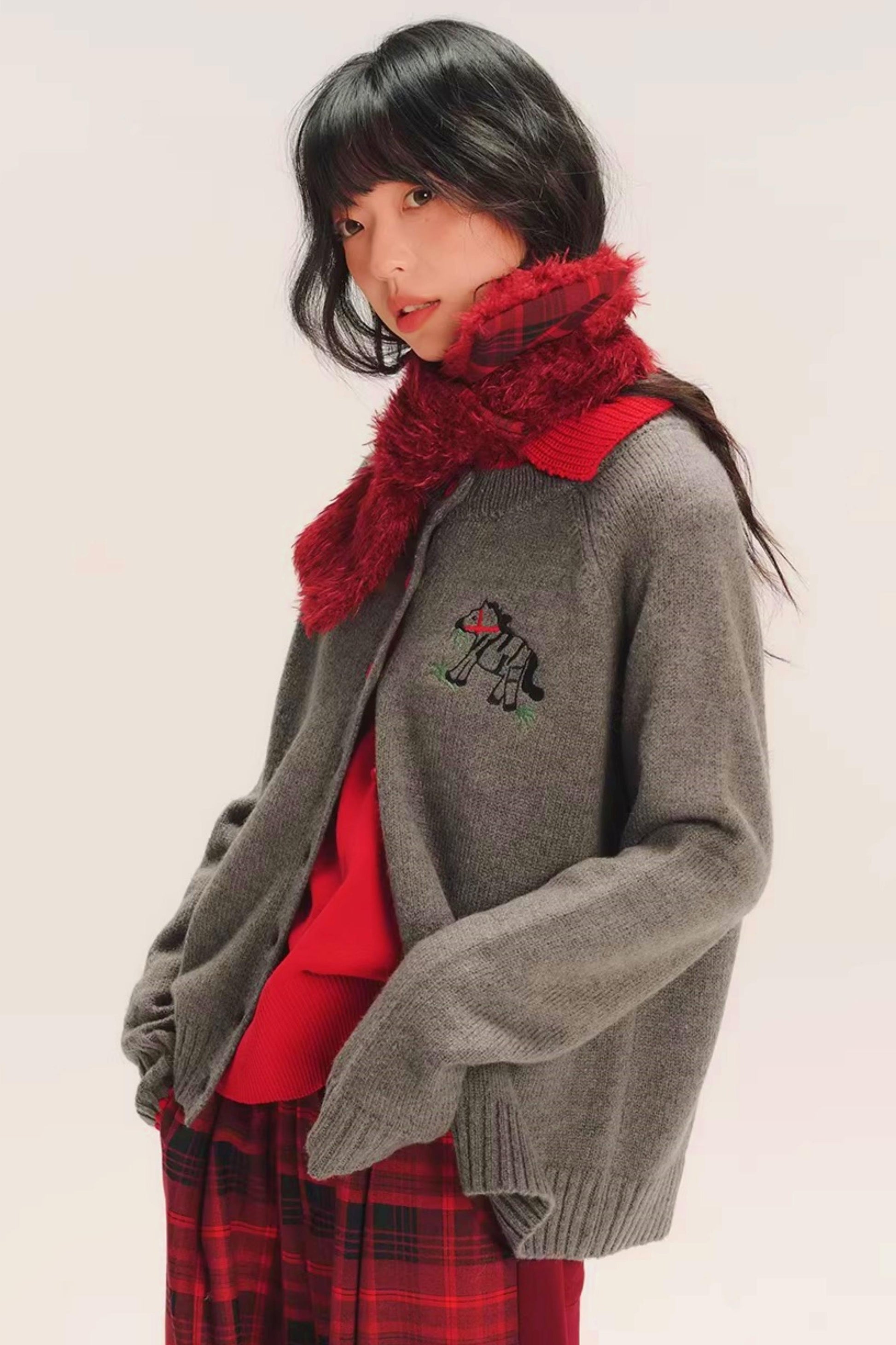 Pony Embroidered Wool Cardigan